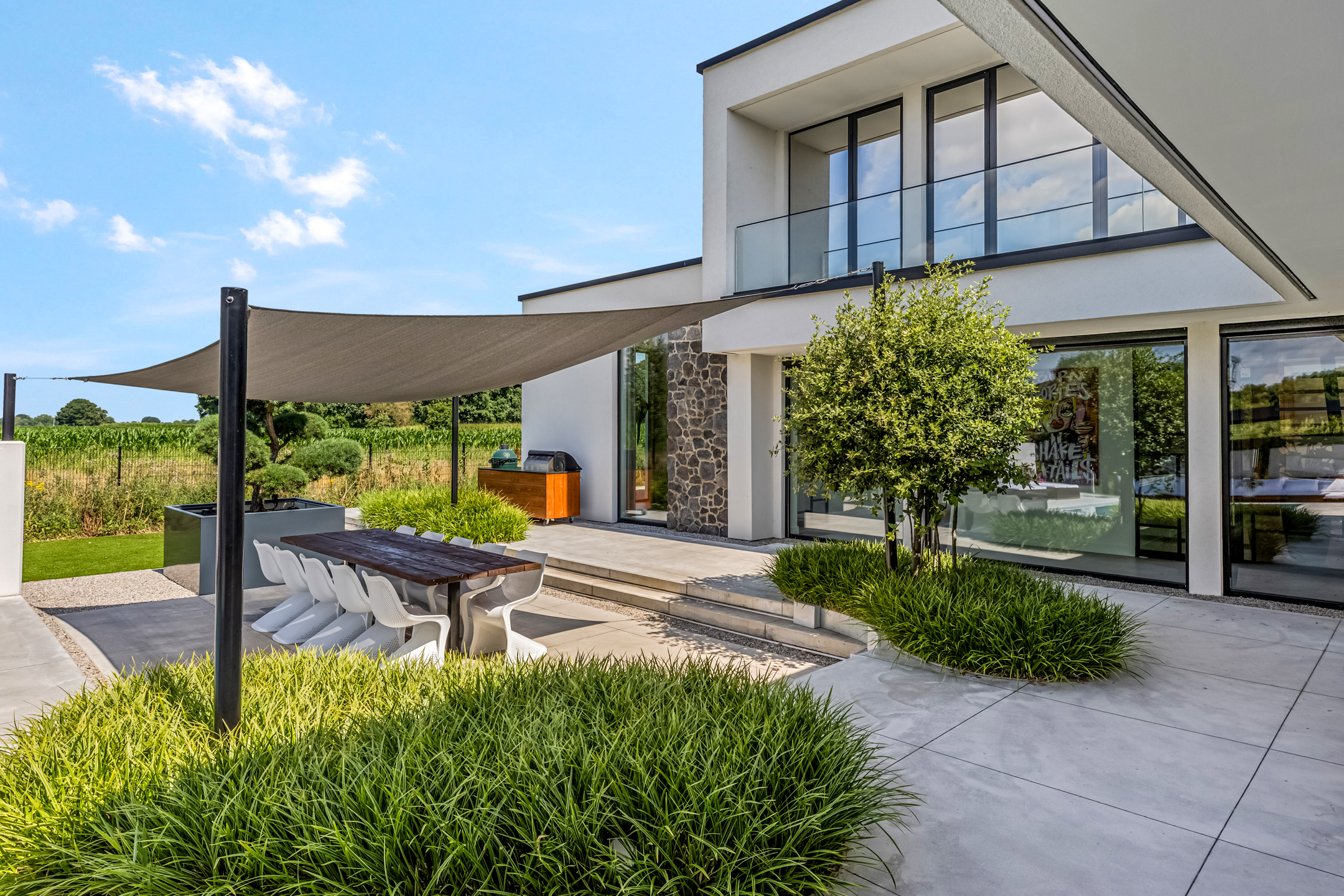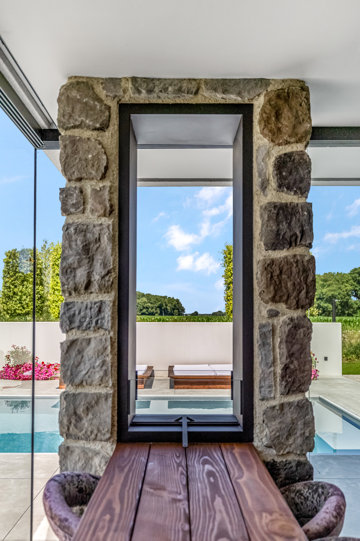 Outside, enjoyment reaches its peak: a heated swimming pool, multiple covered terraces, and a luxury veranda turn outdoor living into a true experience. Everything breathes peace, comfort, and exclusivity. You’ll enjoy maximum privacy, with open views over expansive agricultural fields to the side and the green paddocks behind. This unique combination of space and nature enhances the feeling of freedom.
