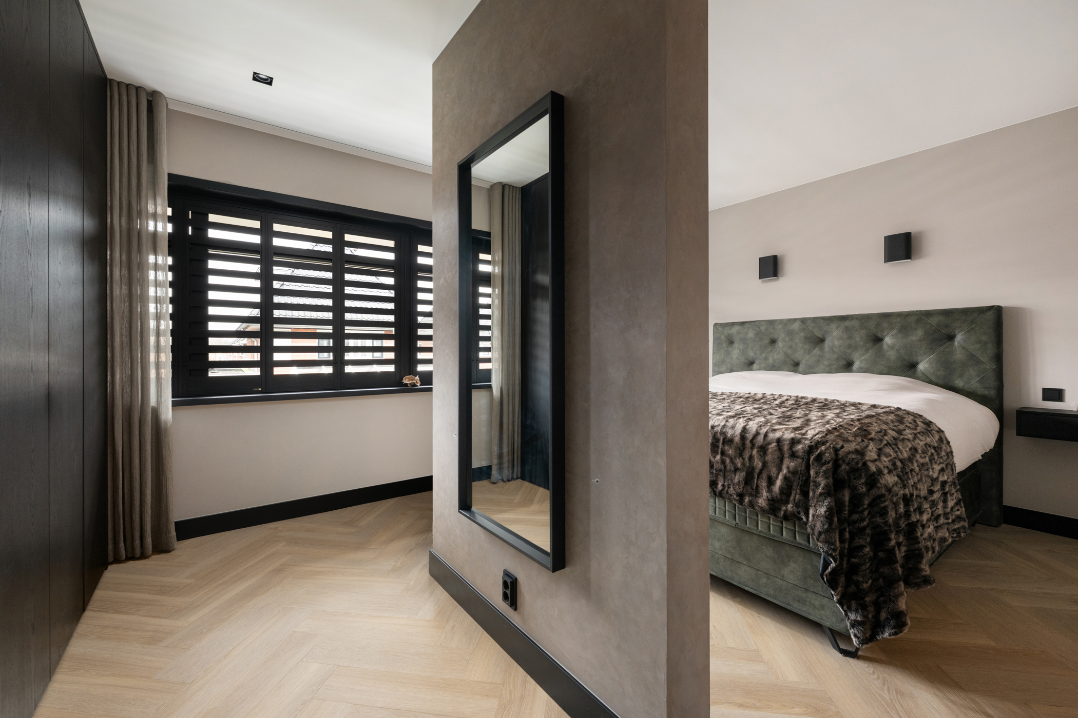All bedrooms are finished with aluminium shutters, creating a calm and luxurious appearance throughout the home.
