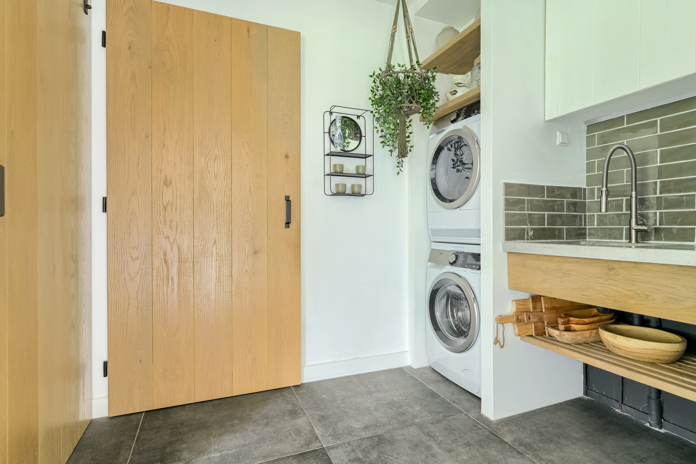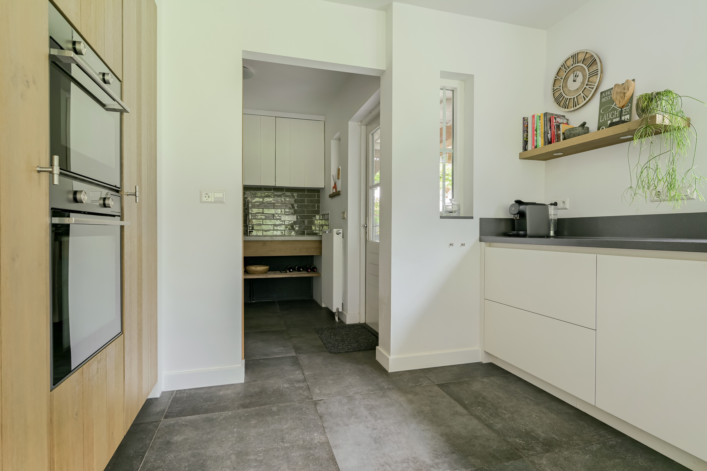 Villa Breda stands directly beside the Liesbos forest, set on a 9,523 m² plot that assures full privacy and a seamless connection to natural woodland. This villa, meticulously maintained and fully insulated, presents 182 m² of living space arranged for both comfort and elegant practicality. The ground floor grants single-level living potential with a suite comprising a bedroom and bathroom, underfloor heated anthracite tiling, and smooth plasterwork, epitomizing understated ease. Large windows and multiple sliding doors invite views of the surrounding gardens and forest, while light oak and laminate flooring upstairs echo the clarity of the space.