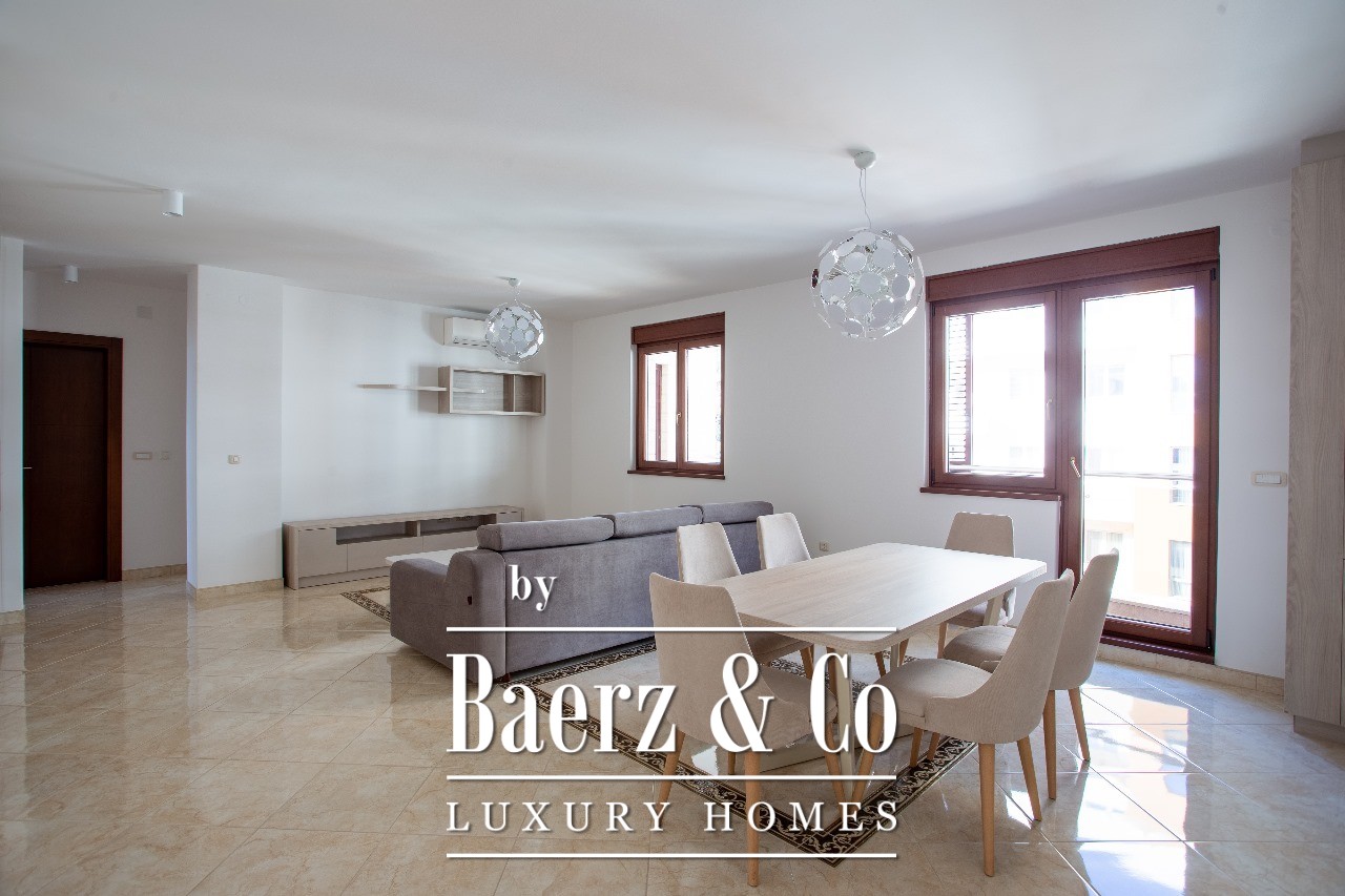 Structure of the apartment: hallway, living room with kitchen and dining table, 3 bedrooms, 2 bathrooms and a terrace. The apartment itself has 95m2 while its terrace has 25m2. It has a view of the sea and the mountains that surround it. The apartment is fully furnished and ready for moving in.