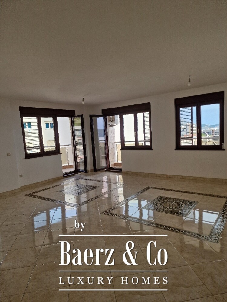 Apartment Budva presents a rare blend of waterfront living and easy access to the vibrant heart of Montenegro’s Adriatic coast. Situated in Becici just 4 km from Budva’s historic center, this 120 m² apartment occupies the second floor of a contemporary five-story building, a brief 200-metre walk from the beach and sea. Airport connections are direct, with Tivat 23 km and Podgorica 60 km away. The immediate surroundings offer restaurants, grocery shops, and hotels just moments from your door.