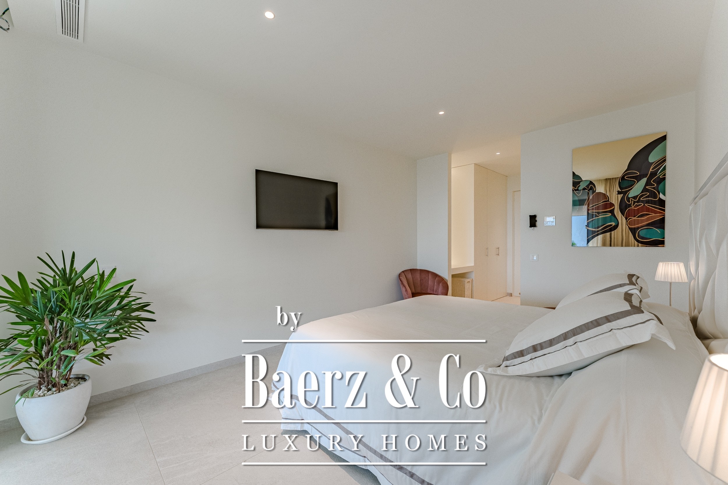 Framed by panoramic ocean views reaching toward La Gomera, the villa’s three levels are illuminated by floor-to-ceiling windows, creating a gentle, sunlit atmosphere. The open plan features four generous bedrooms, five bathrooms, elegant dressing rooms, and multi-purpose living spaces, each detail considered and executed with top-quality materials. Terraces and patios merge indoor and outdoor rhythms, while the infinity pool extends toward the horizon for unobstructed relaxation.