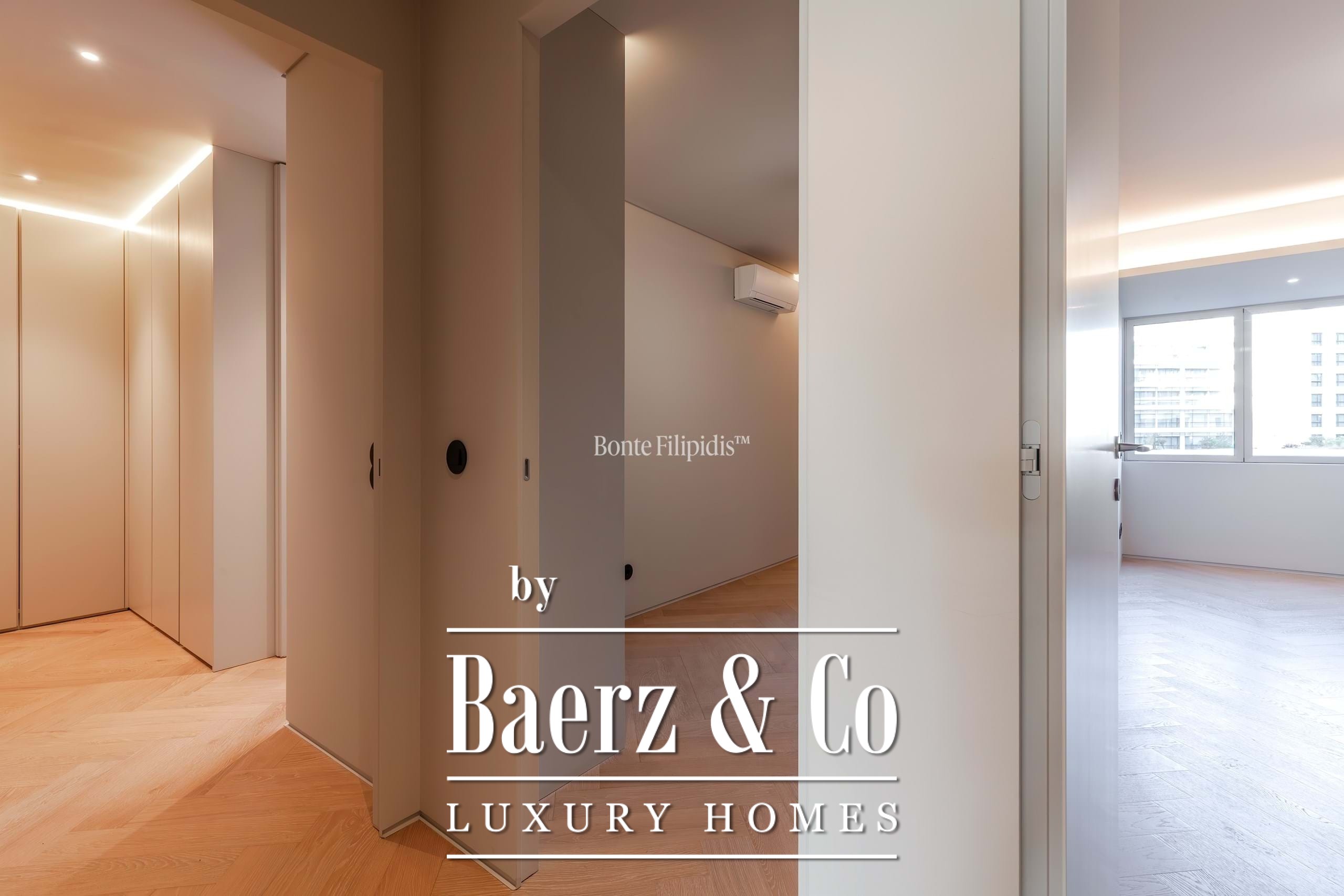 A comprehensive renovation has elevated every space, featuring high-quality materials and subtle, contemporary finishes. The versatile layout is thoughtfully designed to maximize natural light, centering on a remarkable 47 m² living room with extraordinary sun exposure and a balcony that frames river, garden, and city views. The adjacent kitchen of 15.4 m², equipped with Smeg appliances, seamlessly integrates with the social area to create an open-plan rhythm ideal for both privacy and hospitality.