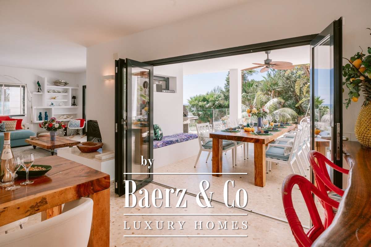 includes a private gym, a game room, and a separate laundry area.With its exceptional finishes and contemporary architecture, this villa is not only the perfect holiday home but also an outstanding investment opportunity in Ibiza.Outdoor Living at Its Finest: Pool, Jacuzzi, and Breathtaking ViewsThe outdoor areas of this villa are just as spectacular as the interiors. The large infinity pool offers unparalleled panoramic views of the lush hills and the sea, while the spacious sun terraces invite you to relax and soak up the Ibiza sunshine. Start your day with a coffee on your private terrace, spend the afternoon lounging by the pool, and end the evening with a barbecue in the outdoor kitchen, dining under the stars.The jacuzzi adds an extra layer of relaxation, while the Bali-style pergola with massage beds offers a unique wellness experience with mesmerizing island views. Families will appreciate the dedicated play area and trampoline, making this villa an excellent choice for both families and investors seeking a high-end property in Ibiza.Are you looking for a dream villa that combines privacy, luxury, and a prime location? Then this is your opportunity. This exclusive villa in Can Furnet offers everything you need in a high-end Ibiza home. Contact us today to schedule a viewing and experience this extraordinary property firsthand!Additional OpportunitiesSince this is a big buildable plot within an urbanization, there is even the option to completely demolish the existing villa and develop something entirely new and contemporary on this location. Whether you dream of building your own home, considering a full renovation, or making specific modifications to change the layout, the possibilities are endless. At Ibiza Estates, we are more than happy to think along with you!