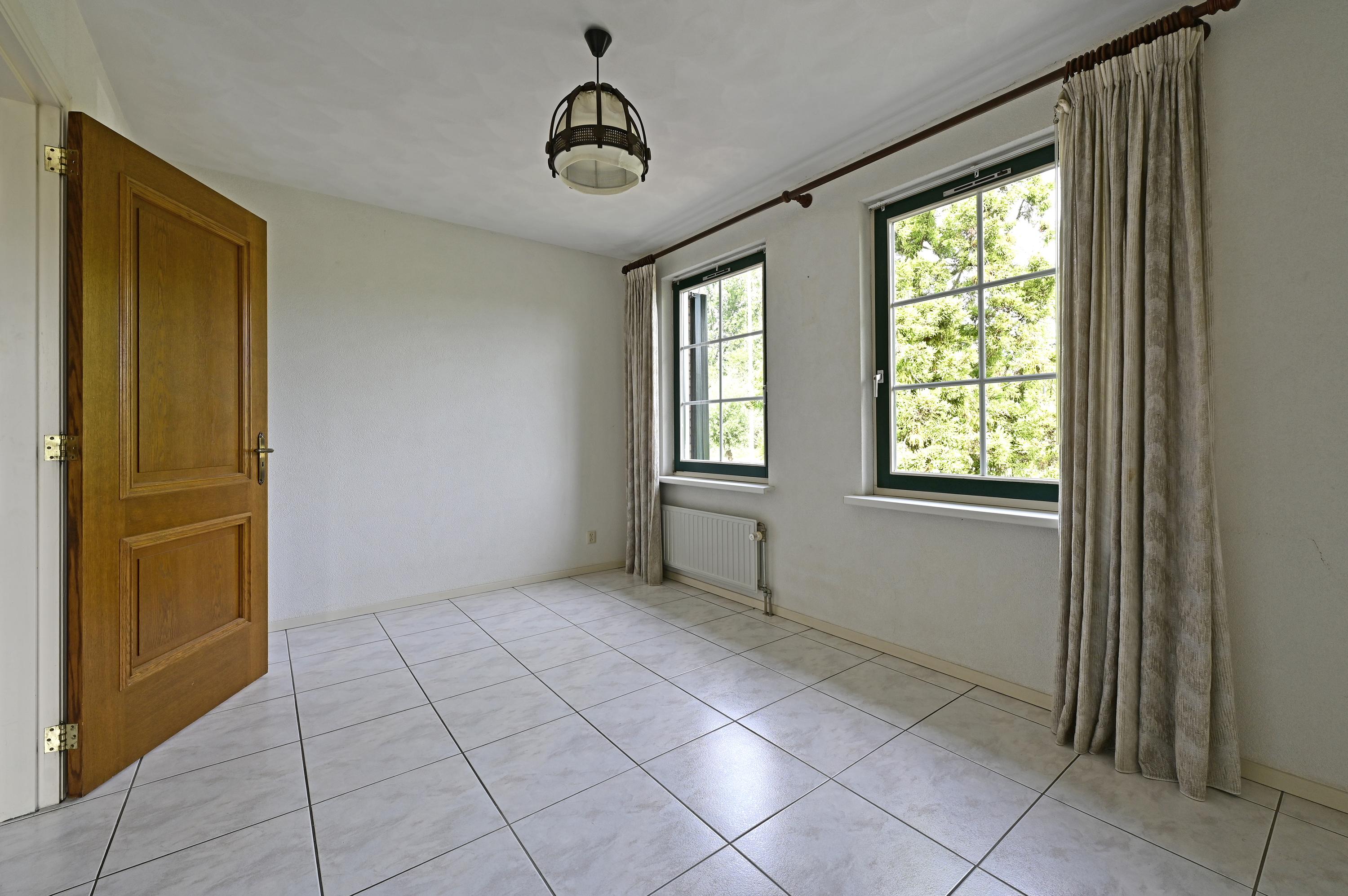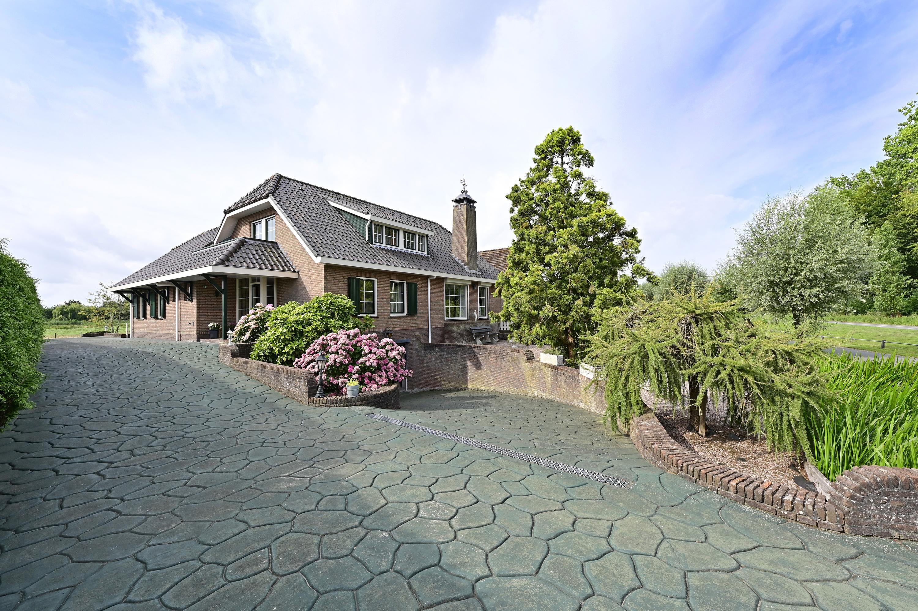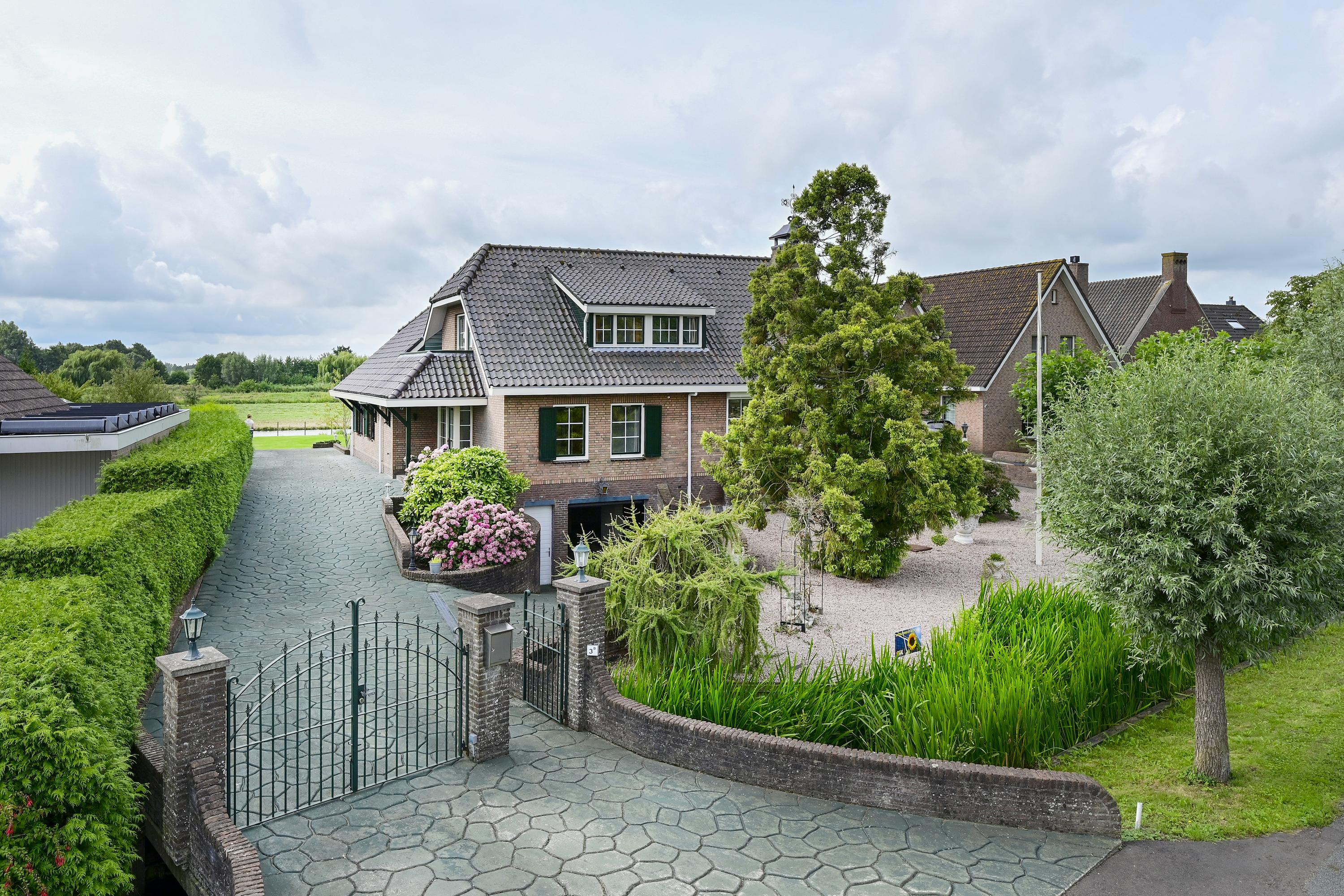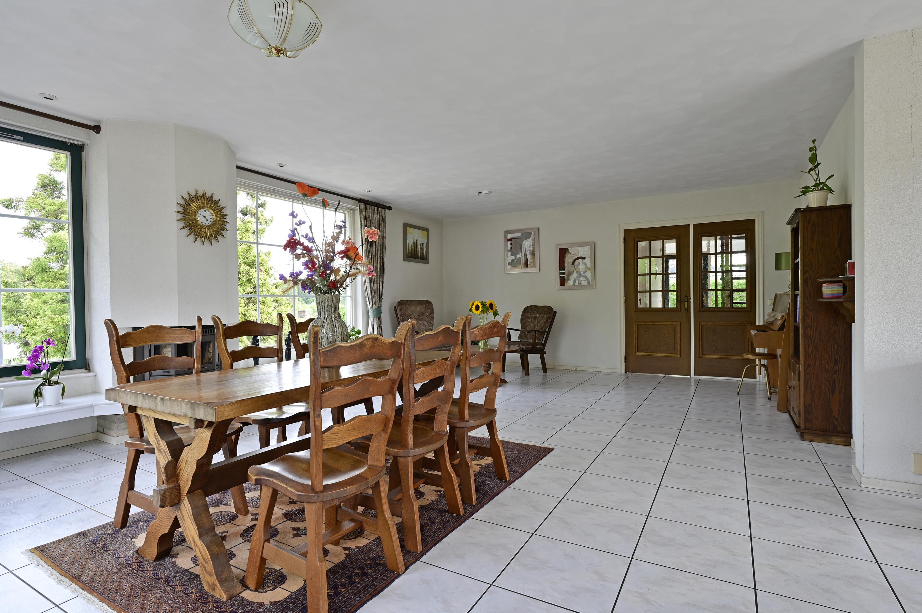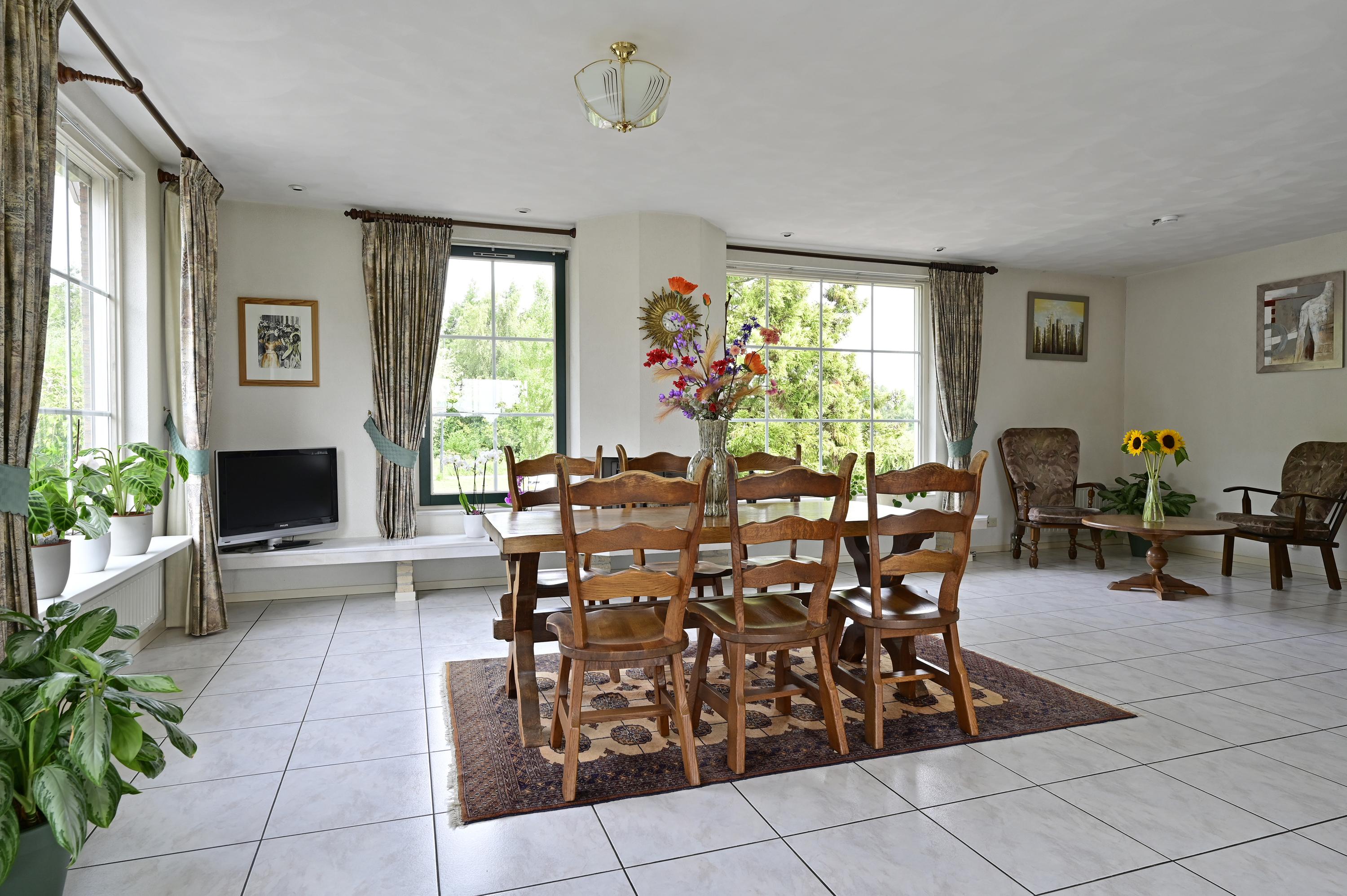 Entering the property, a bridge leads to a refined gated entrance and a drive that connects the main villa, pavilion, and integral garage. Designed for both family life and entertaining, the ground level reveals luminous living spaces, a kitchen linking to the garden, and direct terrace access for dining above sweeping polder vistas. A marble fireplace anchors the drawing room, while underfloor heating and quality finishes underscore a unified sense of comfort. The lower level is defined by versatility: office, storage, and a vast garage able to house at least five cars, offering both practical respite and collectible potential.