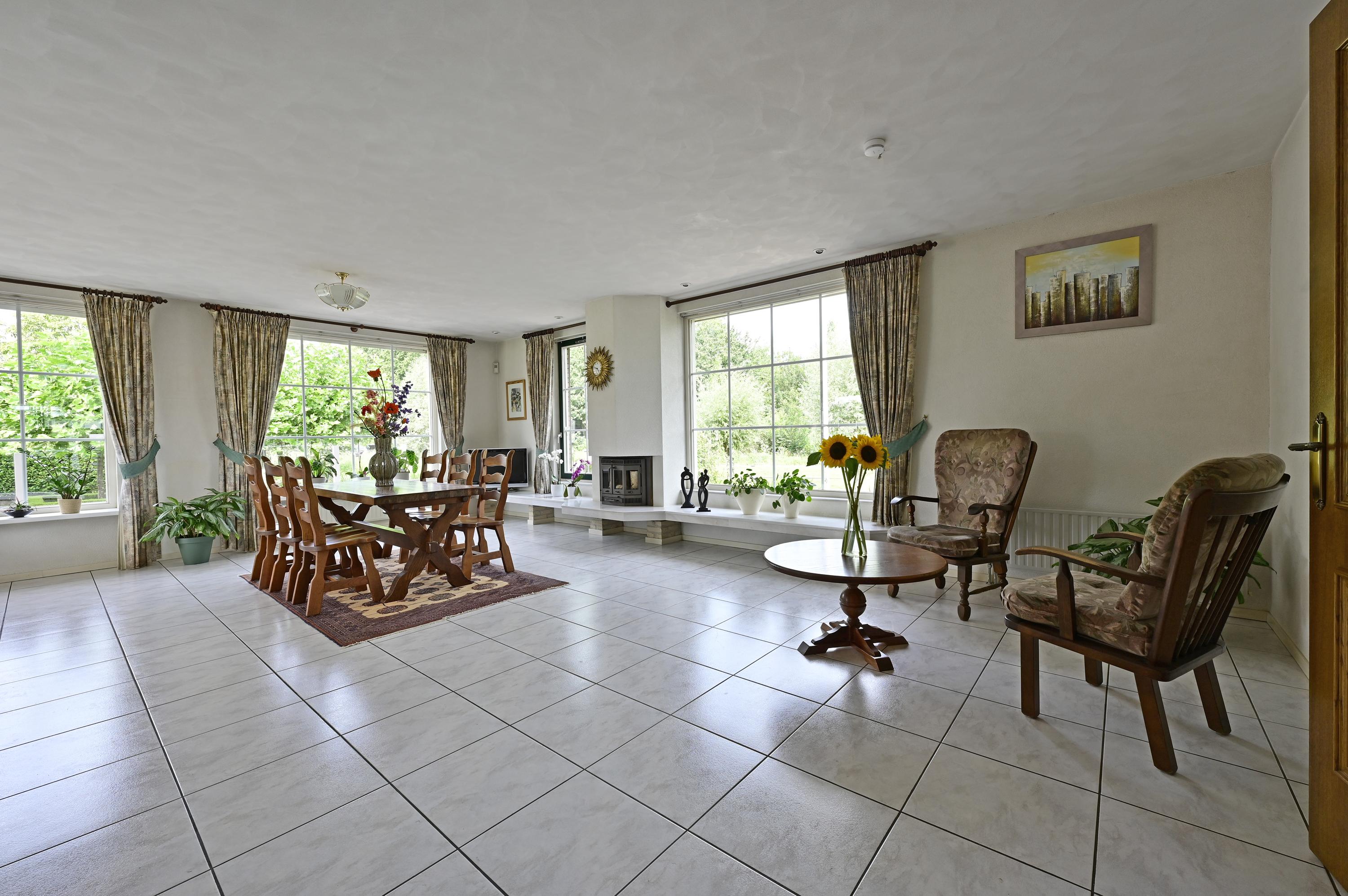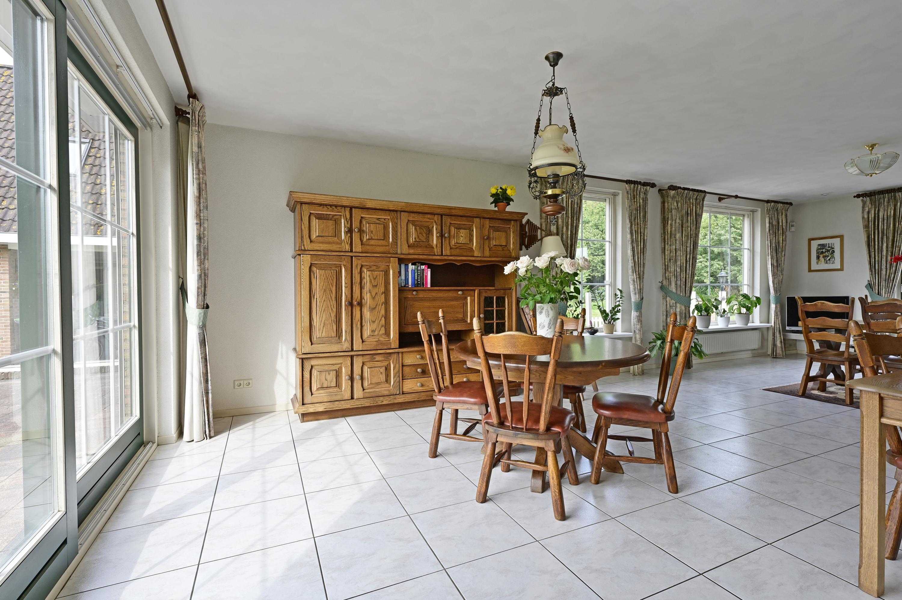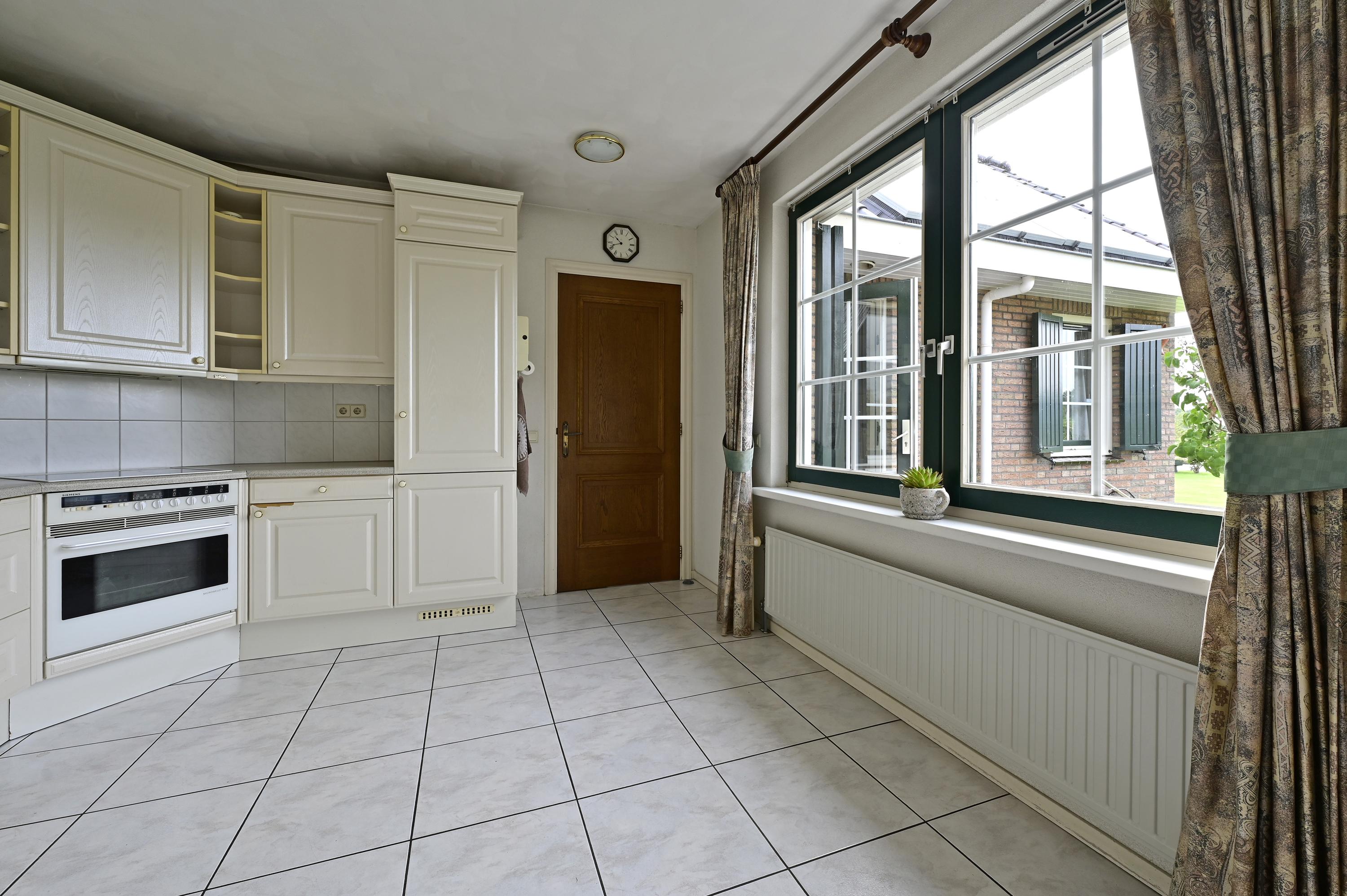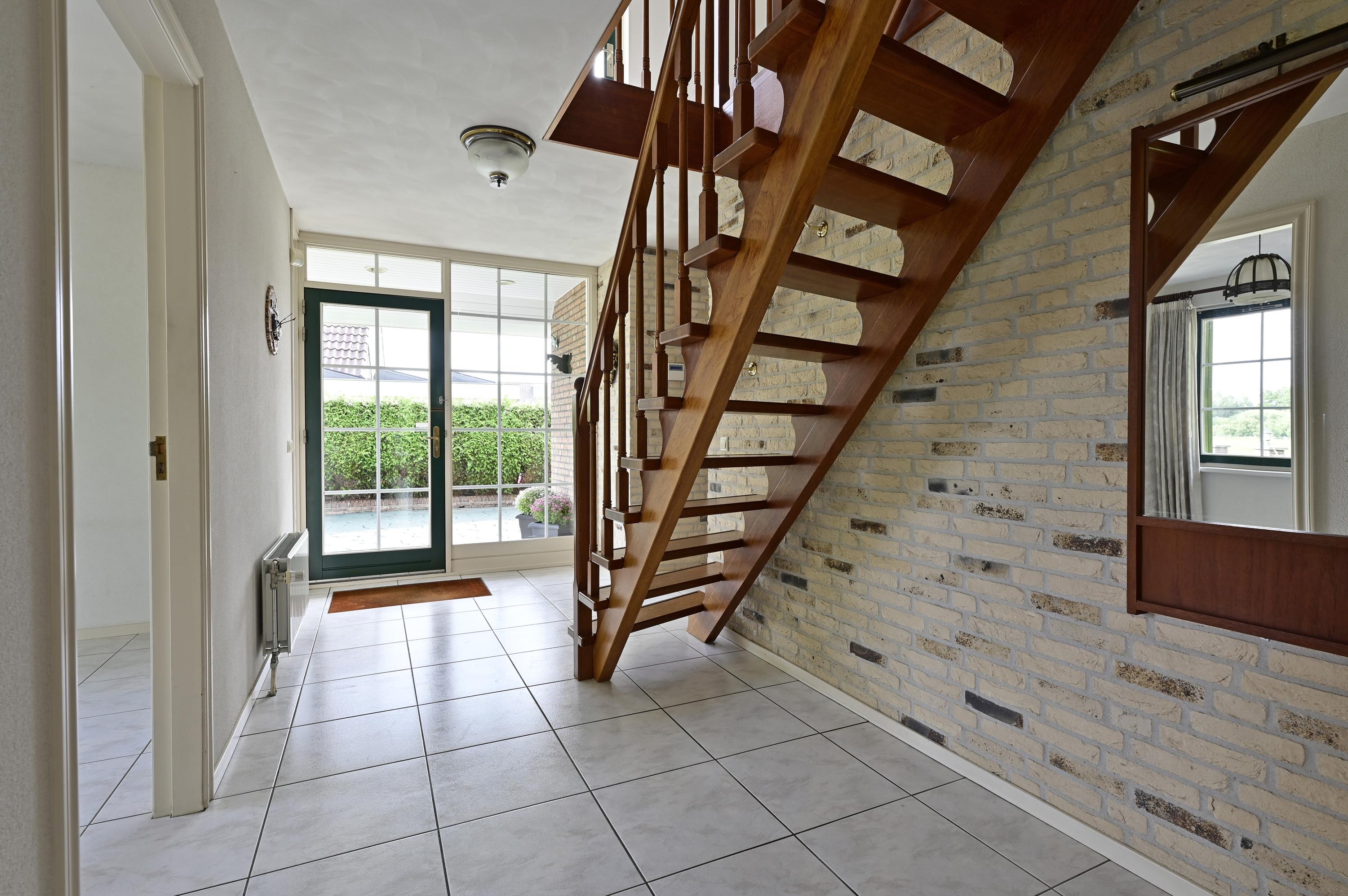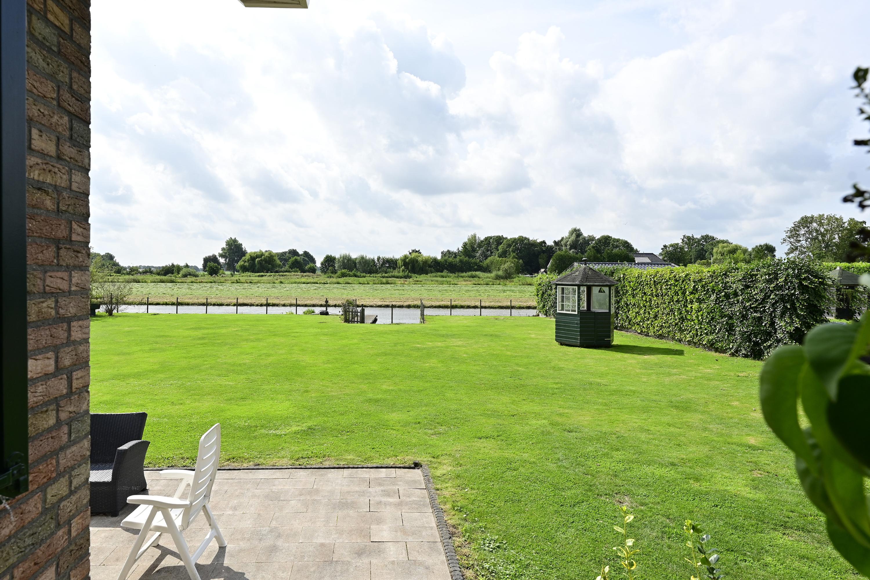 Entering the property, a bridge leads to a refined gated entrance and a drive that connects the main villa, pavilion, and integral garage. Designed for both family life and entertaining, the ground level reveals luminous living spaces, a kitchen linking to the garden, and direct terrace access for dining above sweeping polder vistas. A marble fireplace anchors the drawing room, while underfloor heating and quality finishes underscore a unified sense of comfort. The lower level is defined by versatility: office, storage, and a vast garage able to house at least five cars, offering both practical respite and collectible potential.