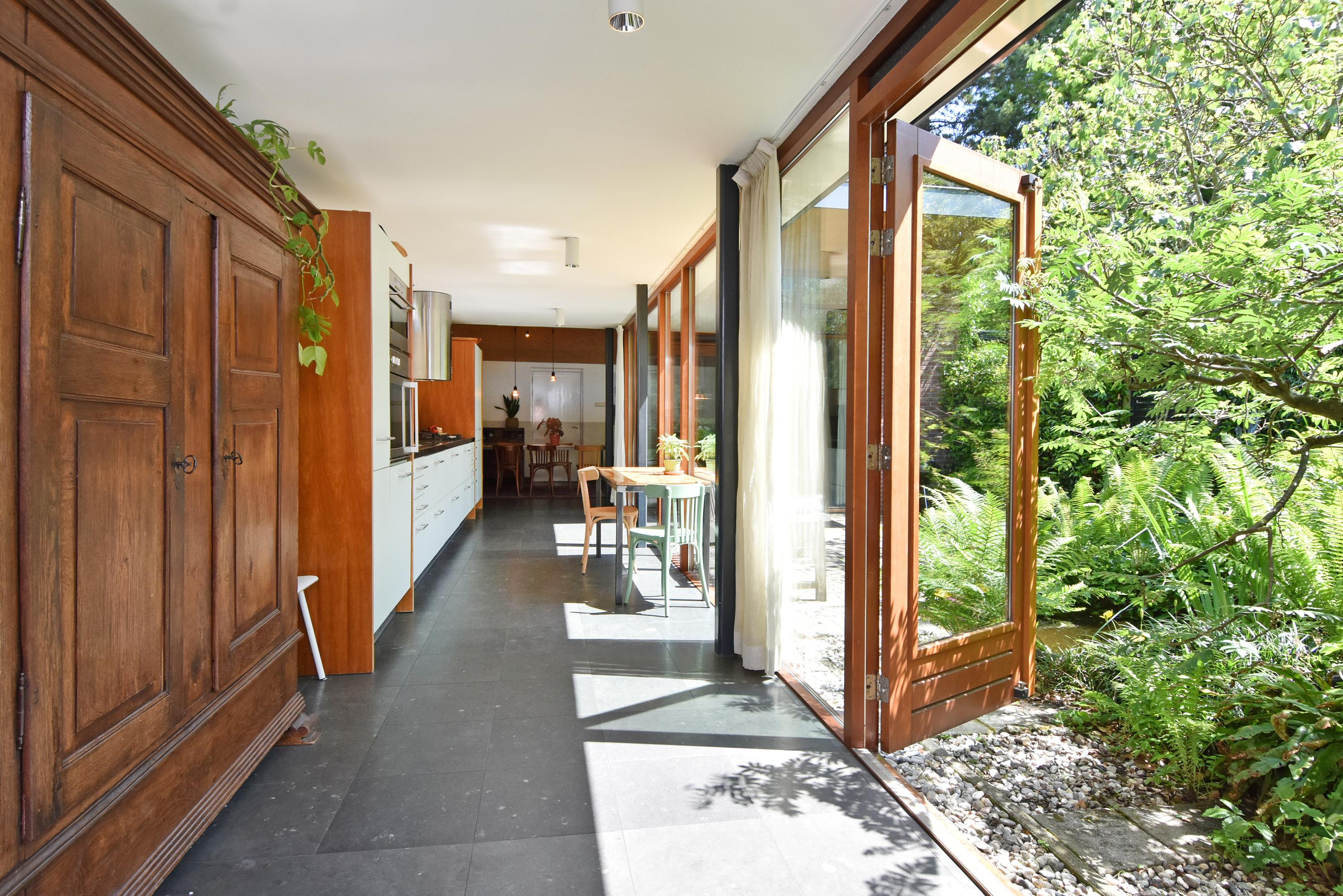Living is generous and adaptable, with six bedrooms and four bathrooms arranged to allow for family, dual living, or refined working spaces. The first floor features a flexible living-dining room with a study and balcony, while the top level offers views of Delft's towers and an additional suite of bedrooms and storage. The property benefits from sustainable features including solar collectors, panels, and double glazing, ensuring a thoughtful stewardship of comfort and efficiency. Landscaped gardens, terraces, and a generous 24m² garage round out this freehold townhouse.