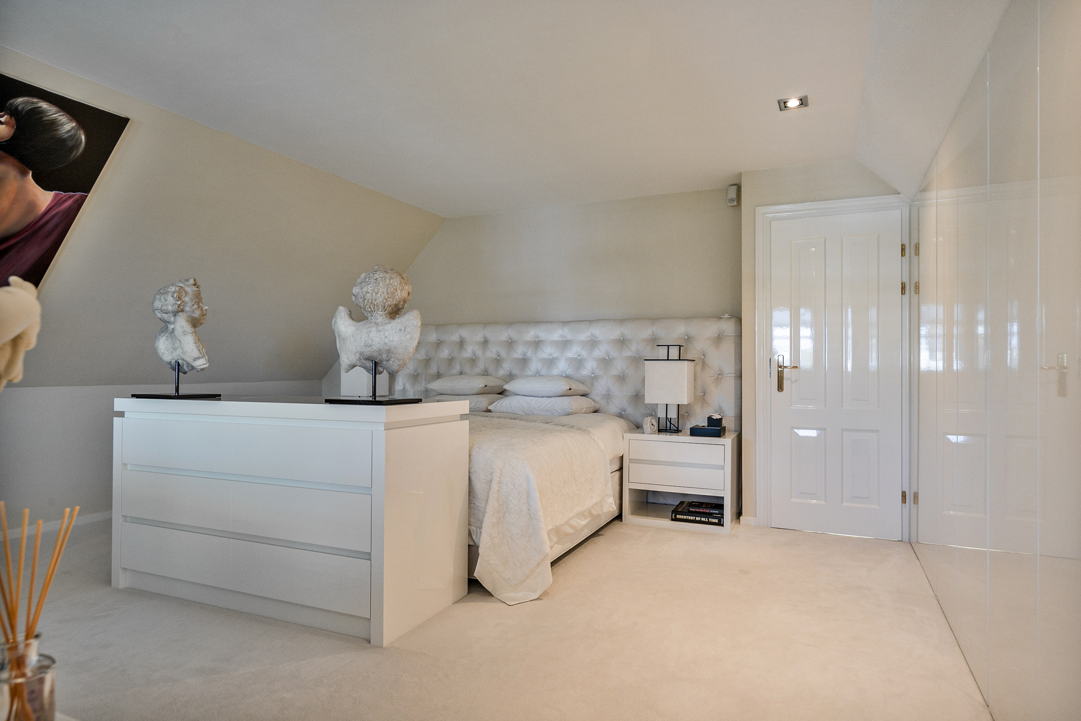 Three spacious bedrooms, including an elegant master bedroom with ample wardrobe space, and a luxurious bathroom featuring a walk-in shower and bathtub.