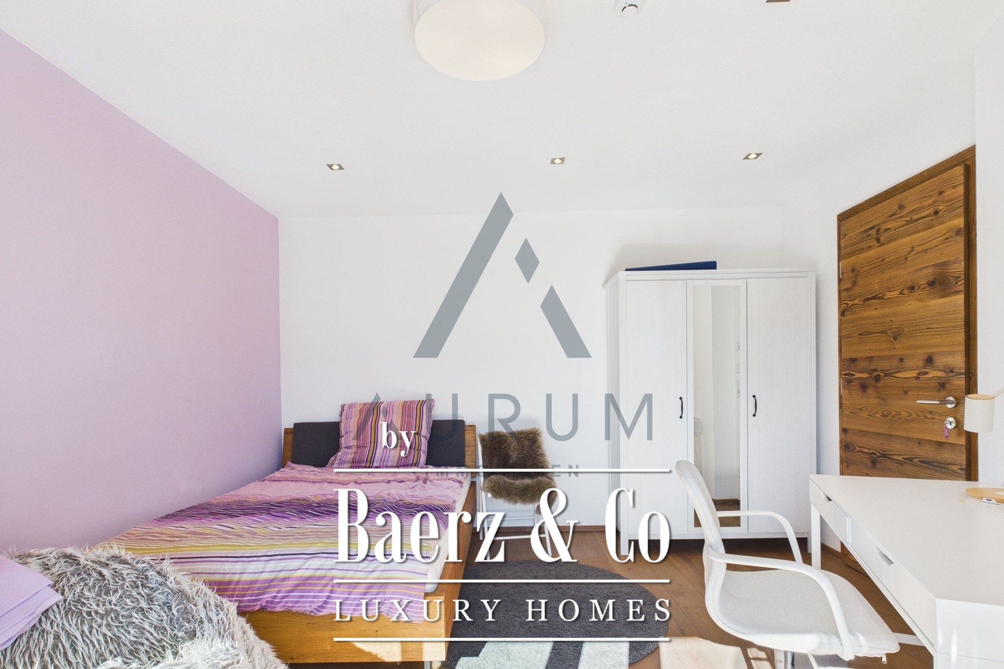 Storage is ample, including a sports cellar with ski boot dryer, ground floor and garage storage, plus underground parking for two vehicles, one carport, a wallbox, and a heated entrance. The elevator shaft, already in place, anticipates future adaptation. Alarm system and advanced features imbue the residence with confidence and peace of mind.