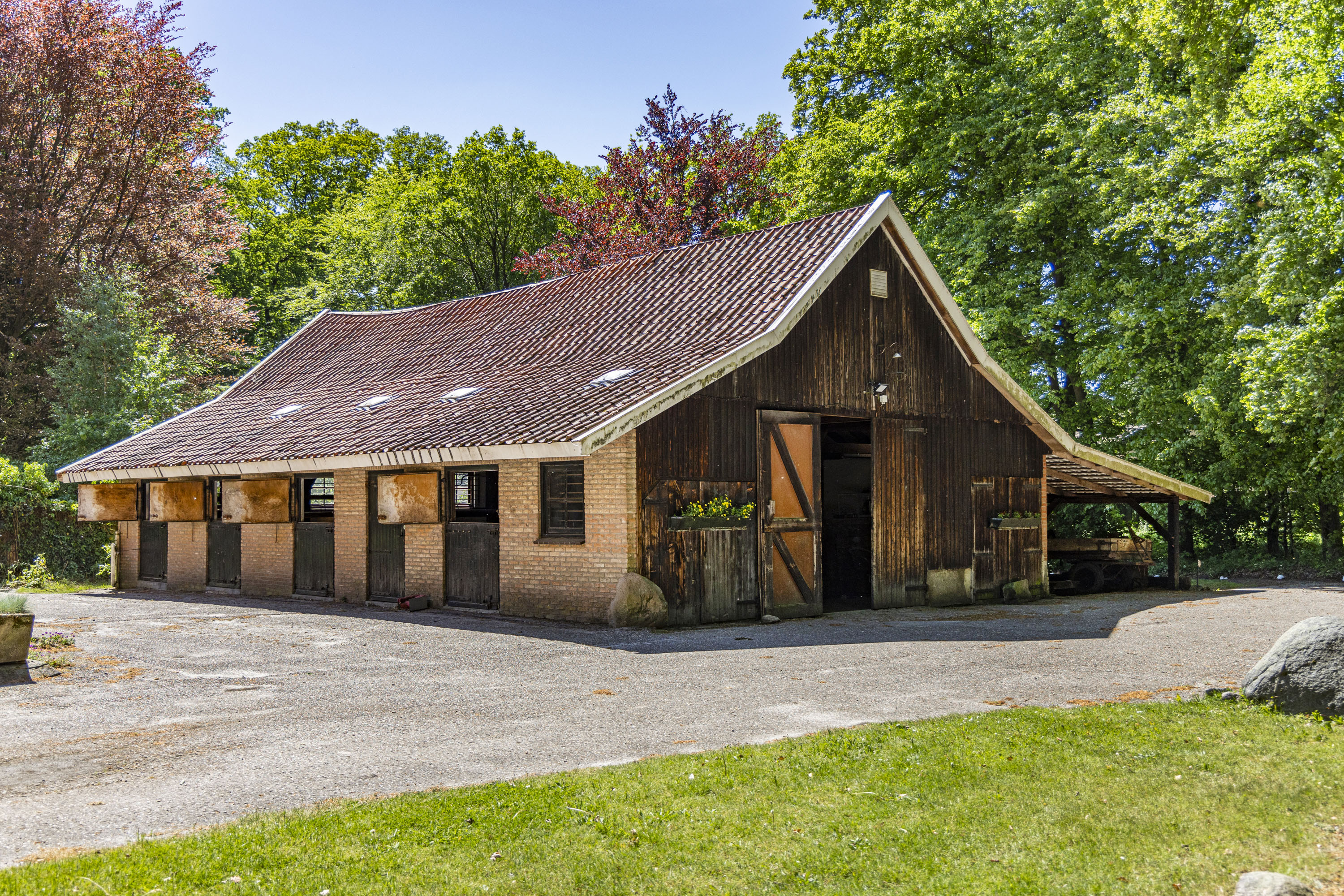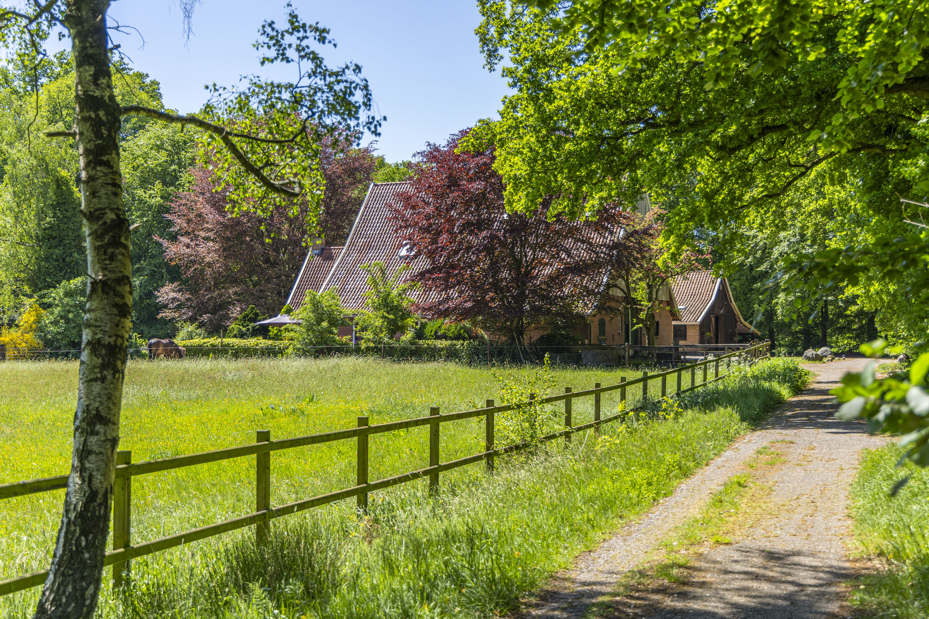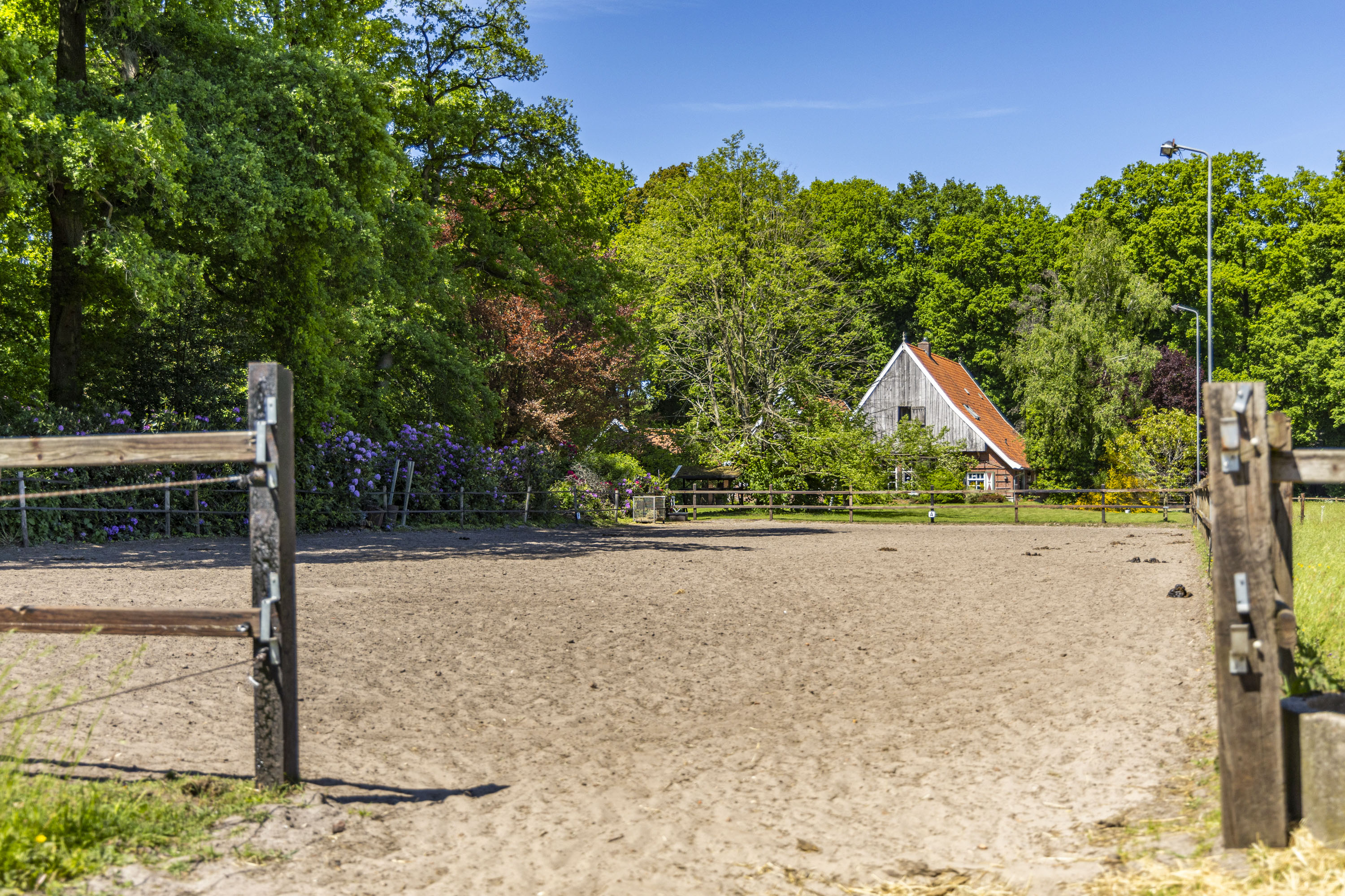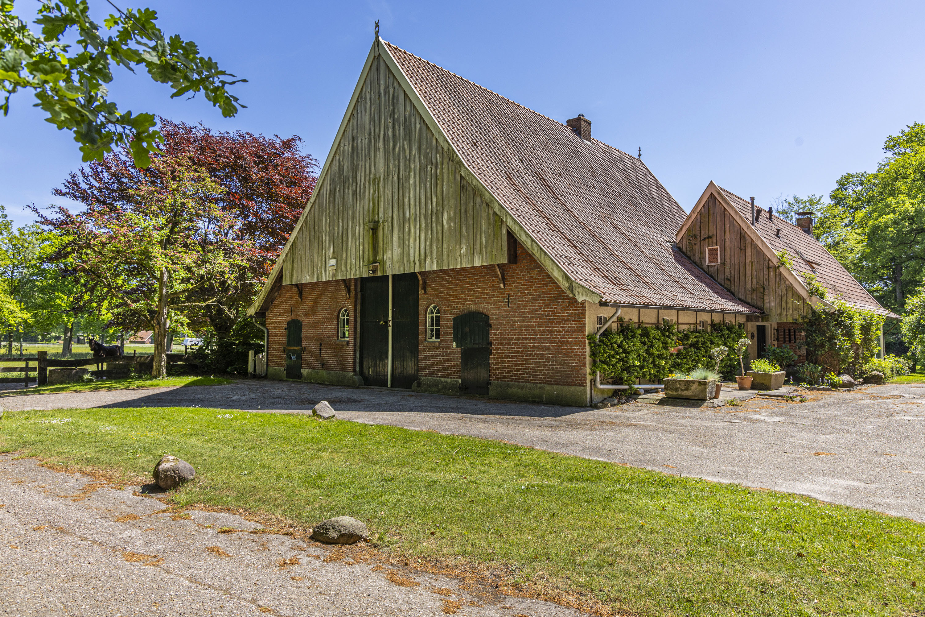 Integral outbuildings include a Saxon-style barn of 225 m², a stable block with five horse stalls, and further facilities intended for equestrian and agricultural use. At the forest’s edge, a modest summer cottage offers space for guests, complementing ancillary structures such as the old sheepfold, chicken coop and storage shed—a quiet tribute to Twente farmstead traditions.