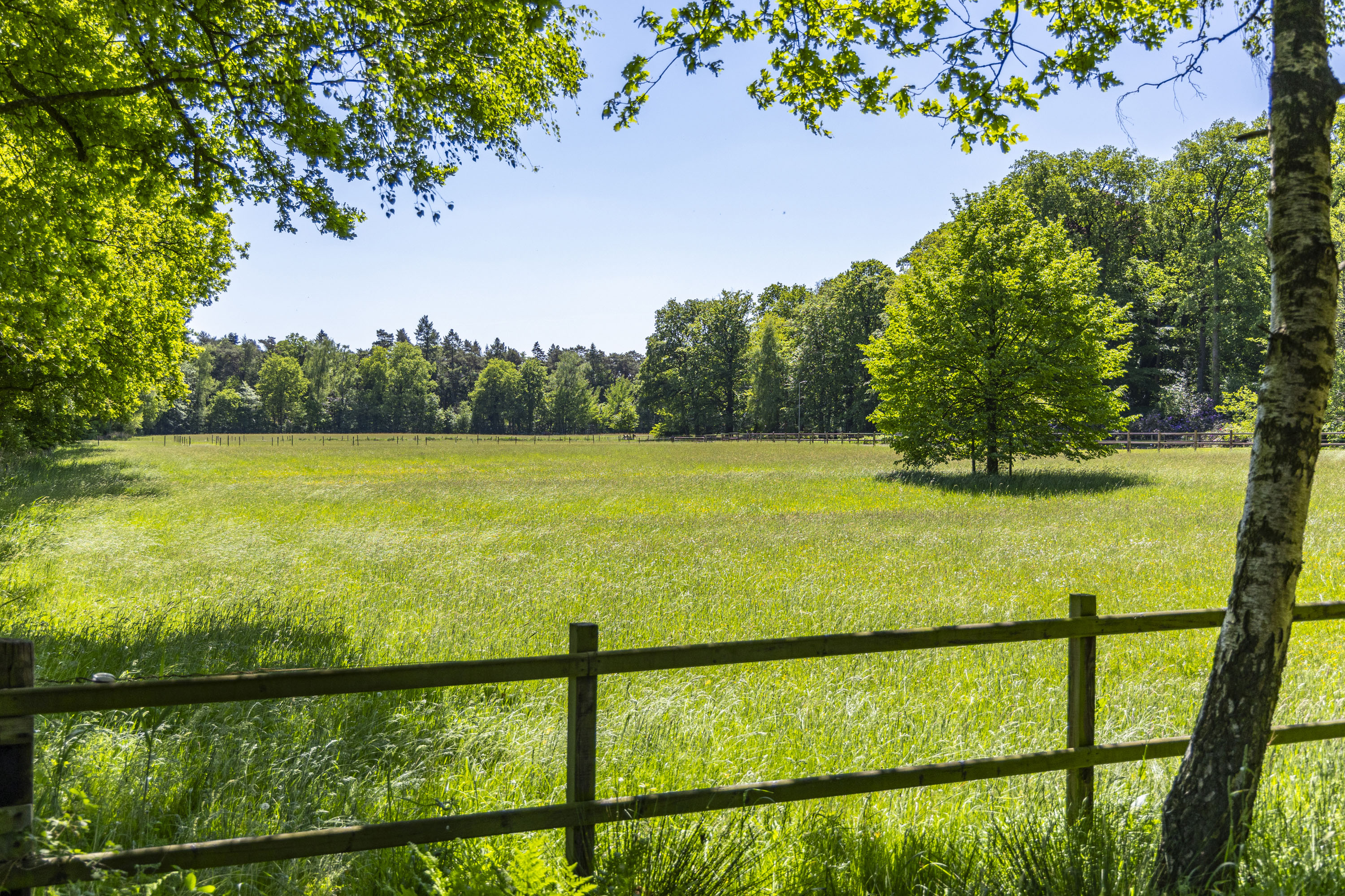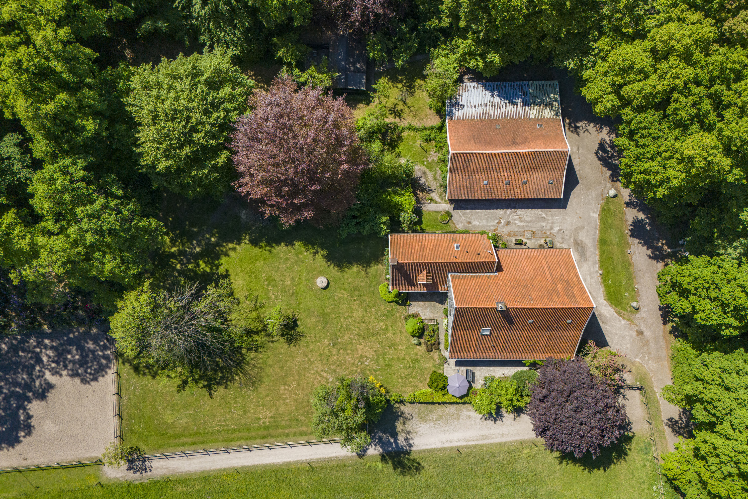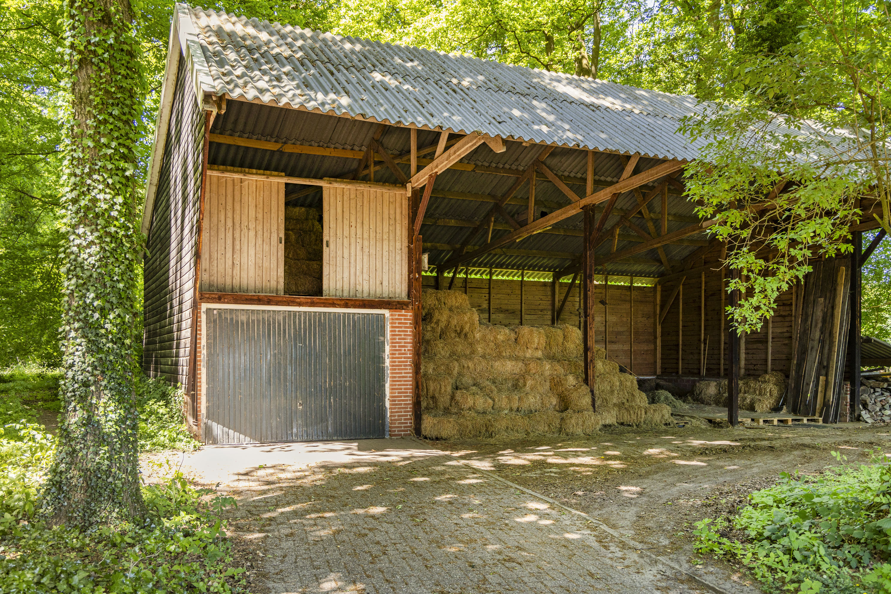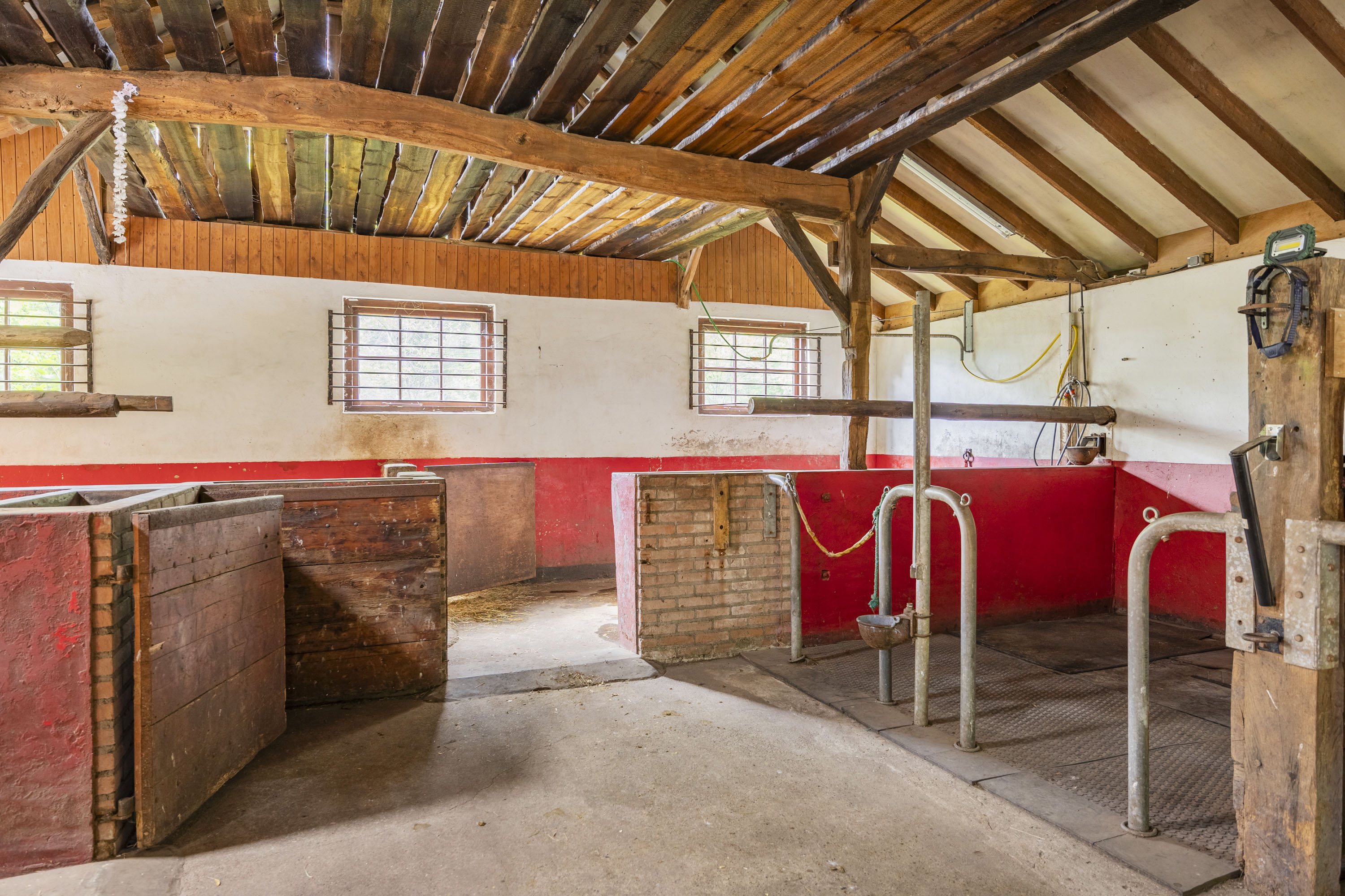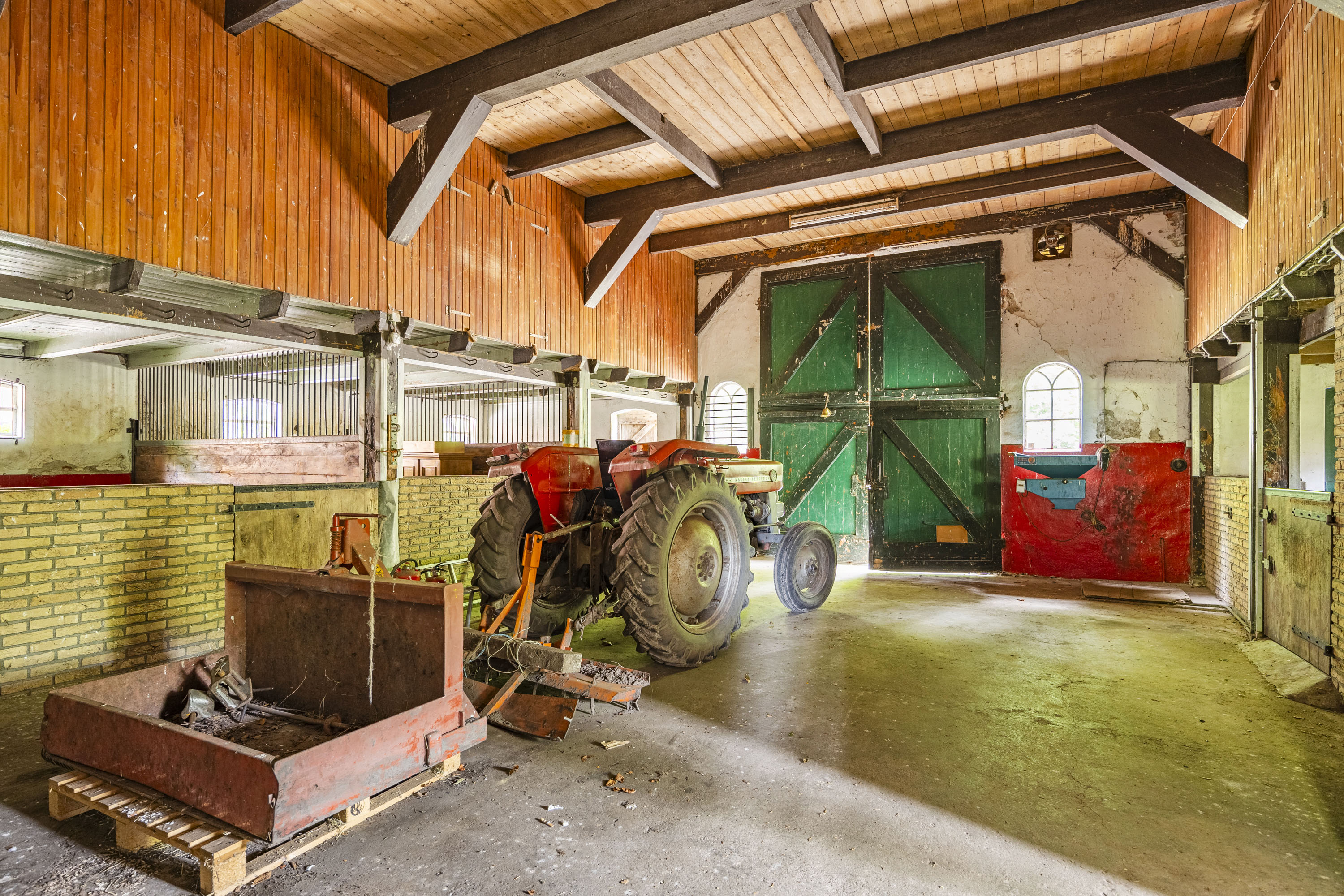 Integral outbuildings include a Saxon-style barn of 225 m², a stable block with five horse stalls, and further facilities intended for equestrian and agricultural use. At the forest’s edge, a modest summer cottage offers space for guests, complementing ancillary structures such as the old sheepfold, chicken coop and storage shed—a quiet tribute to Twente farmstead traditions.