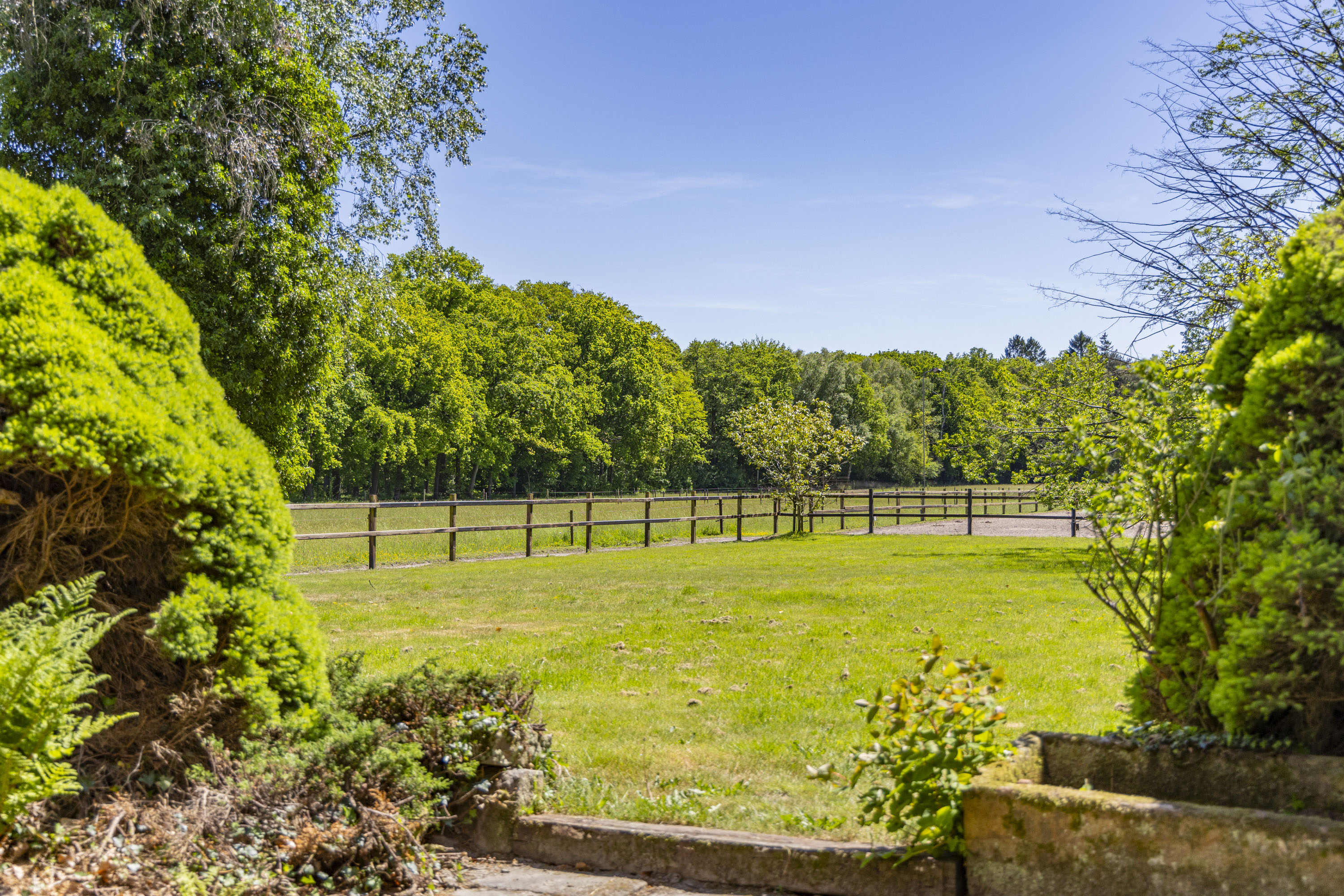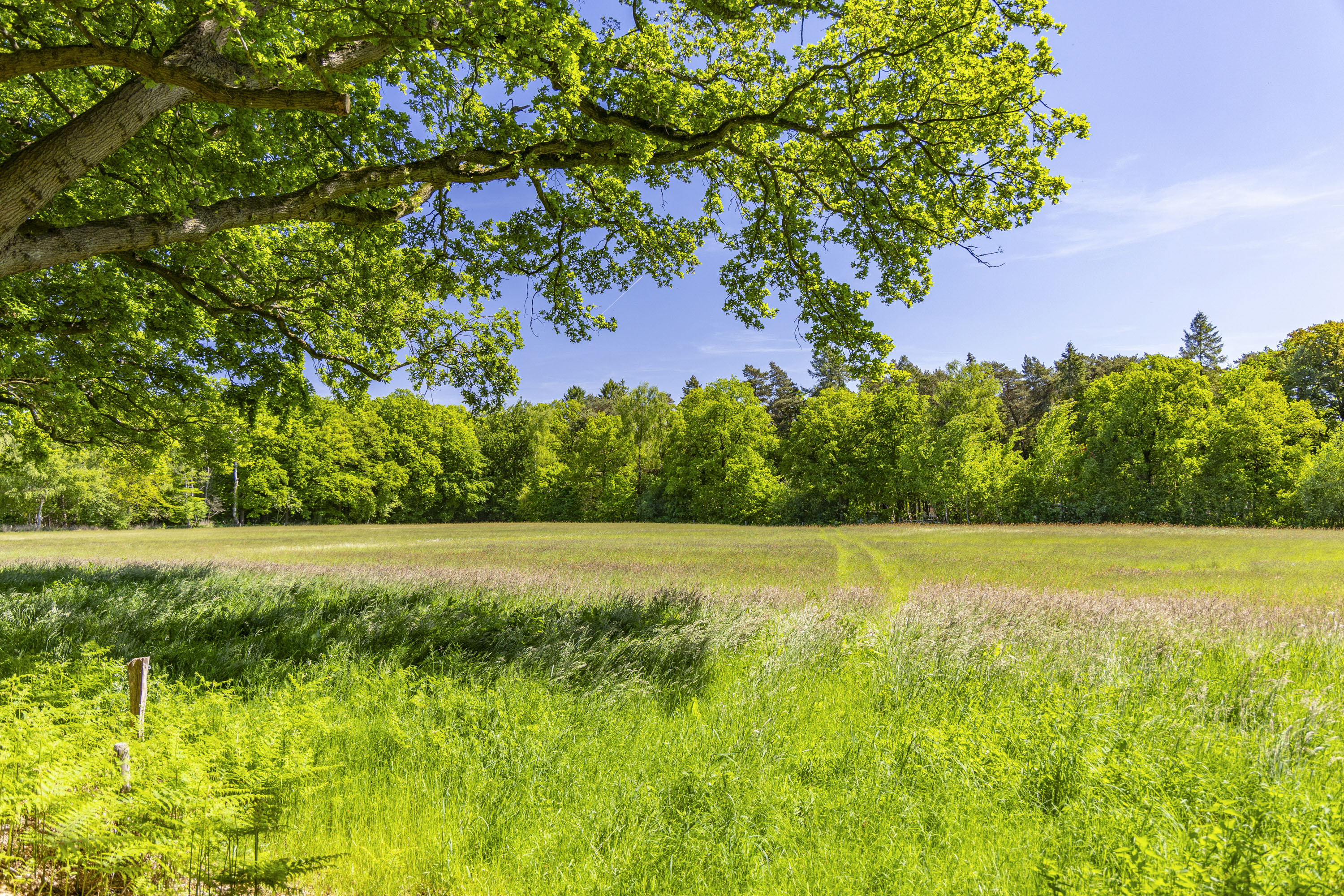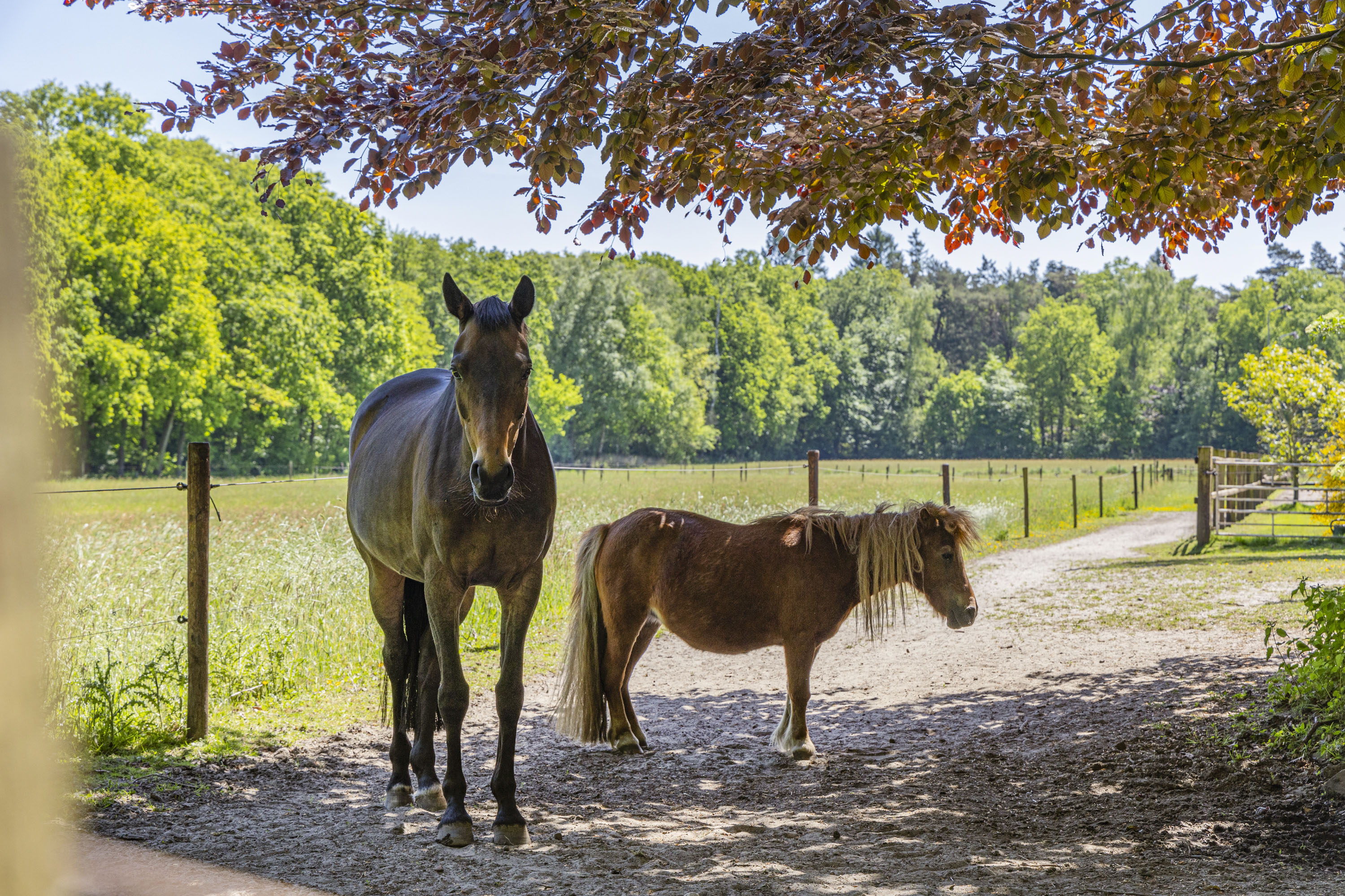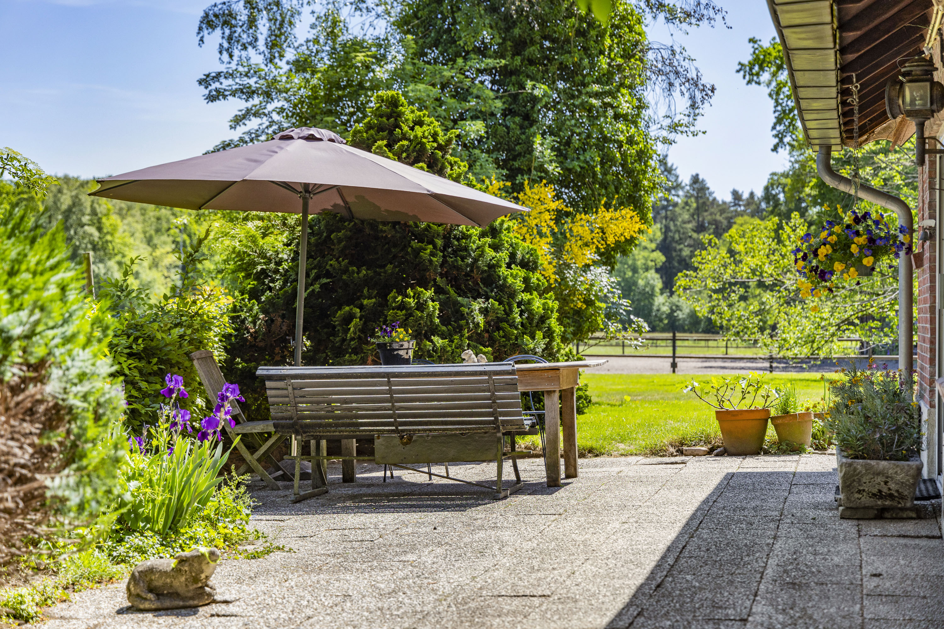 Integral outbuildings include a Saxon-style barn of 225 m², a stable block with five horse stalls, and further facilities intended for equestrian and agricultural use. At the forest’s edge, a modest summer cottage offers space for guests, complementing ancillary structures such as the old sheepfold, chicken coop and storage shed—a quiet tribute to Twente farmstead traditions.