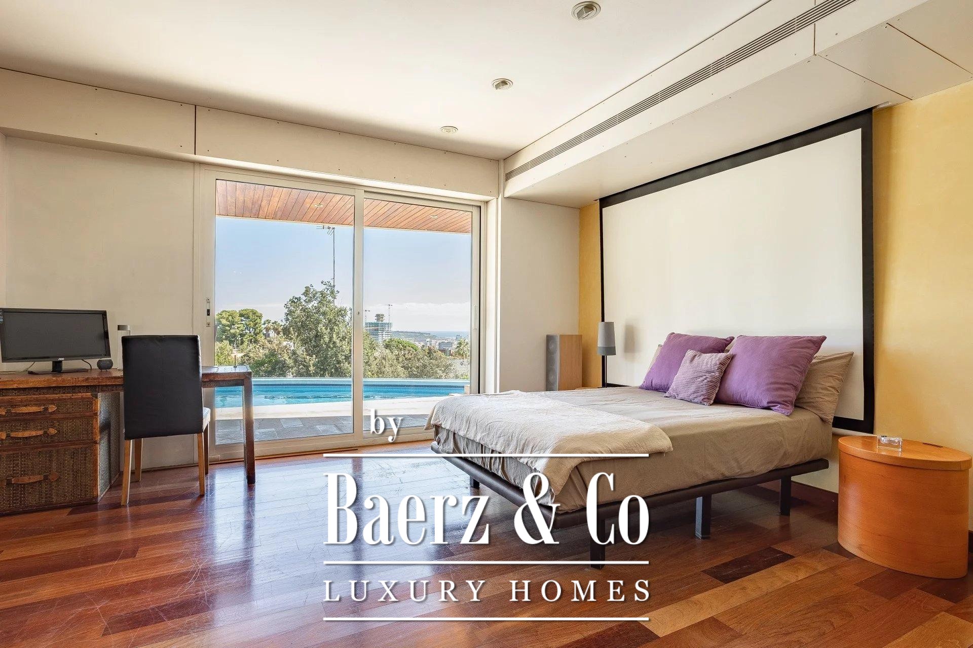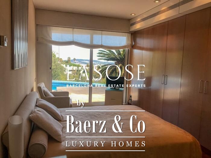 The upper floors feature a dedicated night area with three principal bedrooms, each en-suite, and a master suite with study. Further up, three single bedrooms with bathrooms and a panoramic terrace capture light and distant sea views. Amenities include central heating, air conditioning, elevator, video intercom, gymnasium, storage, and automatic irrigation. This villa in Esplugues de Llobregat embodies understated Spanish luxury, offering both sanctuary and connection, ideal for those seeking a distinguished family residence near Barcelona.