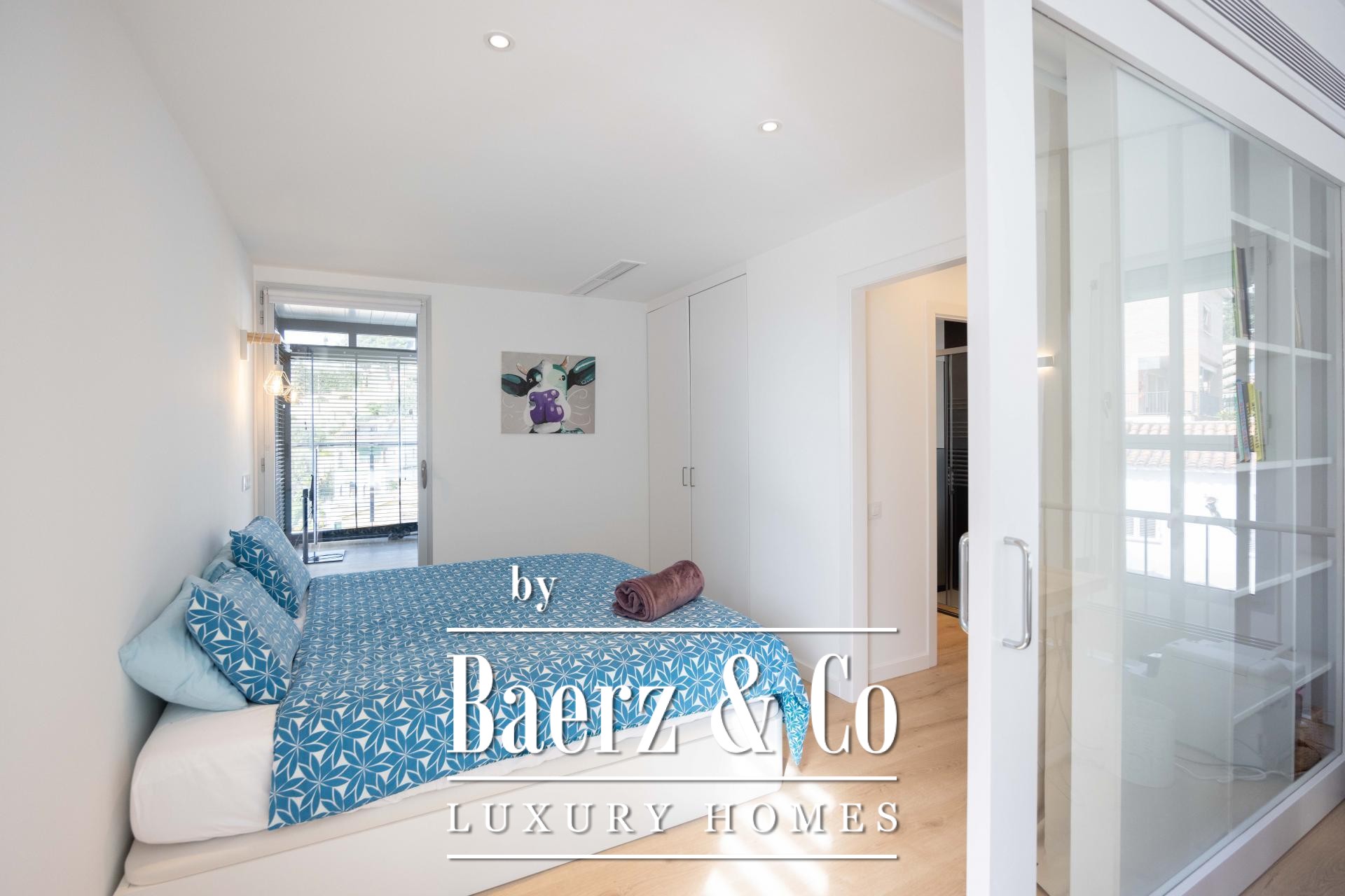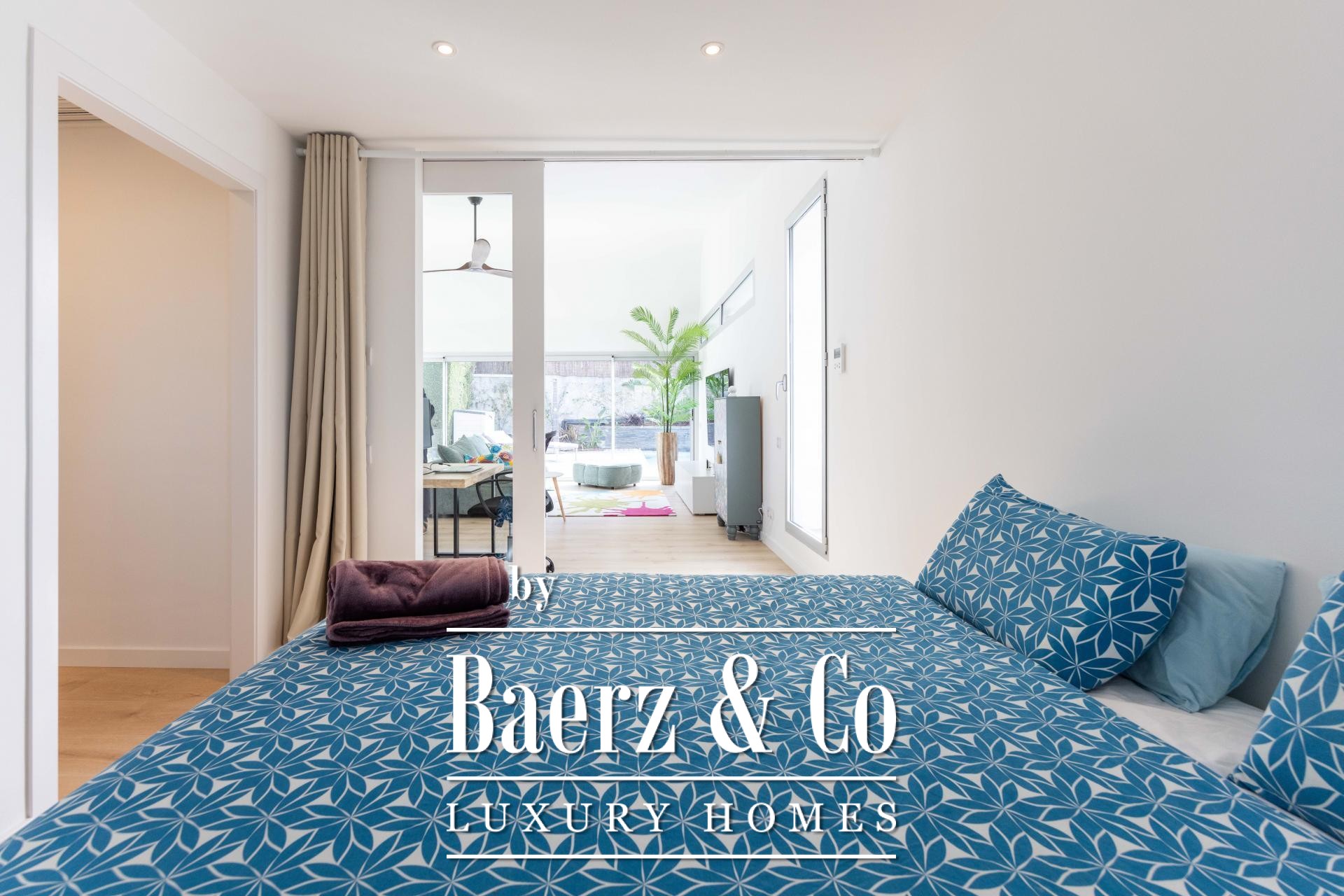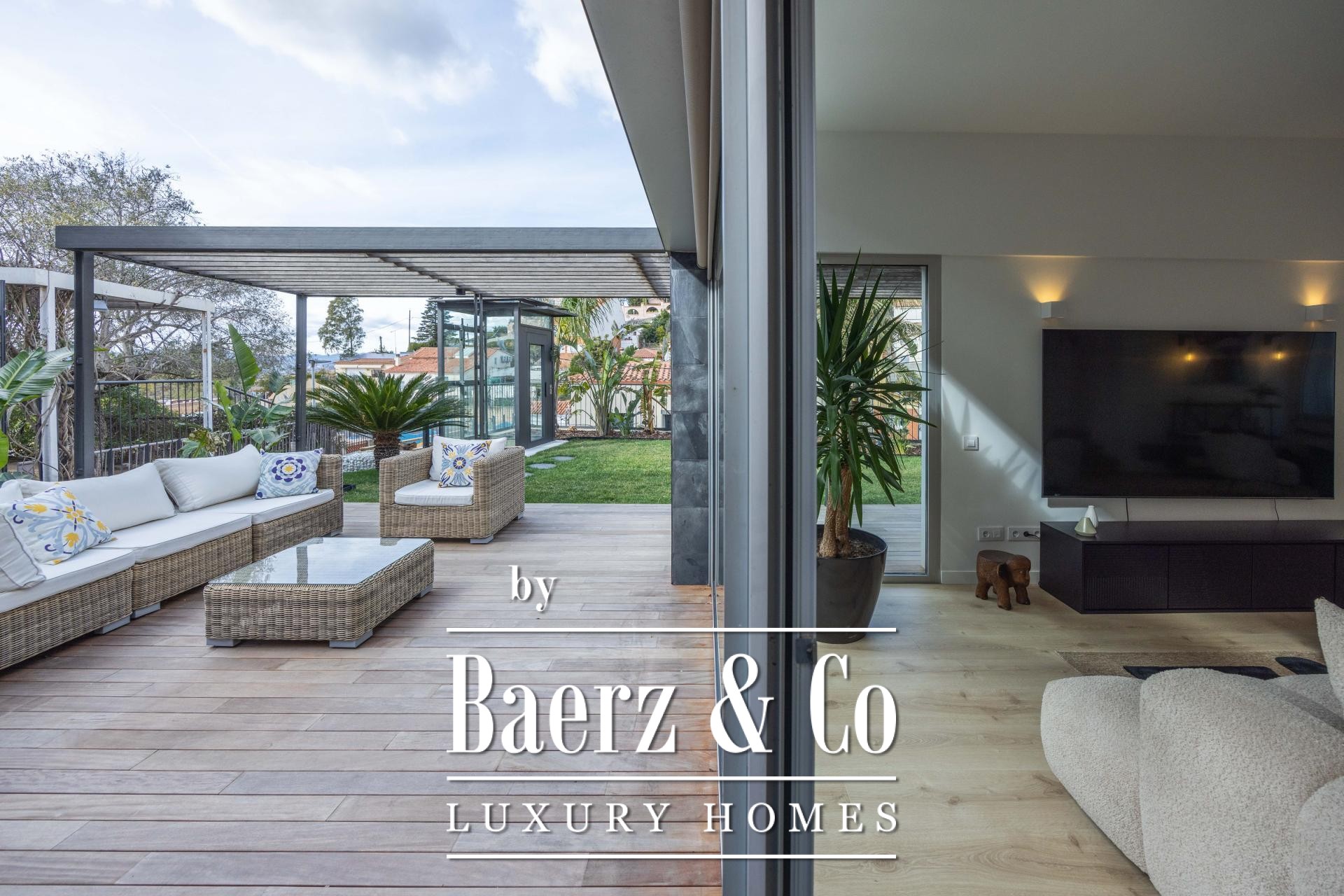 Four landscaped terraces extend the experience outdoors, surrounded by palm and banana trees, curated lawn, a shaded pergola, and a summer kitchen. The 7x5 m swimming pool and wooden sun deck invite moments of relaxation and privacy. The master suite is defined by its walk-in wardrobe, private terrace, and hydromassage bath, while two further bedrooms access a secluded outdoor retreat. An elevator connects the levels, providing comfort and effortless movement throughout the home. The villa’s refined setting in Esplugues de Llobregat ensures both discretion and immediate access to the heart of Barcelona.