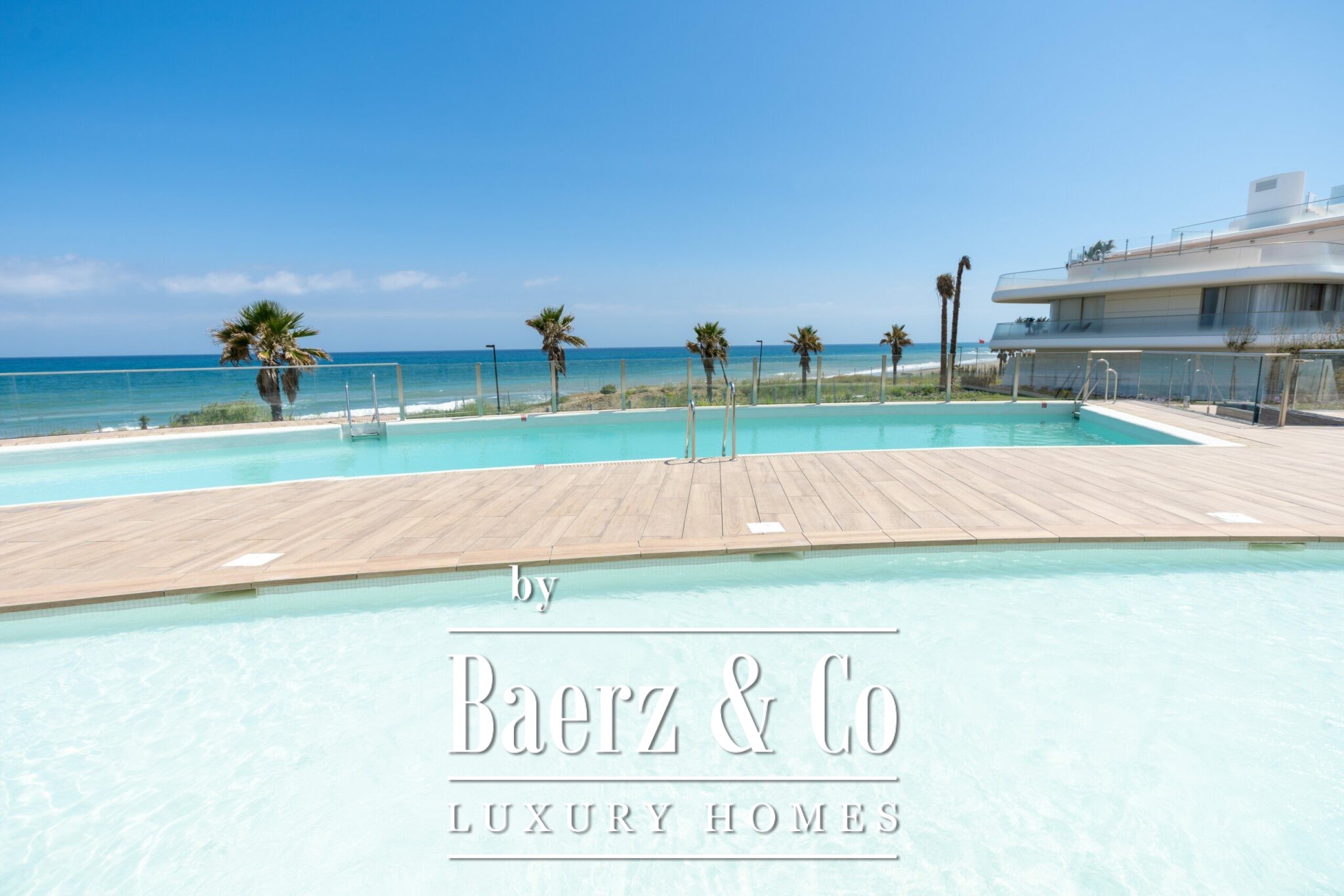 A spectacular residential development in which the prestigious architect has removed any visual barriers between the sea and the homes. Its 2, 3 and 4 bedroom Apartments and two 4 bedrooms Villas facing the sea, with direct access to the beach, blend seamlessly into the organic form of the Mediterranean environment. All surface areas are pedestrianised and the building is exquisitely arranged around a garden, the boundaries of which blend seamlessly with the sand of the beach. The homes offer spacious and bright spaces, open to the landscape, which enjoy views of the sea with absolute privacy. The homes are ready to move in.