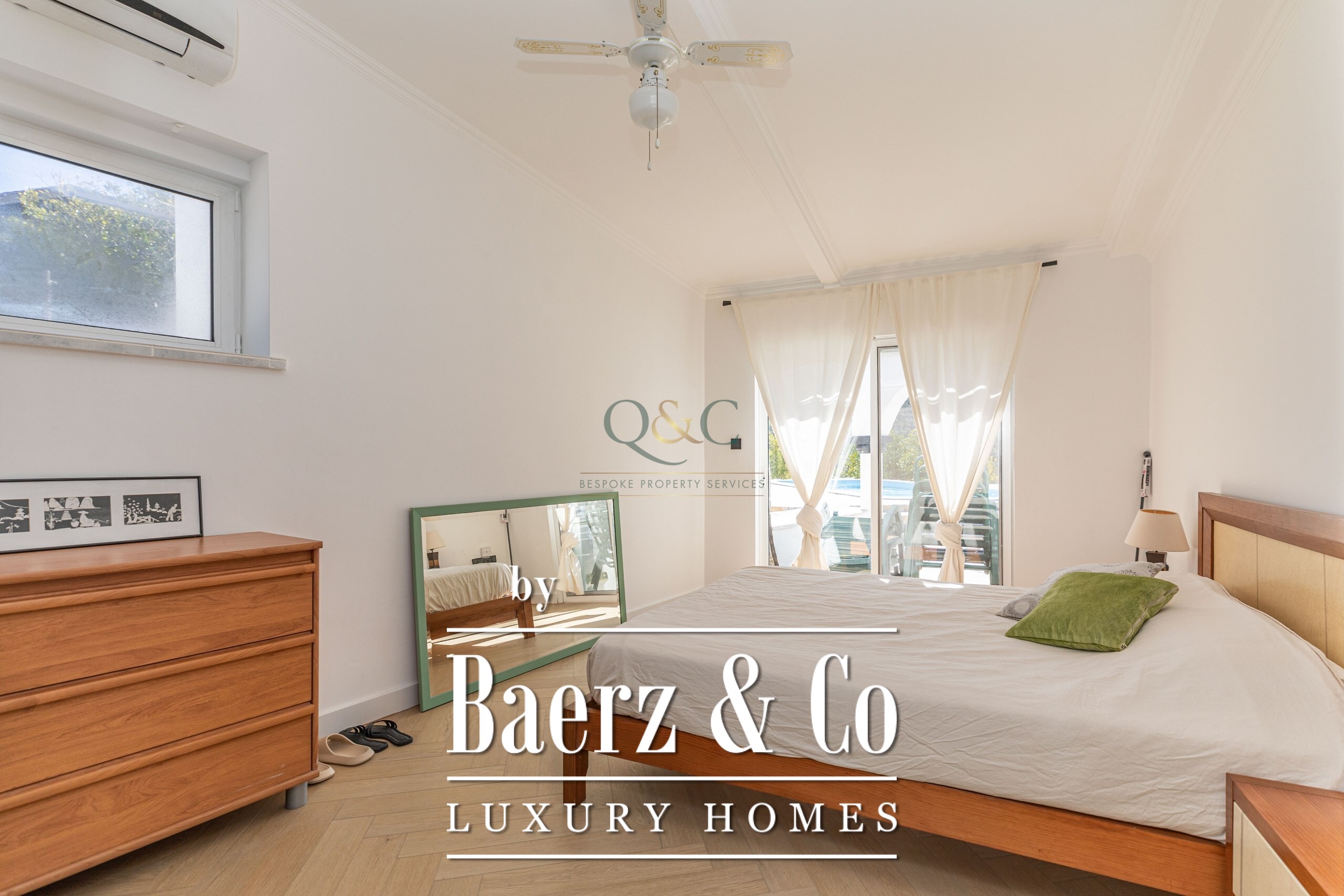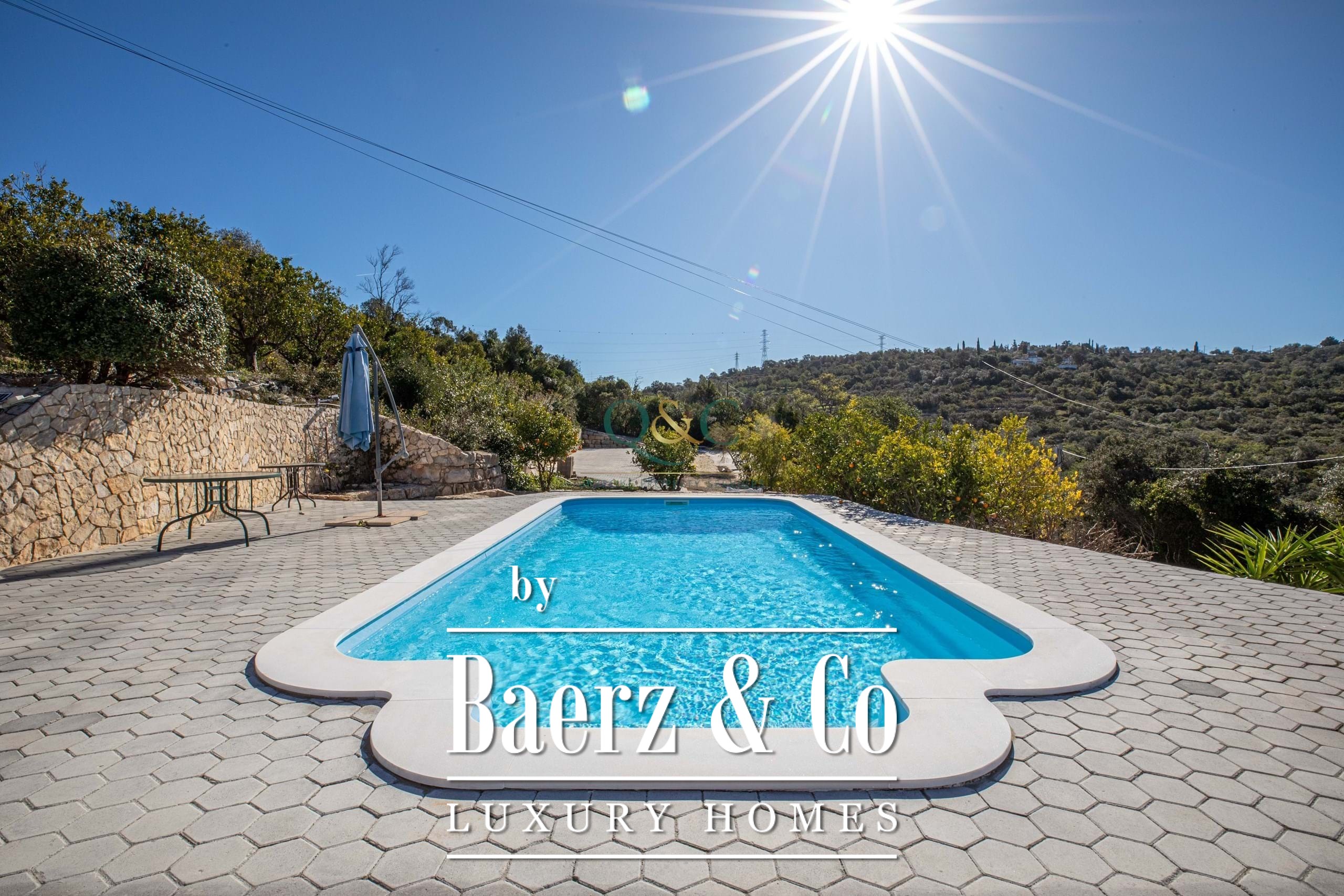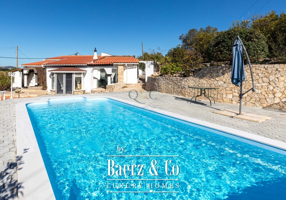 Outdoors, the 7,560 m² plot is thoughtfully landscaped, with citrus trees, newly built terraces, and a saltwater pool creating multiple zones for relaxation and entertaining. An external kitchen area and barbecue extend the possibilities for alfresco living. Privacy is preserved by a designated natural area, and the grounds are serviced by a private well and shared borehole, automatic irrigation, and double gated access. Positioned within easy reach of Estoi, São Brás de Alportel, and Faro, and just fifteen minutes from the coast and international airport, this villa balances rural calm with essential connections. Detached villa Estoi offers a rare invitation to experience Algarve life with both seclusion and convenience.