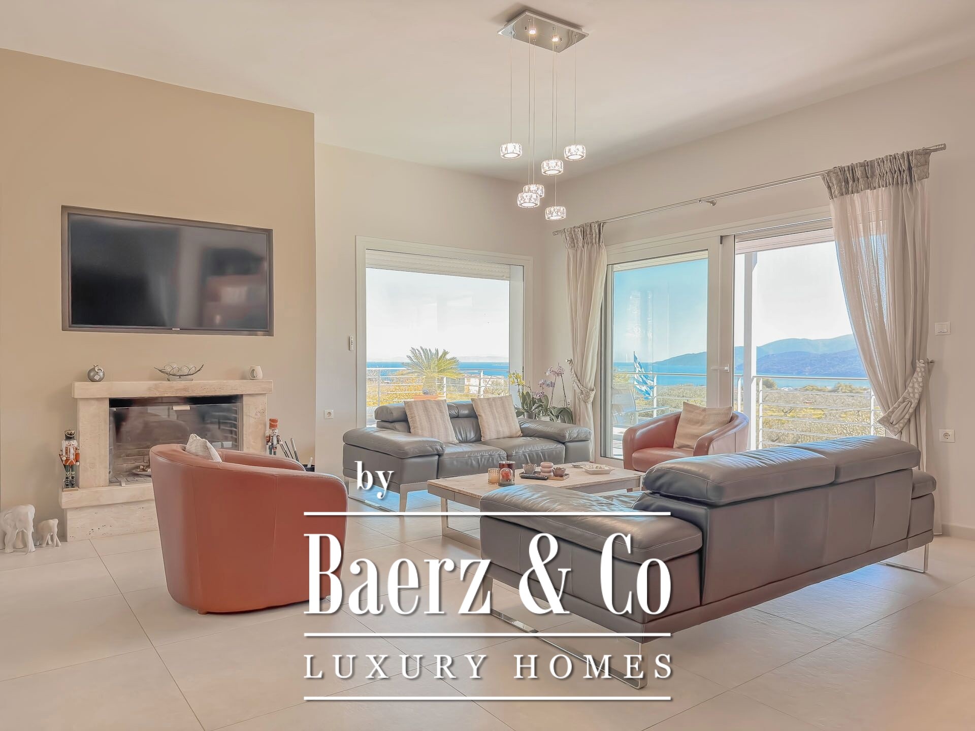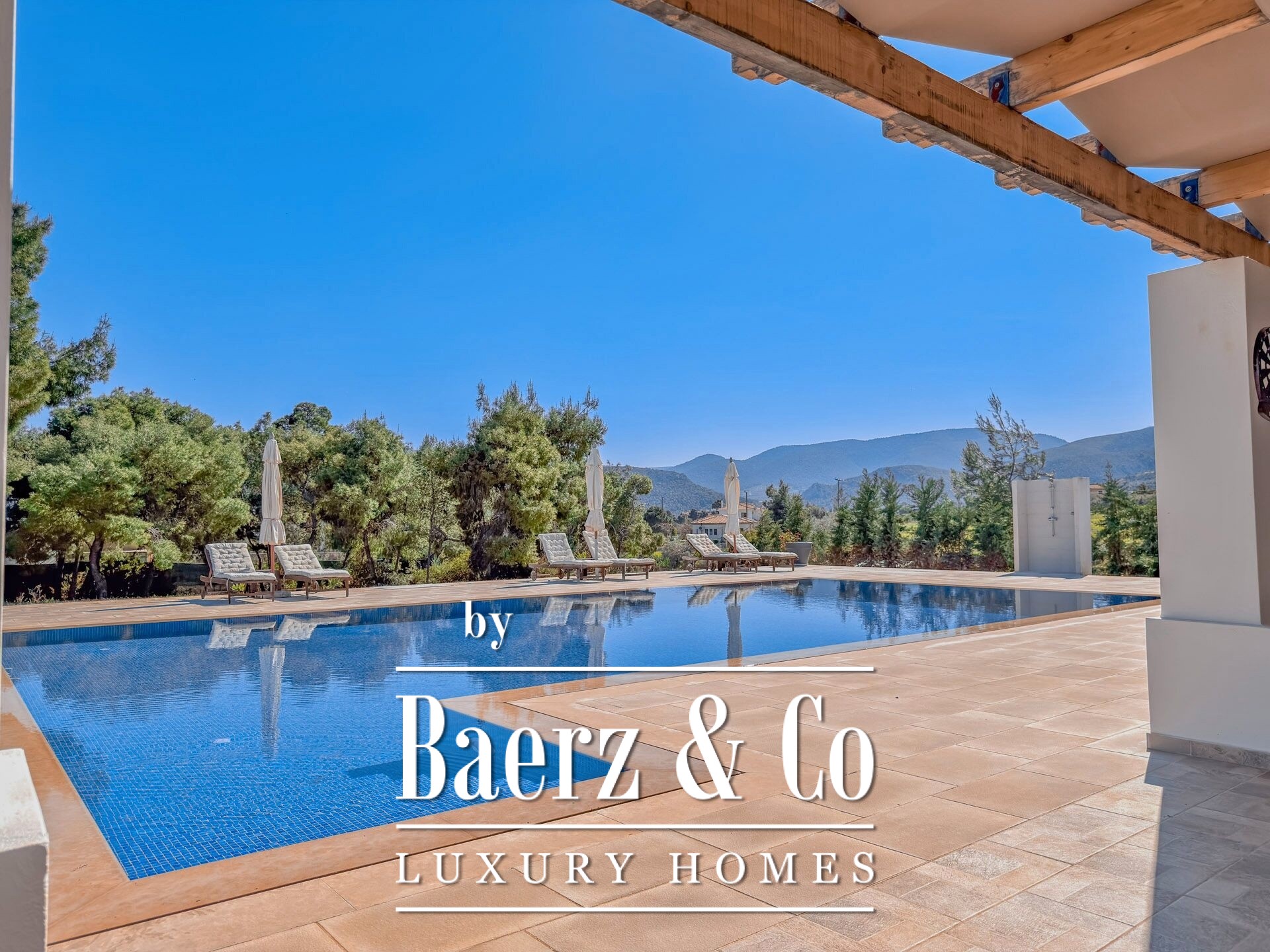 Luxury villa Galataki stands as a refined example of contemporary living, blending mature structure with the renewed elegance brought by a full renovation in 2022. This 360 m² villa, set within a 10,000 m² fenced plot, delivers total privacy and unobstructed views of the Saronic Gulf. The property is designed across two independent levels, each fully equipped, offering remarkable flexibility for multi-generational living or professional accommodation.