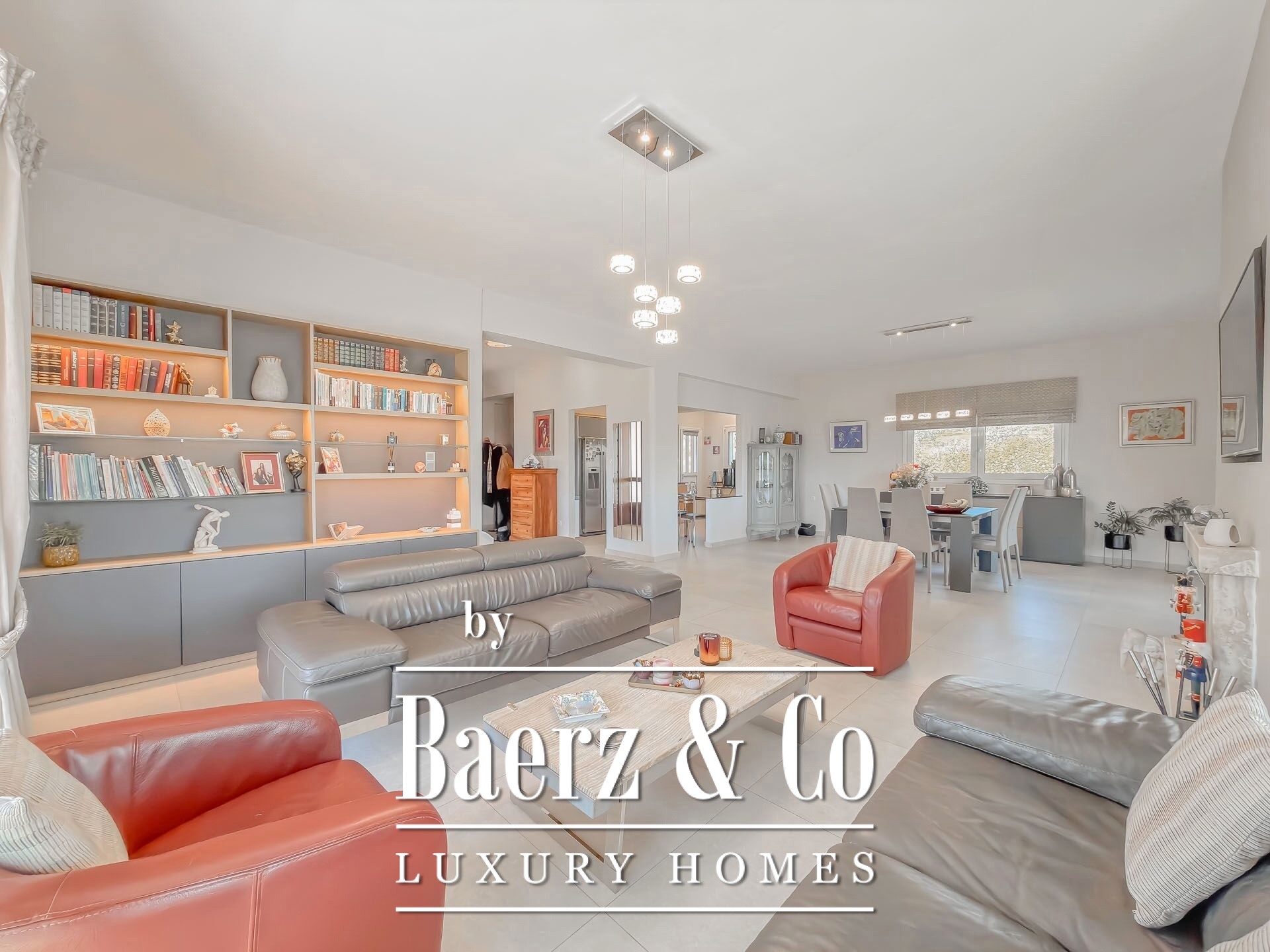 The villa presents eight rooms, five bathrooms, and dual full kitchens, each level anchored by its own living room and fireplace. Crafted for comfort and functionality, the ground floor comes fully furnished, while the first floor is partially furnished and features expansive balconies for immersive sea and mountain vistas. Outdoor living is elevated by a 78 m² swimming pool, a covered BBQ and outdoor kitchen, spaces for wellness, and ample secure parking.