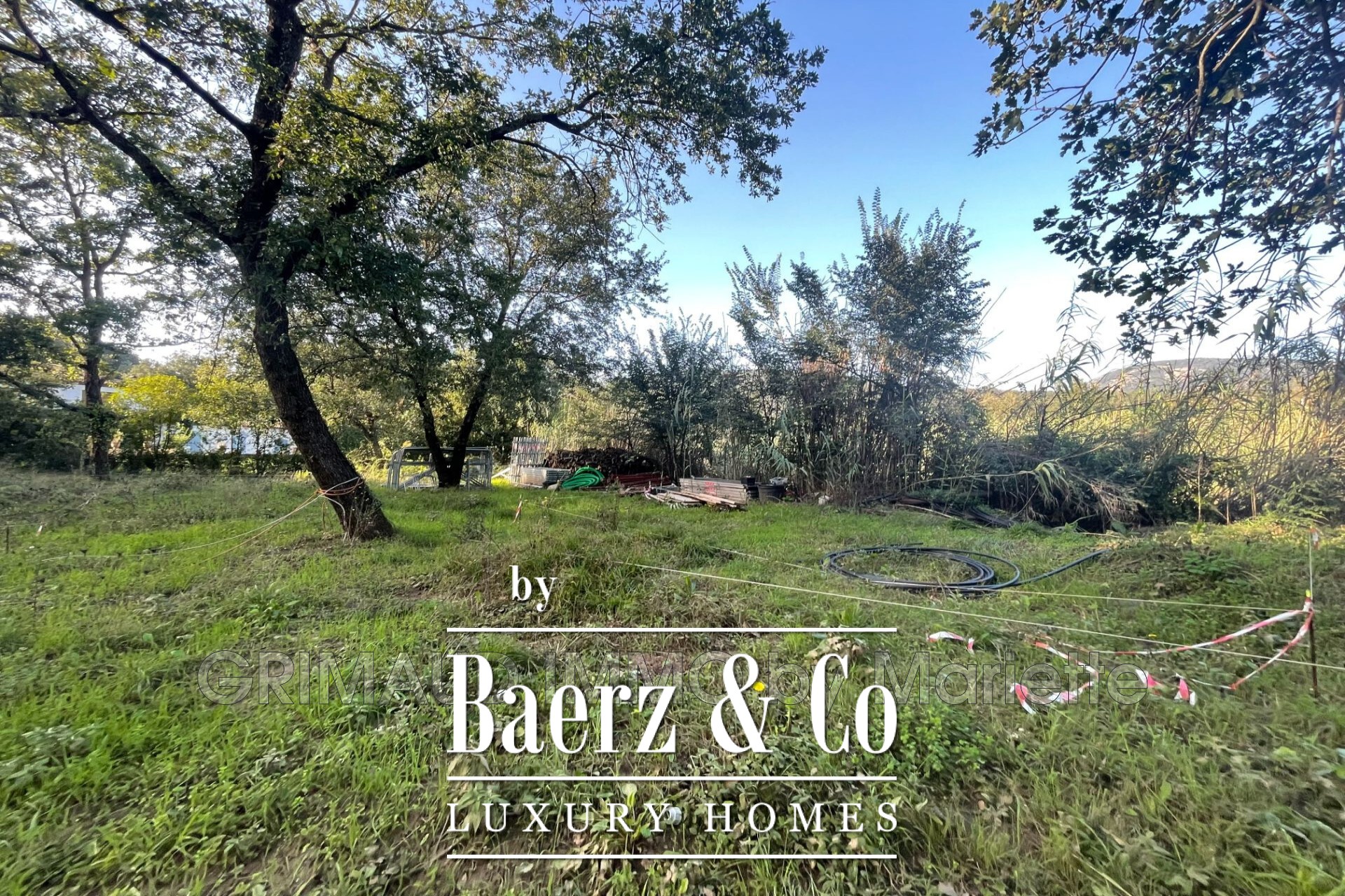 Near the village of Grimaud, just 10 minutes from the beaches, a flat building plot with an approved permit and utility connections in place. Located within a secure estate