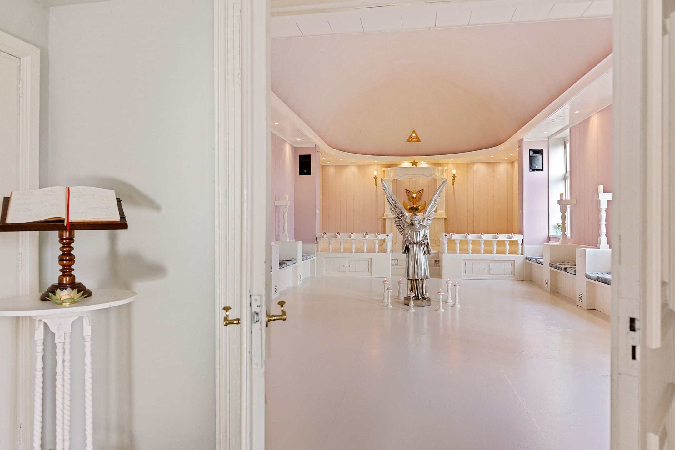 On the opposite side is the impressive lodge hall a lofty vaulted space with large windows and a podium. A versatile place perfectly suited for gatherings, music or yoga studio, workspace, gallery or additional living space. This lodge hall is heated by a closed hot air system the remaining living areas by radiators.