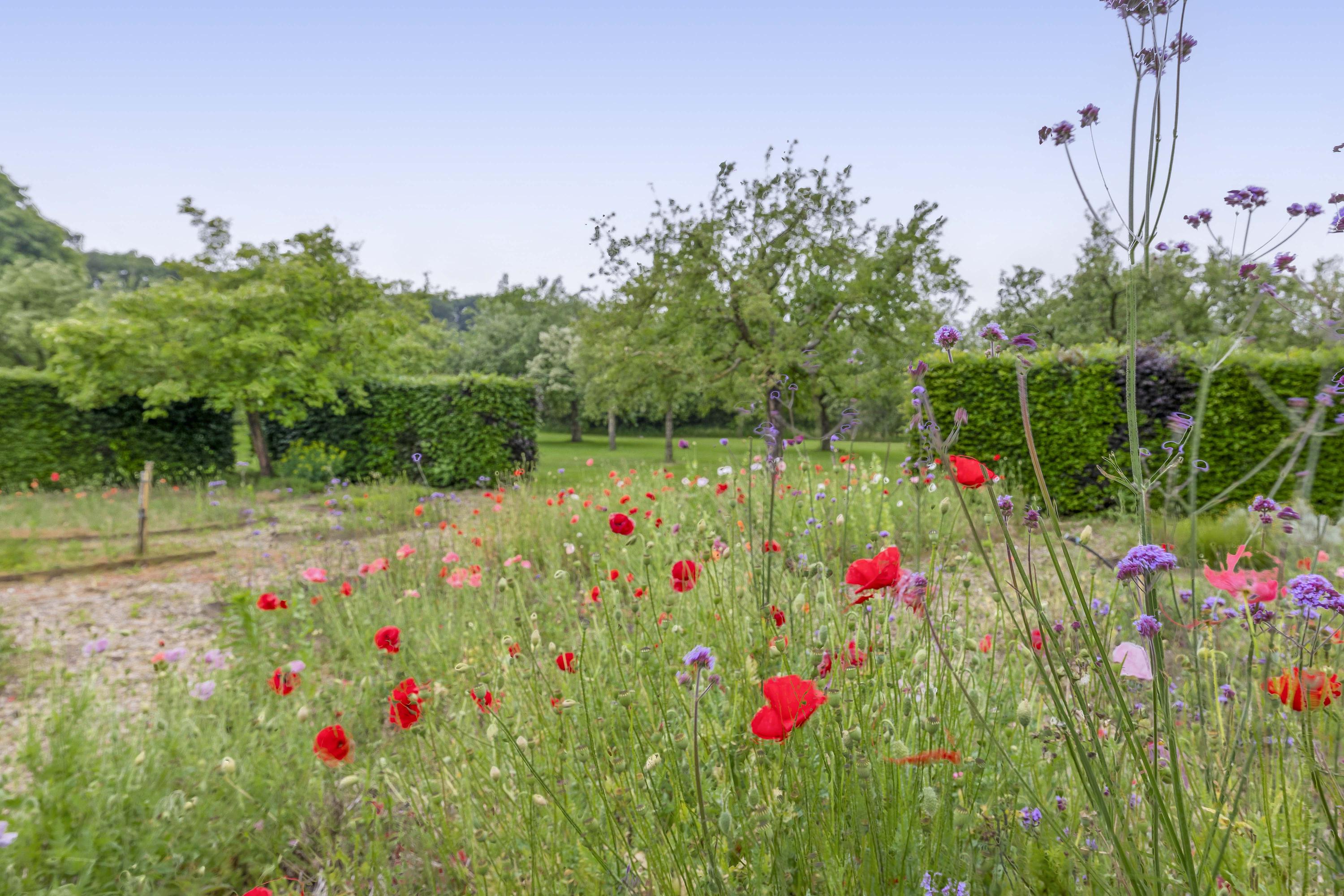 of the garden – a soothing spectacle that impresses all year round. Explore the garden via various paths and discover something new around every corner: from stately hedges to shady trees, a herb garden, a field of sunflowers with a stork's nest and a helicopter tip, and various borders. Enjoy the lawn, a beautiful willow lane, apple tree lane, water features, pear arbour, wisteria arbour and playful borders that together create an idyllic atmosphere.