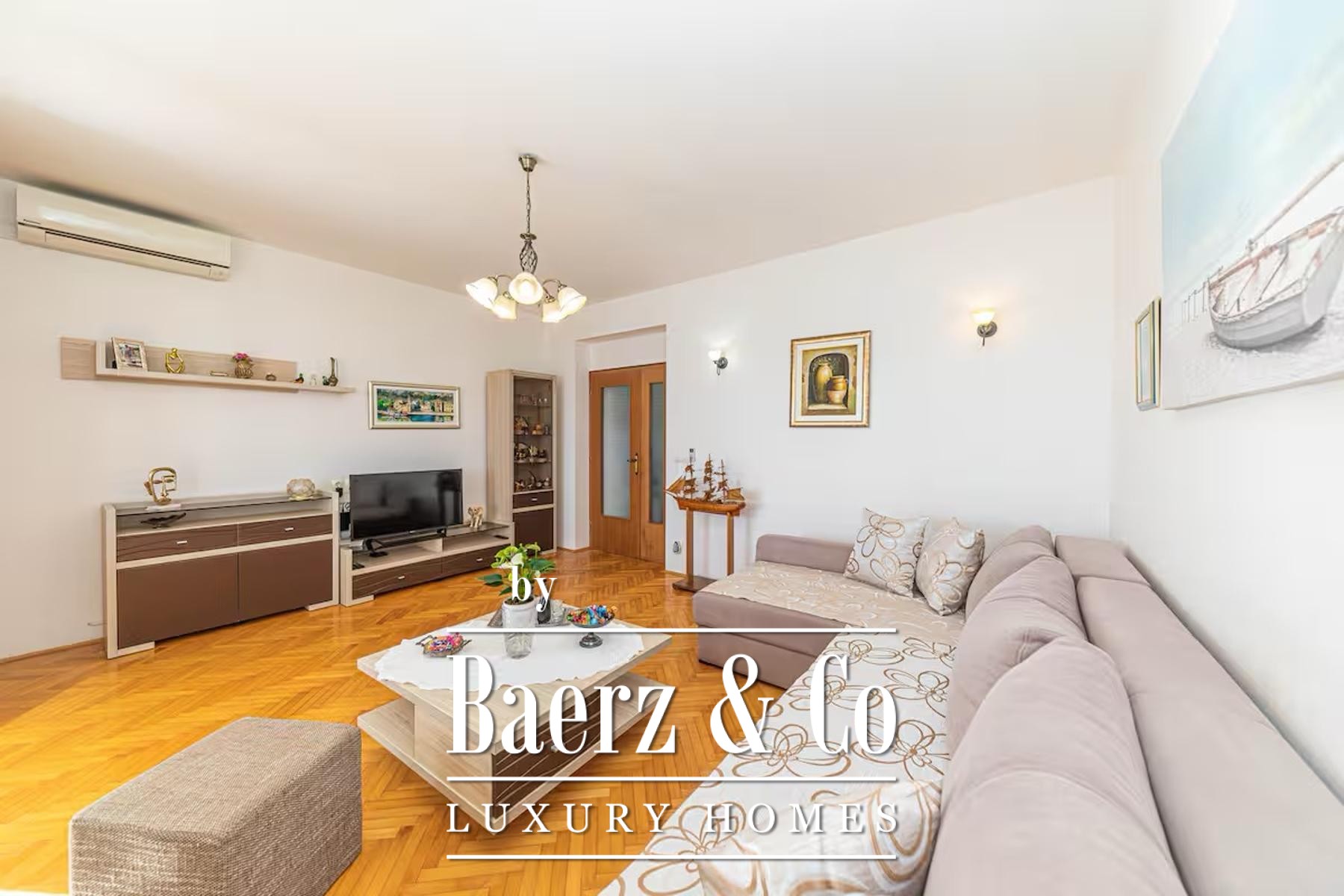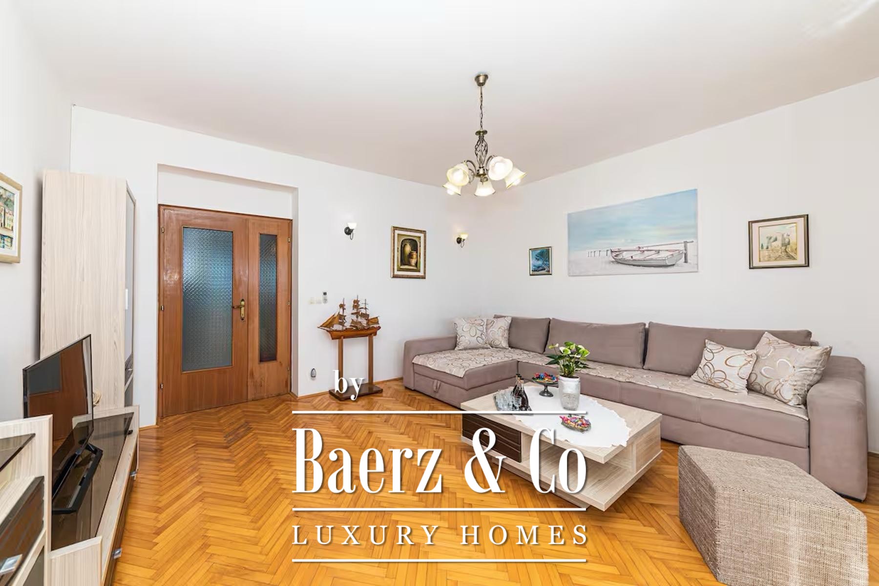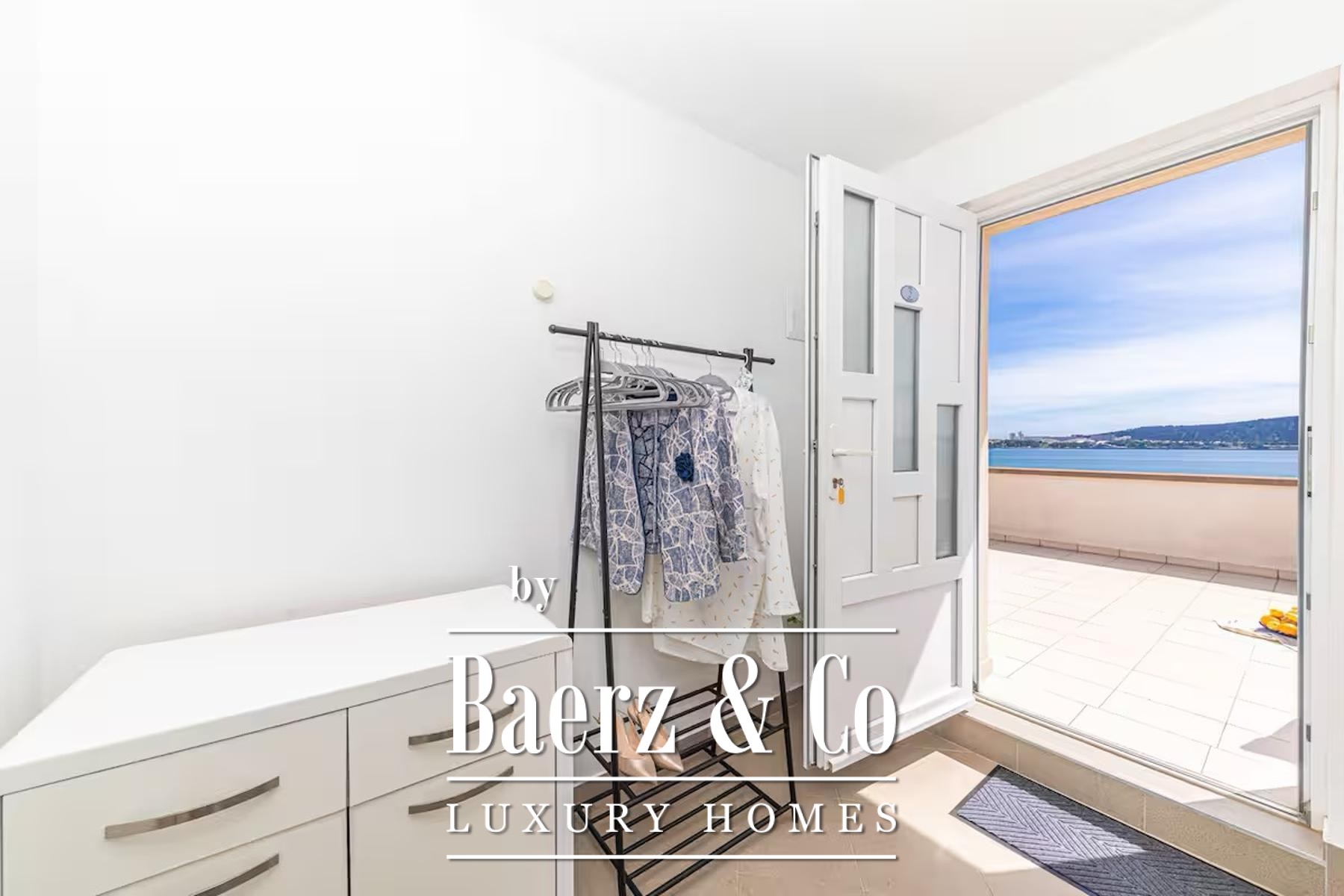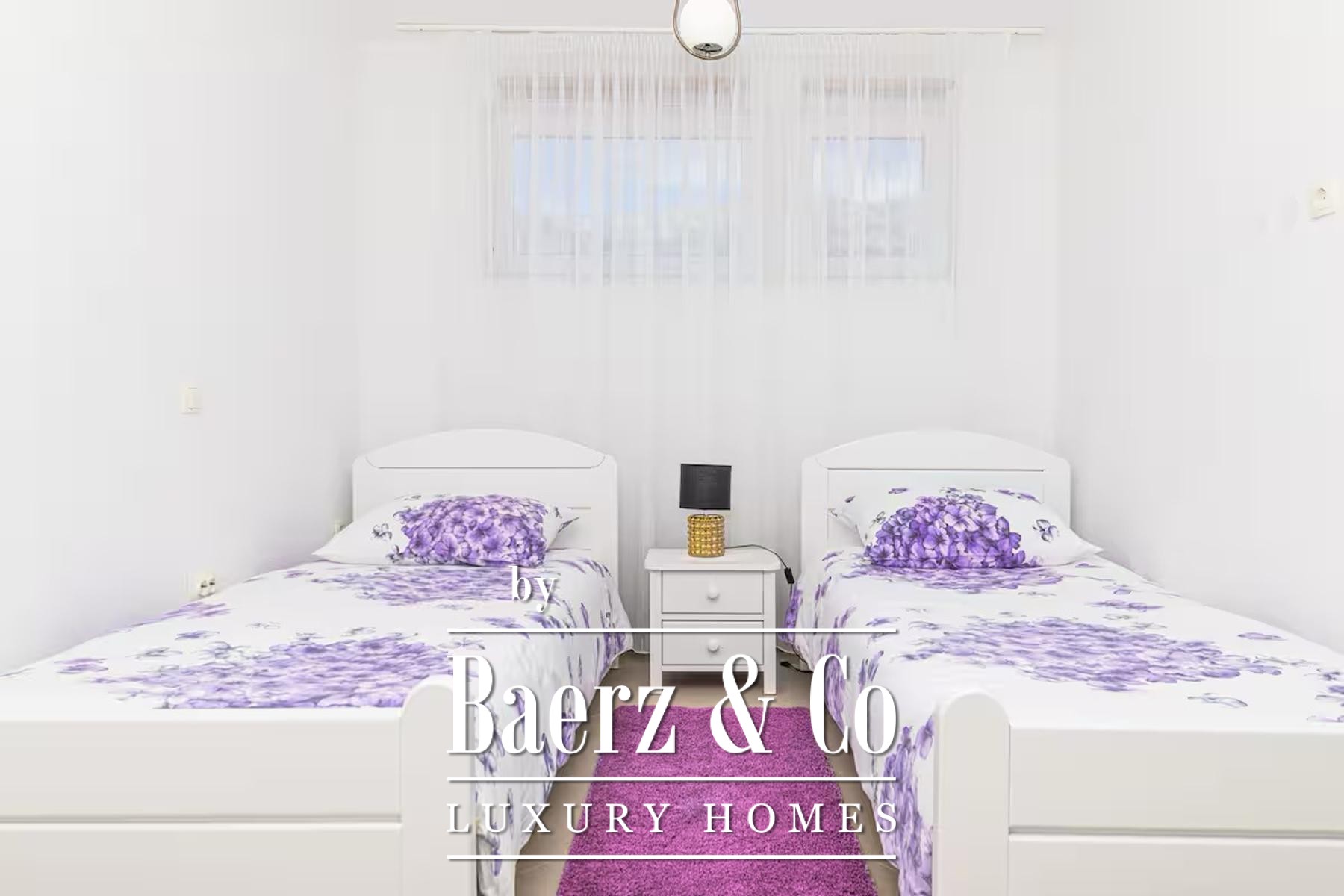 The ground floor unfolds into three bedrooms, two bathrooms, and a light-filled living and dining area, complemented by a kitchen that leads seamlessly onto a large terrace meant for social gatherings. Tall glazed doors and air conditioning in all rooms emphasize comfort throughout changing seasons. Upstairs, a two-bedroom apartment stretches over 88 m² and awaits a final creative vision, while the top floor holds two studio apartments—each accessing a sweeping shared terrace with captivating vistas over the sea, Marjan, and Čiovo.