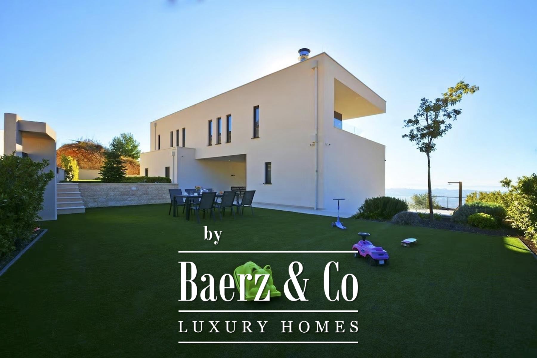 The first floor offers four bedrooms and two bathrooms, each room with access to a balcony and an expansive terrace, maintaining an unbroken connection to the sea. The villa’s 900 m² plot encompasses a two-car garage, additional private parking for four vehicles, and a beautifully landscaped courtyard.
