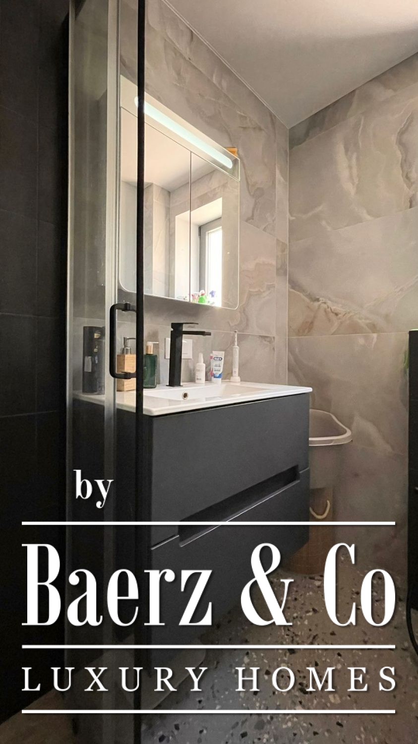 Air conditioning in the living area and master suite, underfloor heating in bathrooms and kitchen, and shockproof panoramic windows enhance both comfort and security. The grounds provide parking, a landscaped terrace, and the opportunity to tailor options such as a swimming pool or gym to individual preference, making this luxury townhouse for sale in Kotor adaptable to a discerning owner’s vision.
