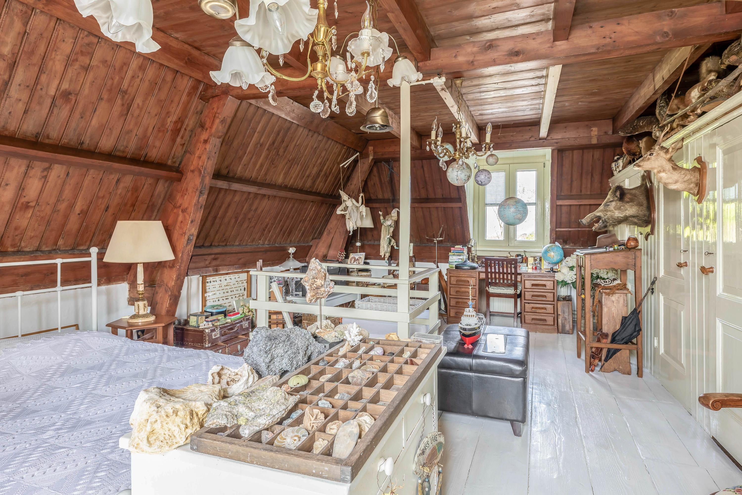 The second floor features a large, atmospheric attic room with new windows.