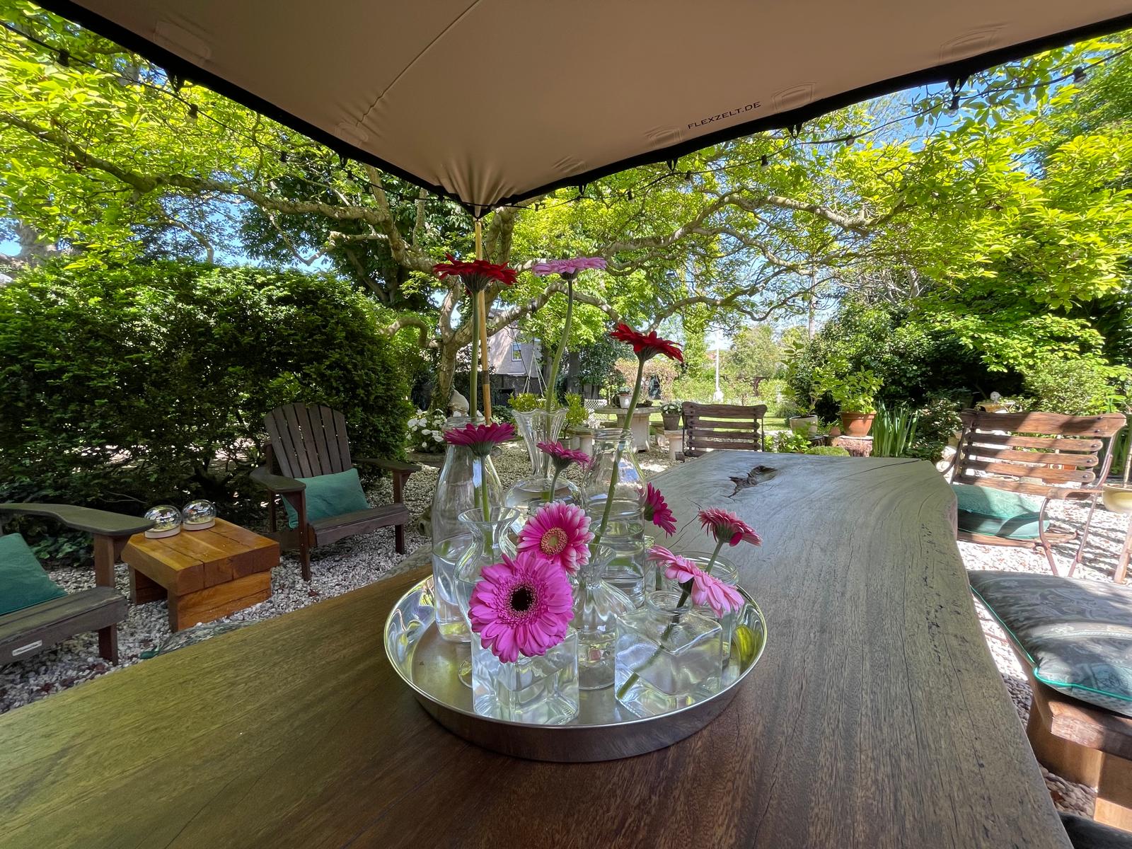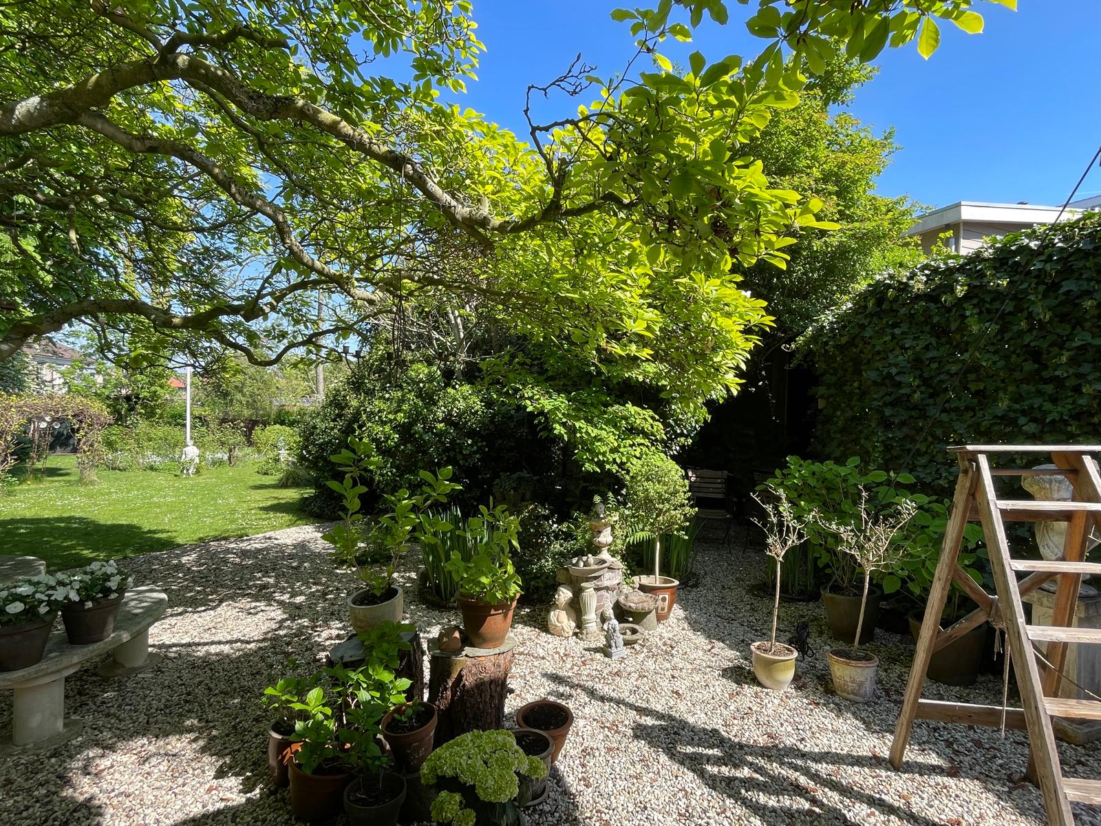 Characterful chestnut trees, winding gravel paths, a pond, and several terraces create a unique experience.
