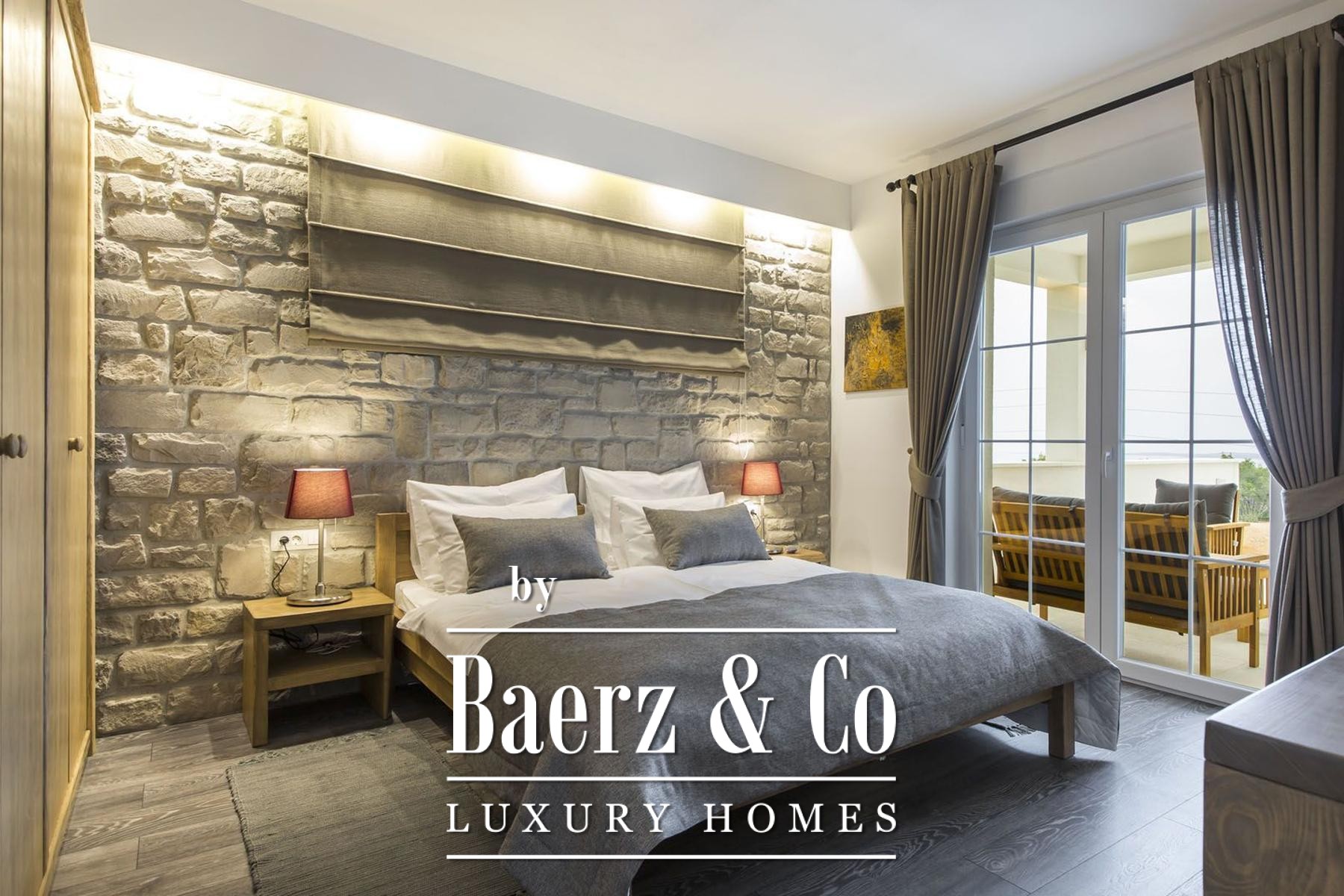 In the picturesque area of Labin on the southeastern coast of the Istrian peninsula, this unique villa is located. Surrounded by greenery and with a breathtaking view of the surroundings and the Adriatic Sea, this modern villa with its 240 m2 of living space is suitable for living in a peaceful climate.It extends over two floors and has 4 beautiful airy bedrooms, each of which is equipped with a handmade double bed, Smart TV and air conditioning. Each bedroom also has its own en-suite bathroom with a walk-in shower. All bathrooms are equipped with a system for underfloor and wall heating.On the upper floor there are 3 bedrooms with bathrooms, while one bedroom with a bathroom is located on the ground floor of the villa, providing additional comfort and can be used as a guest room. Two bedrooms on the upper floor offer direct access to a beautiful terrace equipped with a comfortable seating area and deck chairs, and from which there is a view of the landscaped garden, swimming pool and surroundings.The spacious ground floor of the villa consists of an elegant kitchen equipped with top-of-the-line appliances, a dining room that can accommodate all guests, and a comfortable living room equipped with two