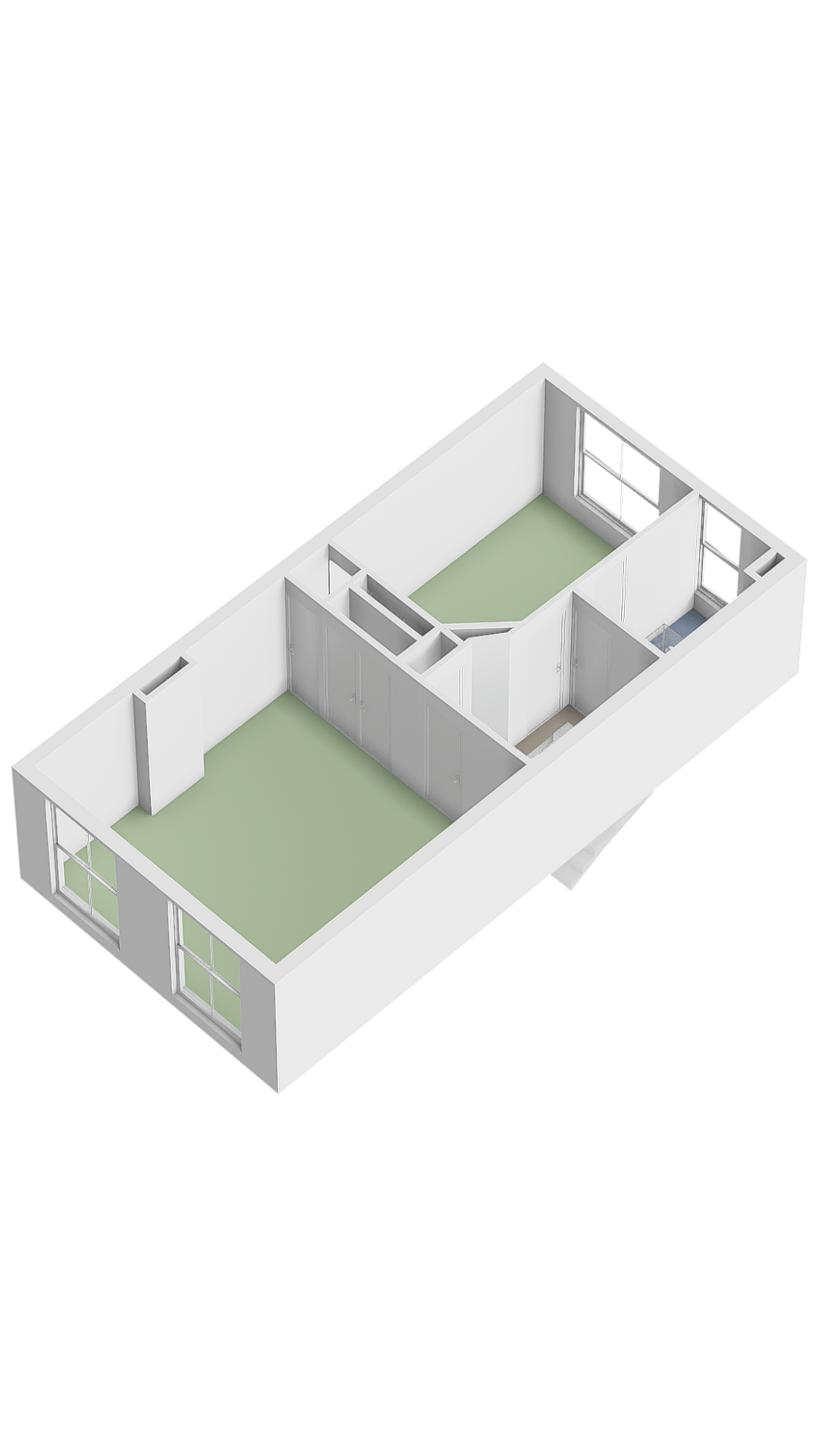 Landing with stairs to the 3rd floor. Bedroom at the front over the entire width with a view of the park and ensuite closet. At the rear are a second bedroom and bathroom with shower, bath and toilet.