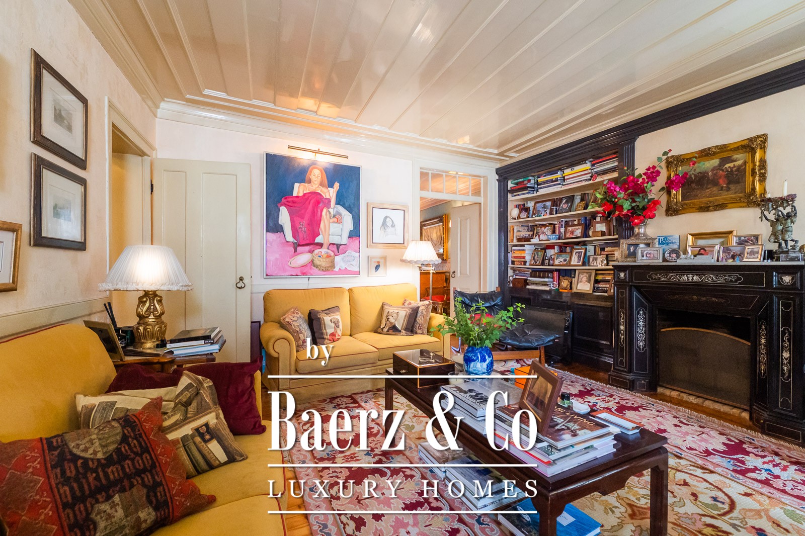 Discretion shapes each corner of this property. Six bedrooms and multiple living rooms form an adaptable spatial rhythm, while the Tudor-style kitchen, service lift, and hardwood floors reflect a thoughtful attention to quality. Details such as frescoes from the Ricardo Espírito Santo Foundation and antique tiling connect each room to the district's distinctive history.