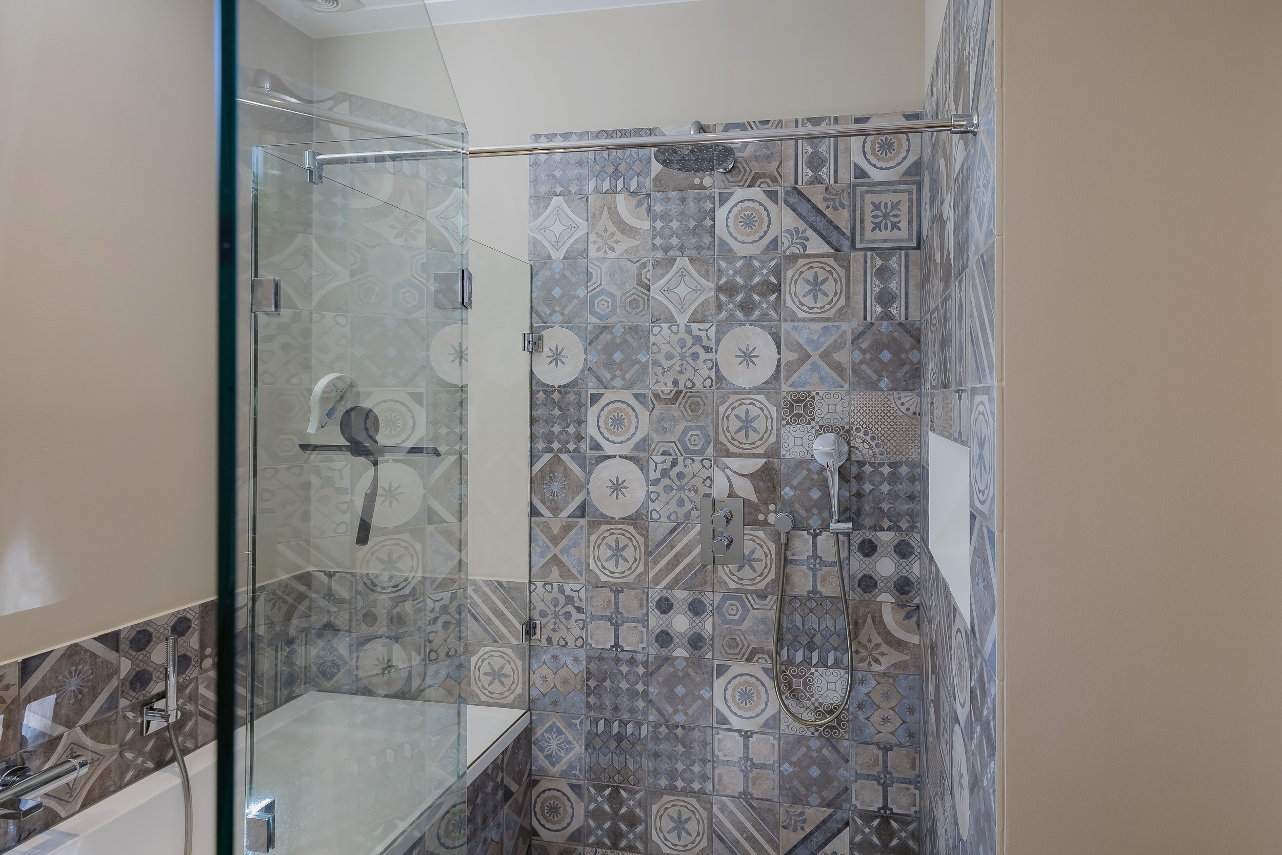 Upon arrival, an imposing high front door opens to a long hallway with an authentic granito floor, leading to a spacious living kitchen. Here, a matte white bespoke design with a wooden breakfast bar, integrated appliances, and a wine refrigerator brings the heart of the home to life, complemented by a gas fireplace and French doors opening onto the sun-filled garden. Adjacent, a formal sitting room and a flexible upstairs room, ideal for work or play, complete the ground floor experience. A beautifully realized study, original cell preserved, and a large indoor garage further enhance everyday functions.
