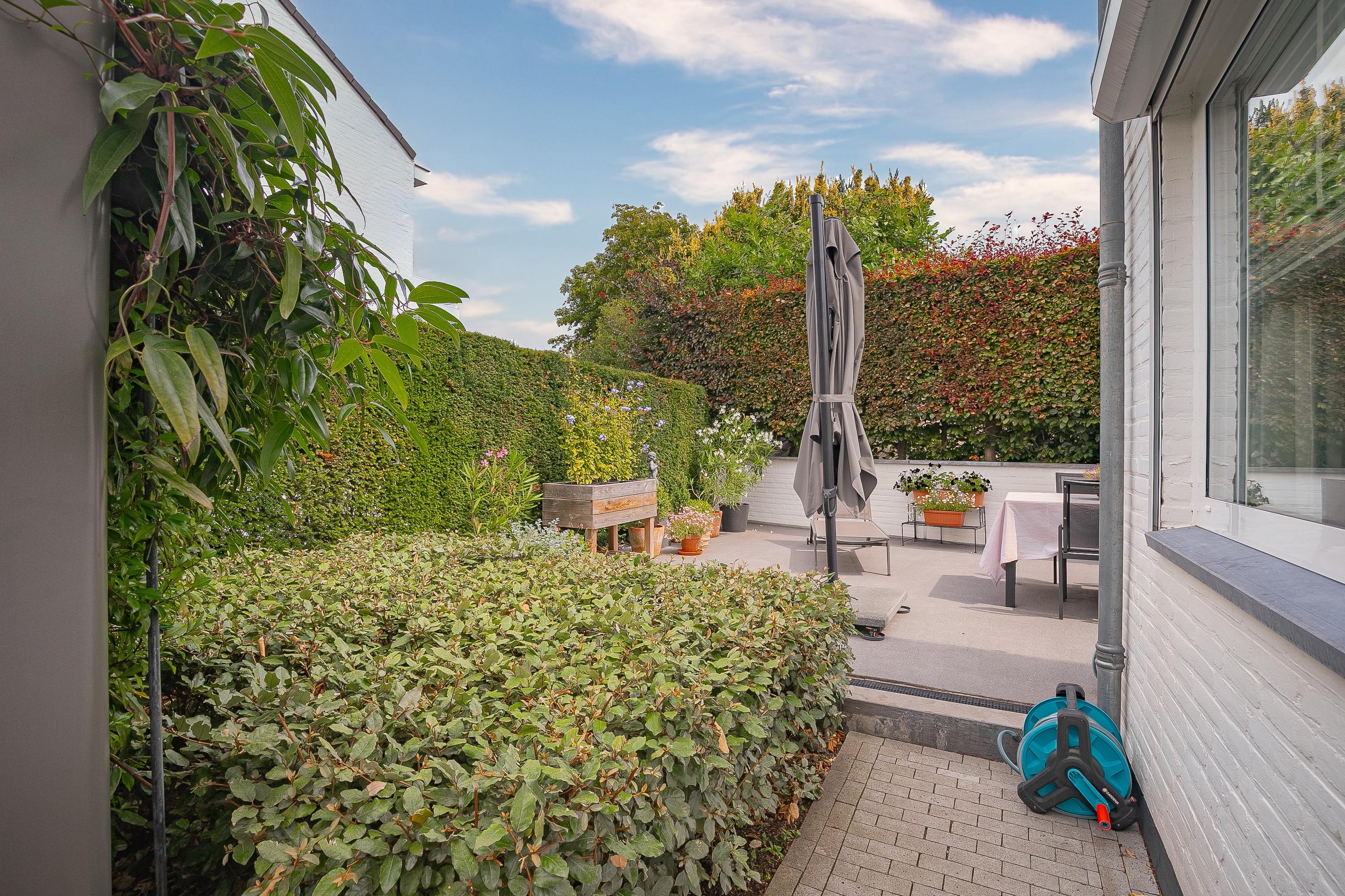 The beautifully landscaped and enclosed city garden faces northeast and offers plenty of privacy. Thanks to the awning, the garden forms a natural extension of the living space. At the front is an attractive front garden with evening sun. The back garden also has a practical external storage room of approx. 5.3 m². The garden also has a back entrance.
