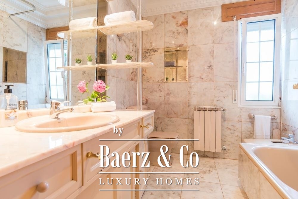 Villa Madrid El Plantío offers a rare opportunity to inhabit one of the city’s most discreet residential enclaves. Set within a private 3,105 m² plot on Madrid’s western edge, this substantial villa commands approximately 952 m² of living space organized over several levels. The focus is on architectural clarity and quality, with interiors appointed in white Macael marble and solid wood, creating a quiet sense of permanence.