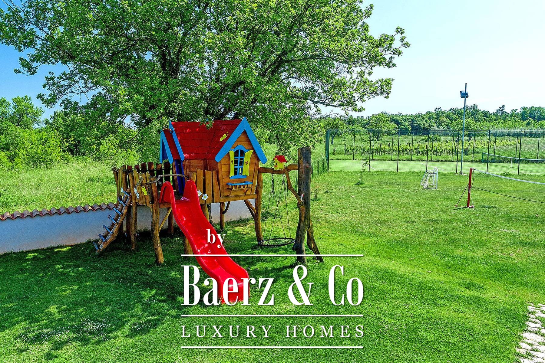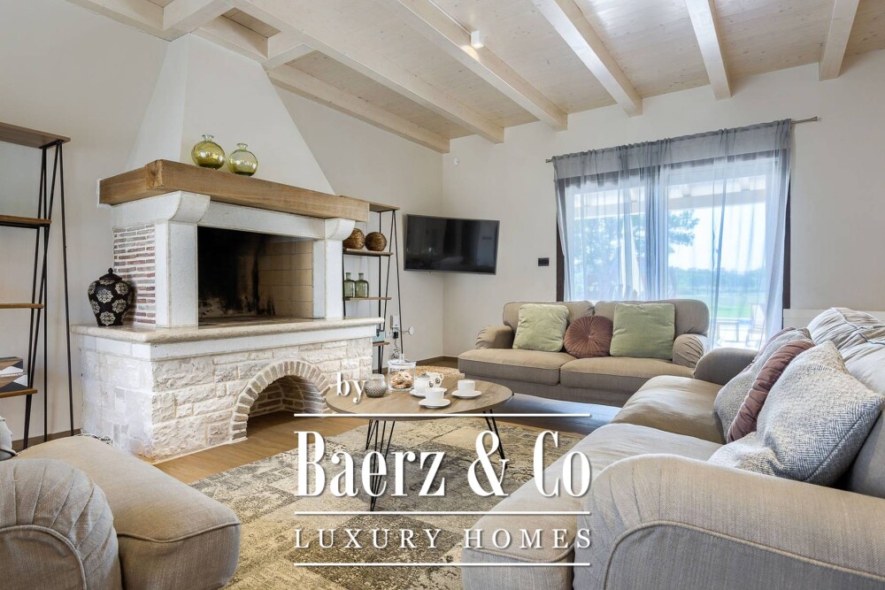 A dedicated wellness room with a sauna and heated hydromassage pool fosters relaxation after a day of activity. This villa in Marčana is close to the Adriatic coast, offering both privacy and access to the sought-after amenities and beaches of Istria. An additional 2000 m² of adjoining construction land is available for those interested in future expansion.