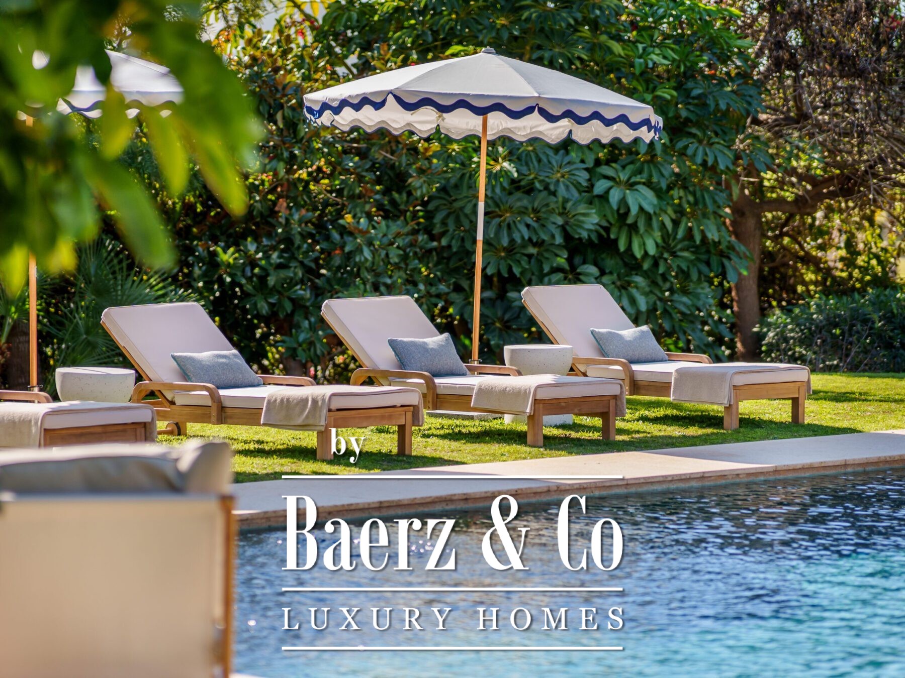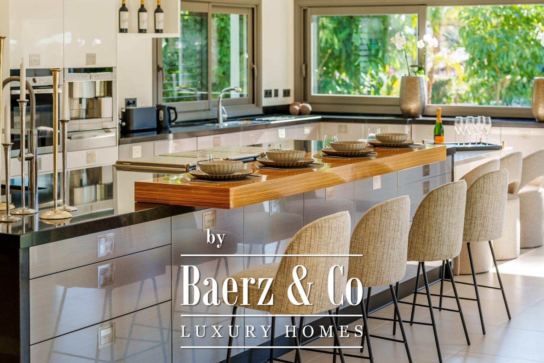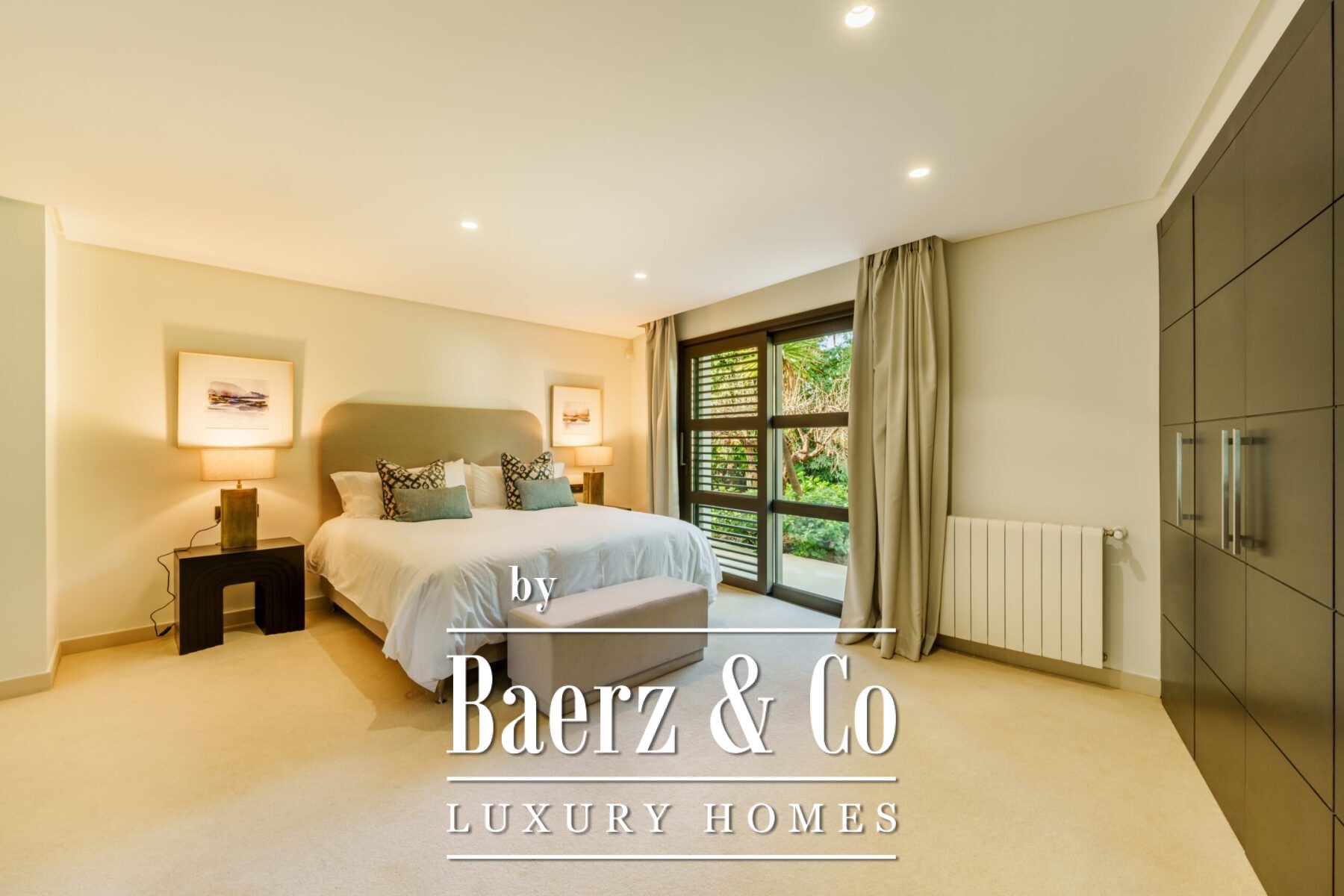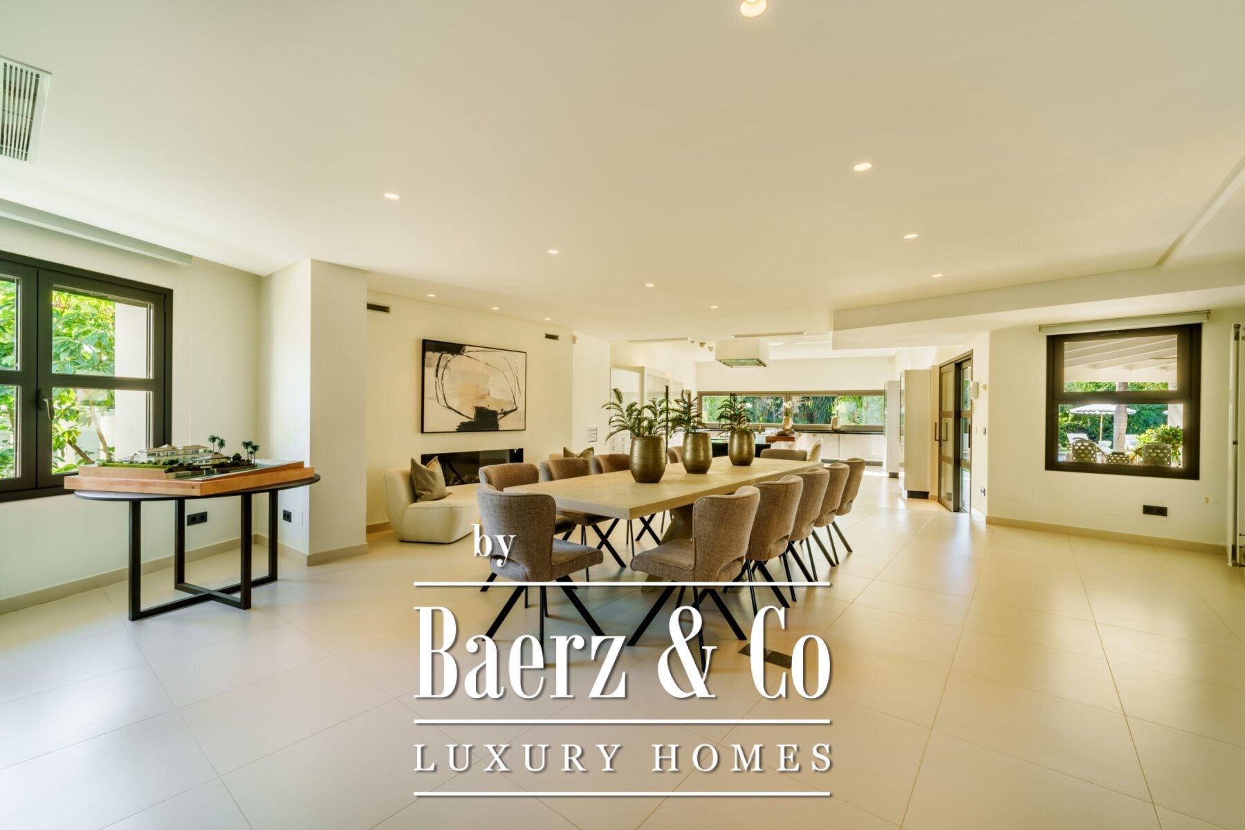 The villa offers 5 serene bedrooms and 5 bathrooms, including two spacious en-suite bedrooms with direct garden access. Additional highlights include 2 very large living rooms, a home library and home office. Additional features include a garage for up to 4 cars, a water tank, Lutron lighting, and Technal security windows, ensuring unparalleled comfort and safety in this magnificent home.