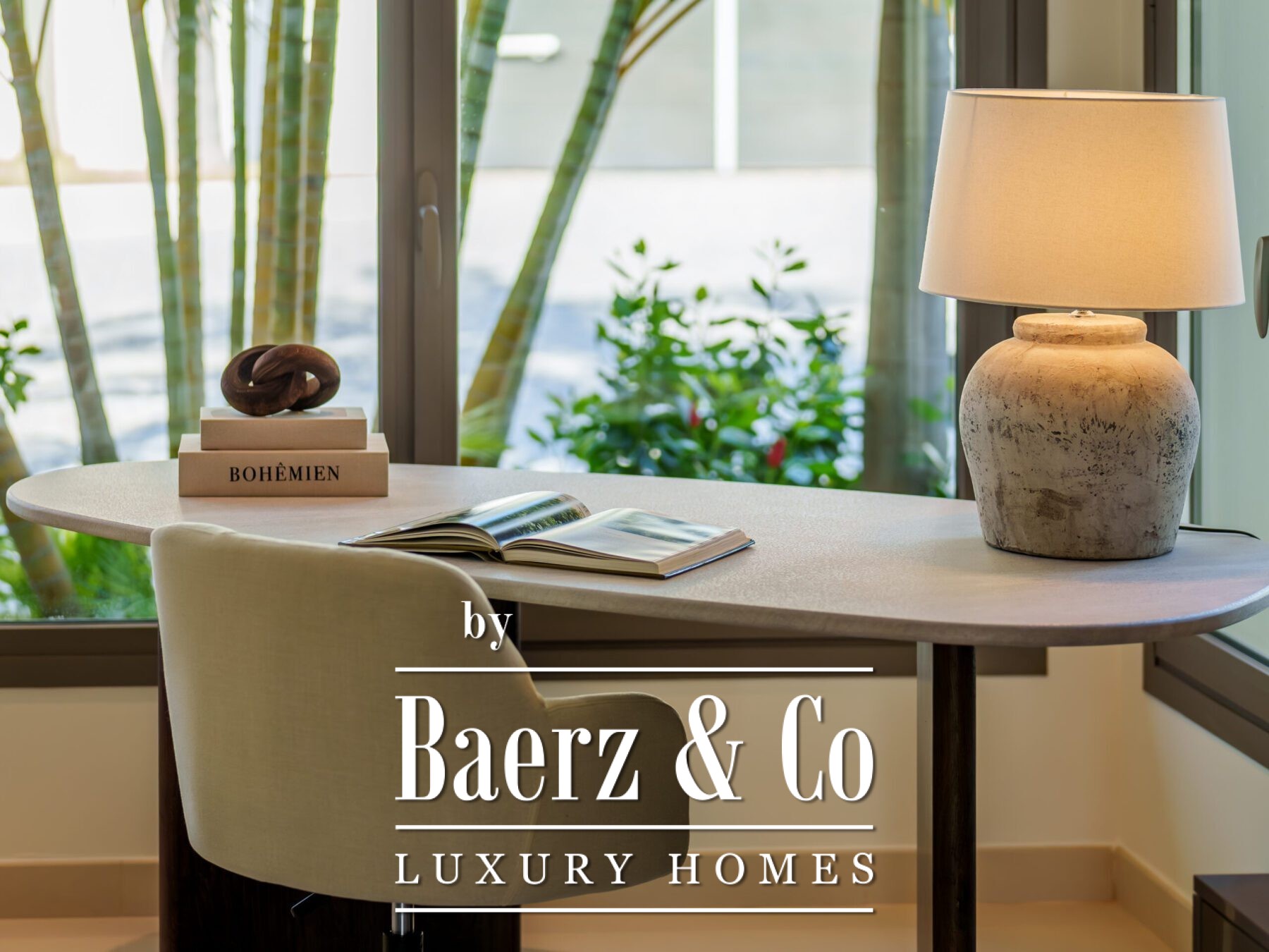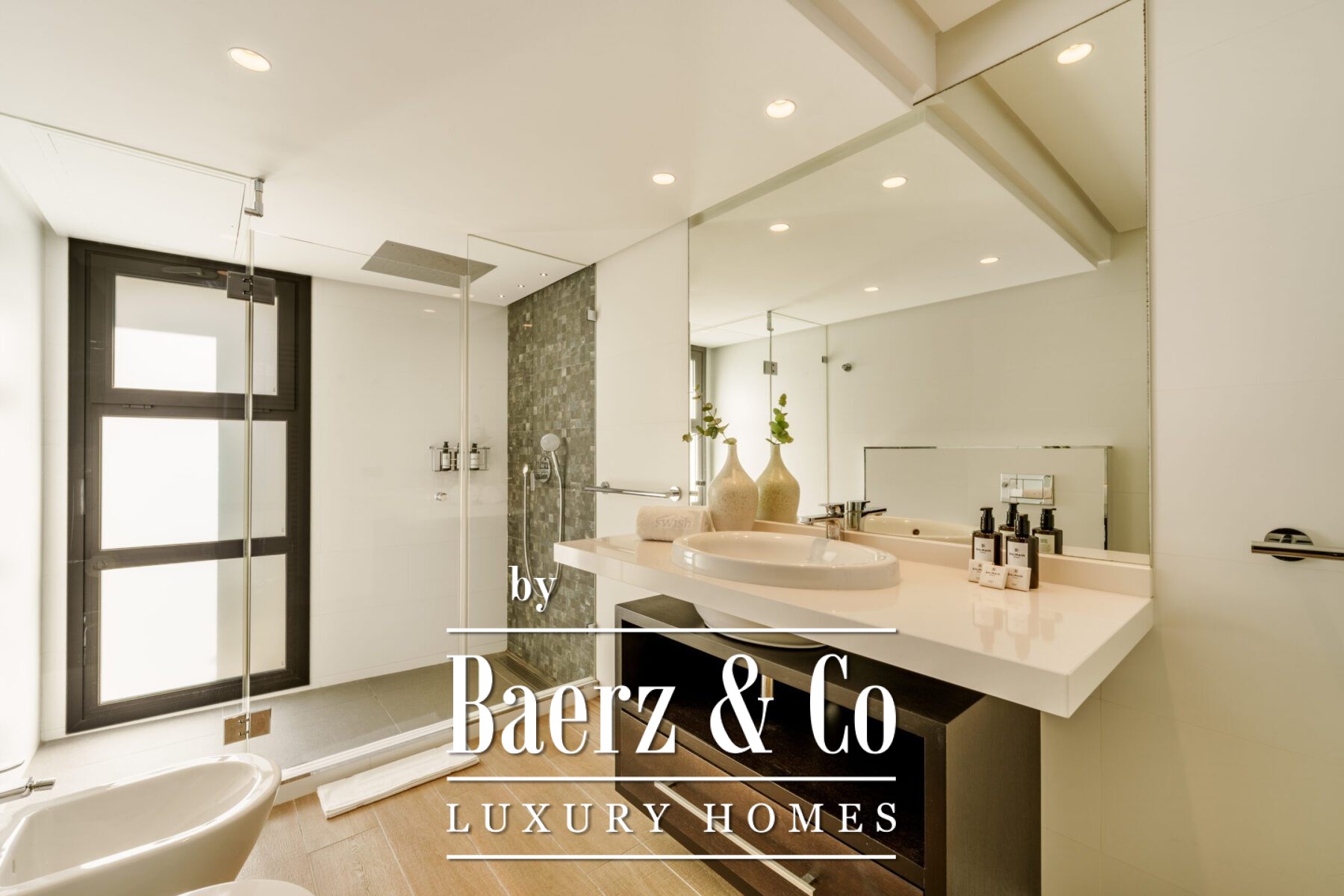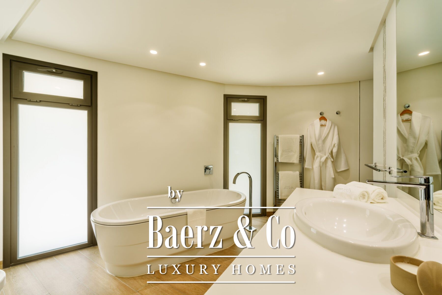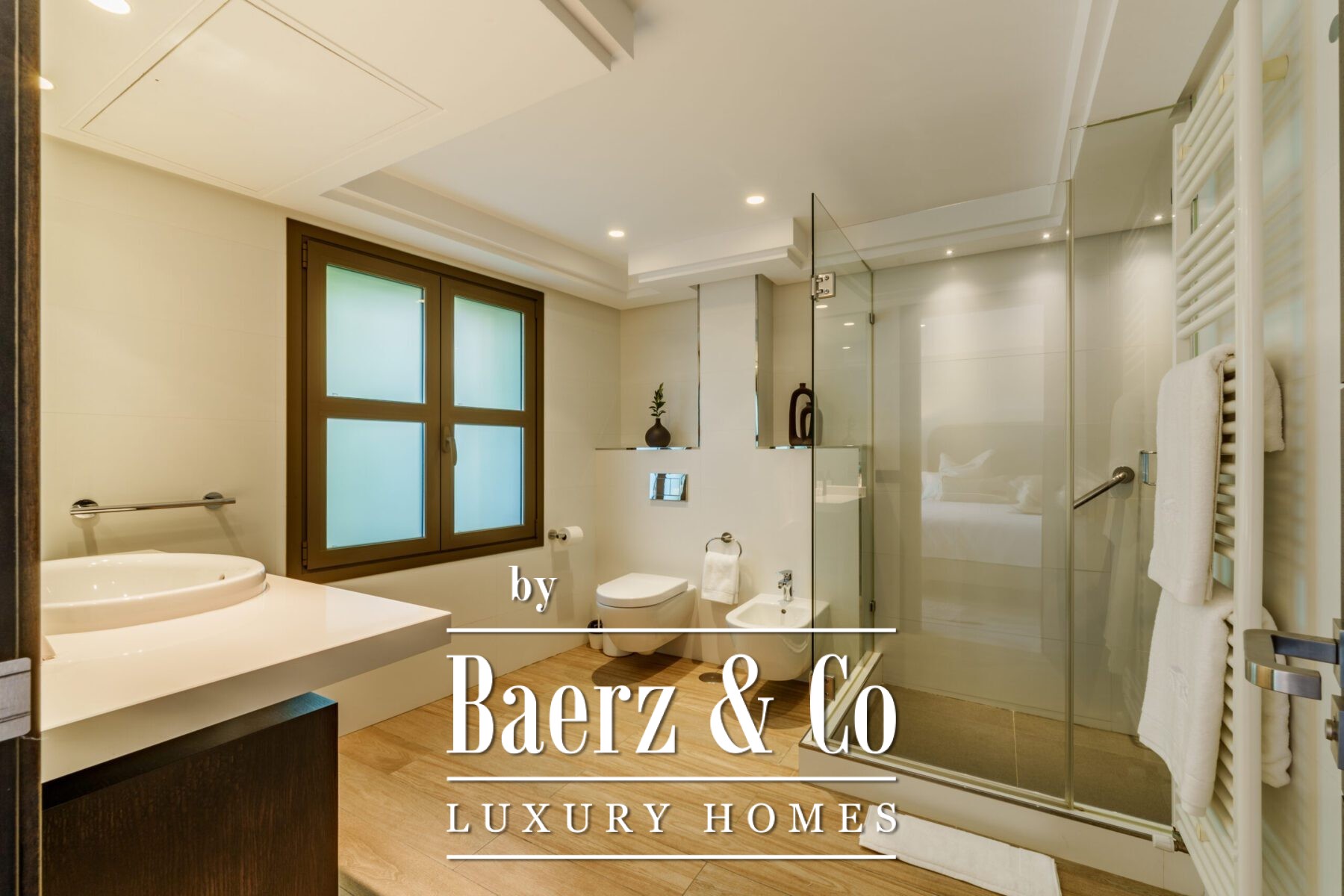 The villa offers 5 serene bedrooms and 5 bathrooms, including two spacious en-suite bedrooms with direct garden access. Additional highlights include 2 very large living rooms, a home library and home office. Additional features include a garage for up to 4 cars, a water tank, Lutron lighting, and Technal security windows, ensuring unparalleled comfort and safety in this magnificent home.
