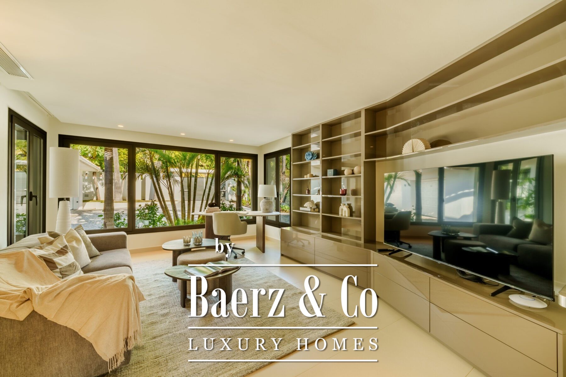 This exclusive luxury bungalow enjoys a magnificent south-facing garden, giving it privileged solar exposure and partial golf views. Its last major refurbishment took place in 2013, with the construction by the Bonifacio Solis construction company. In 2024, the villa has been carefully maintained, renovated and decorated.