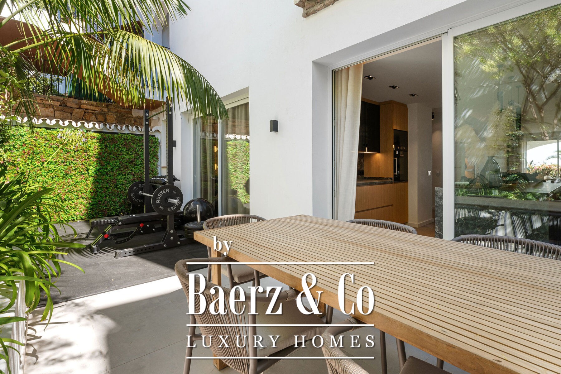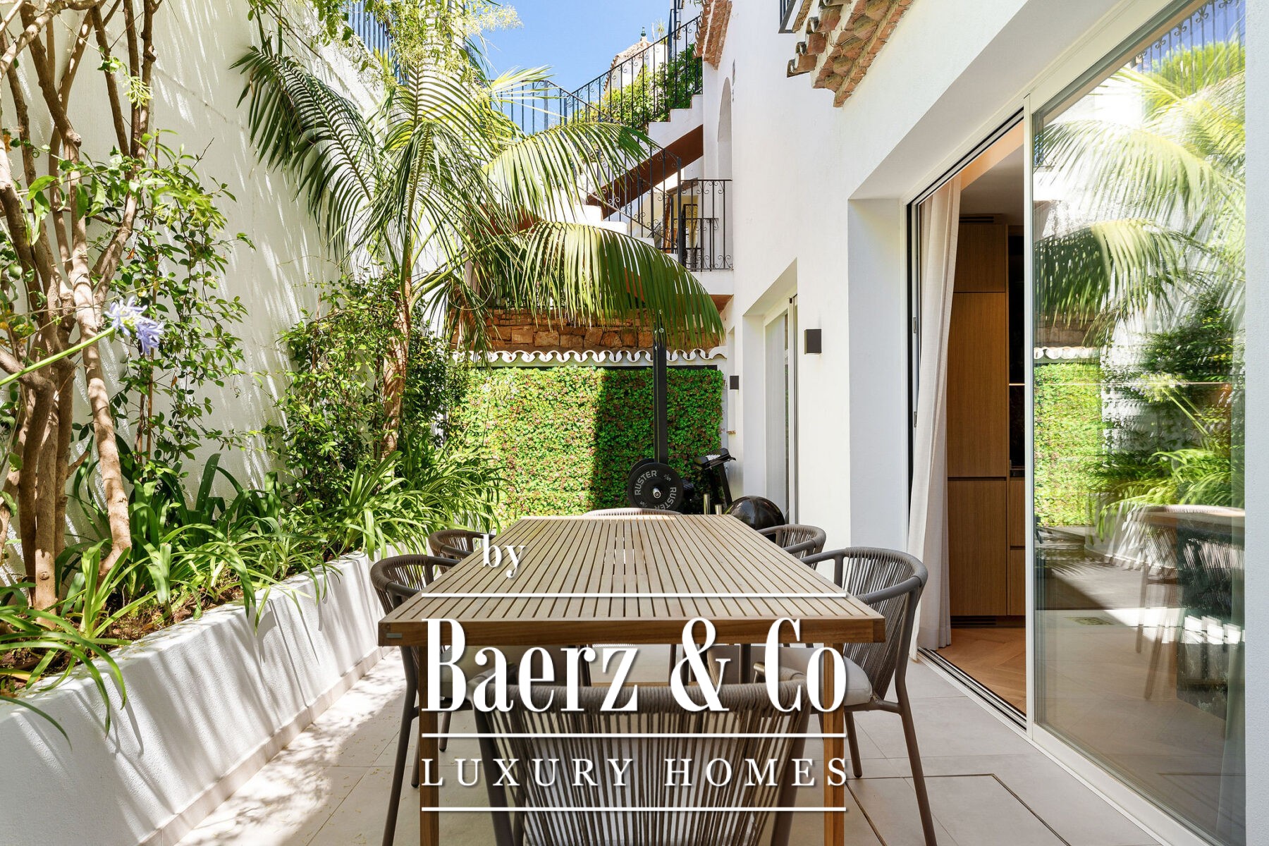 Within this renowned gated community, covered parking and storage underscore convenience. The townhouse is sold fully furnished in a modern, timeless style. Daily life is enriched by proximity to Nobu, Dani García, Puente Romano Beach Club, the Manolo Santana Racquets Club, top-tier international schools, boutiques, wellness centers, and both Marbella city center and Puerto Banús. This luxury townhouse for sale in Marbella Golden Mile is both a lasting investment and an invitation to experience design-forward living in the heart of the Costa del Sol.
