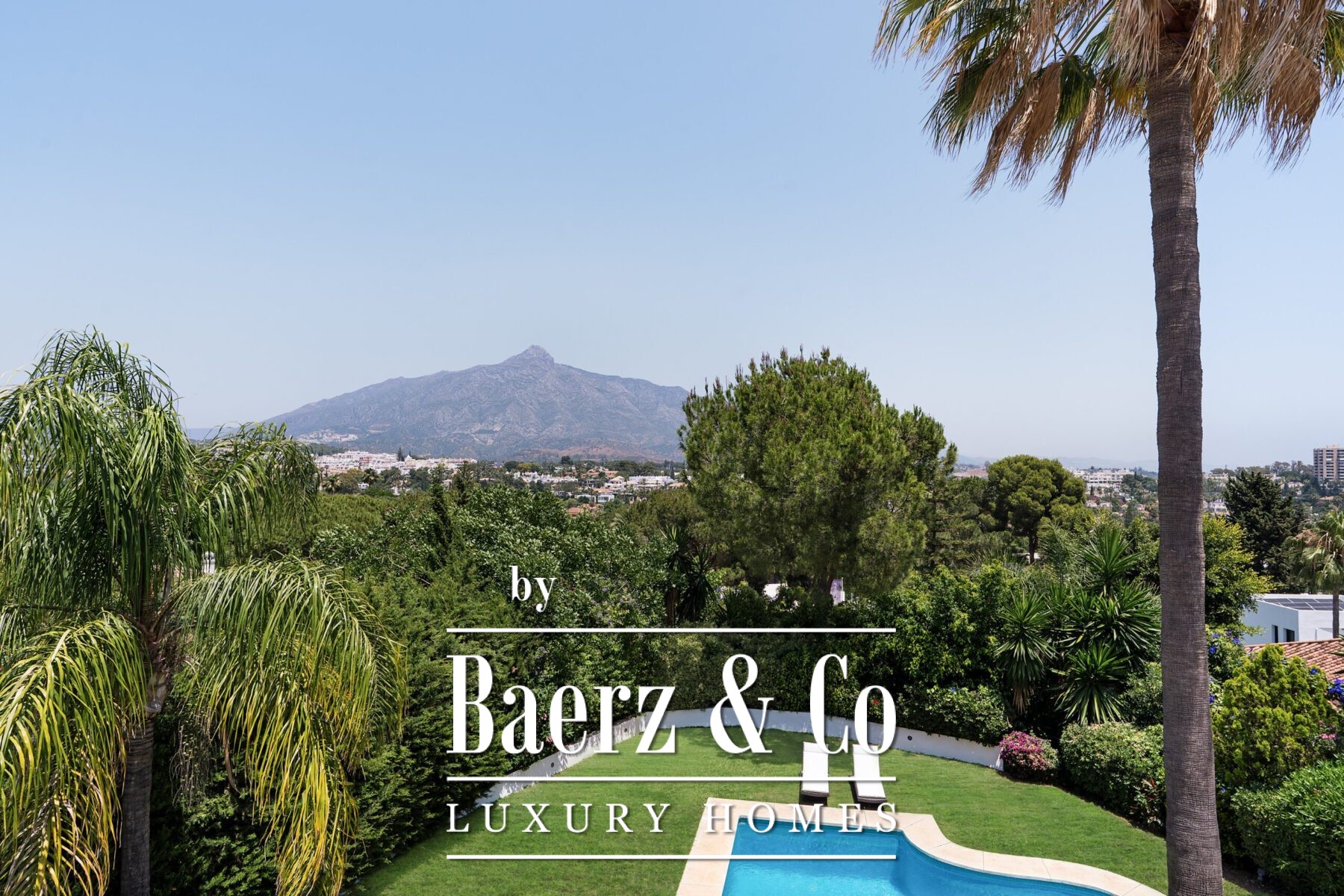 This beautiful Andalusian Villa, ideally located in the heart of the Golf Valley offers panoramic views, complete privacy and spacious practical living on a generous sized established plot. For those wanting a home with vistas, the property is blessed with mountain views from ground floor, and panoramic golf valley and mountain views from the 1st floor bedrooms. With four large bedrooms, three of which being en-suite, a practical