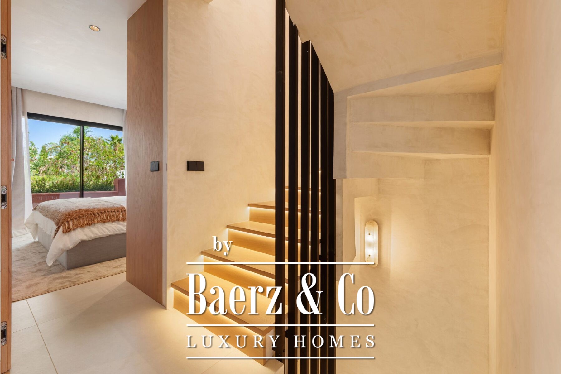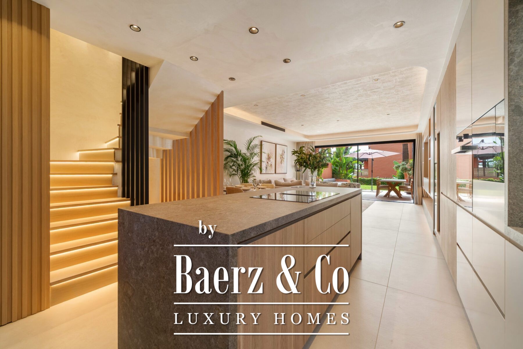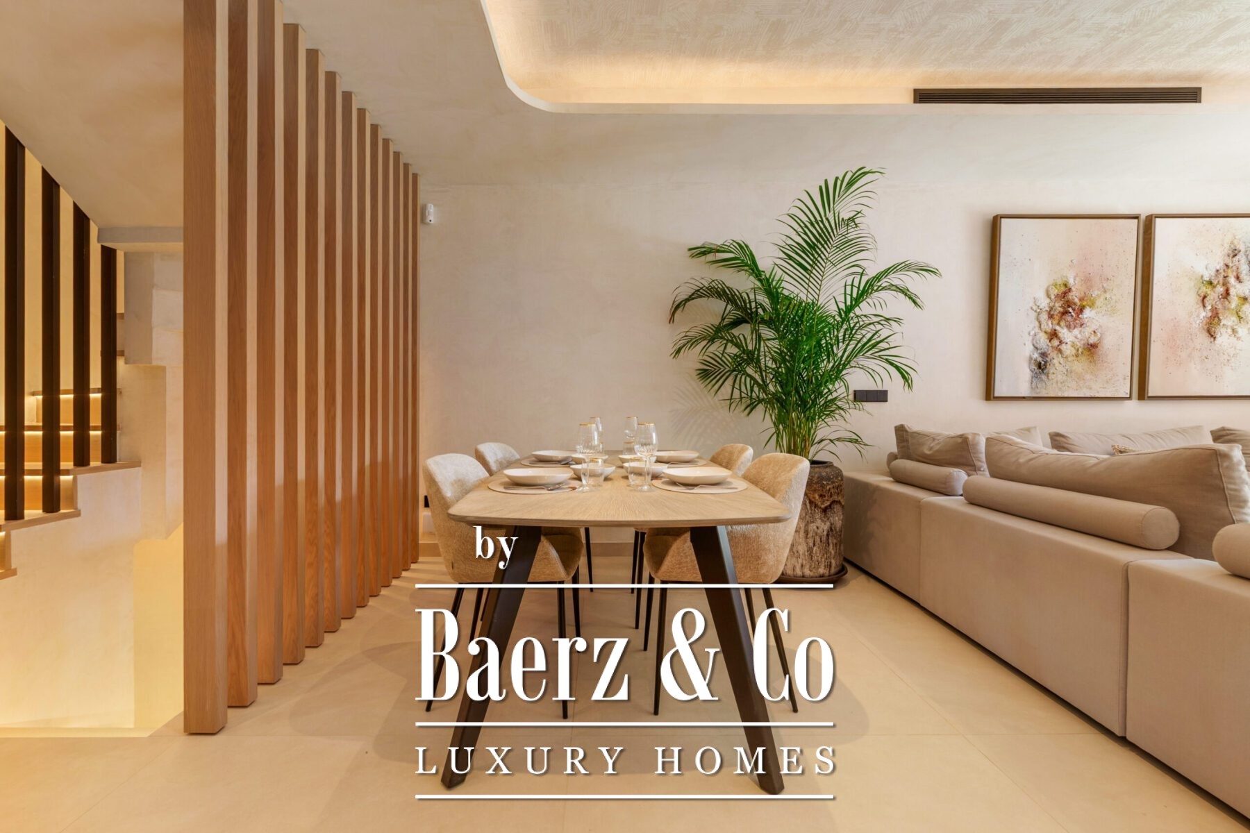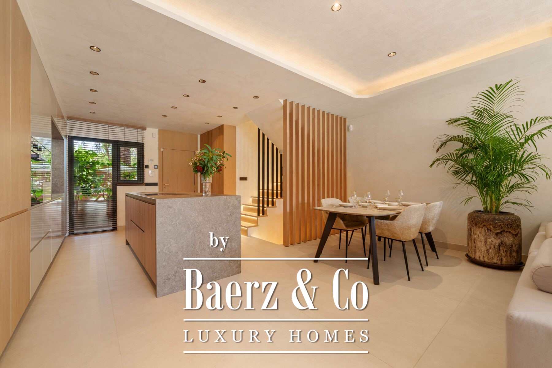 Villa Marbella Golden Mile presents a refined opportunity to secure a fully renovated four-bedroom residence in one of southern Spain’s most desirable addresses. Extending over 217m² of interior living, complemented by 134m² of terraces, this property articulates understated luxury through clean architectural lines, natural light, and contemporary finishes. The open-plan main level connects a modern kitchen equipped with high-end appliances to inviting dining and living areas, which flow seamlessly onto a covered terrace and private garden. This interplay between interior comfort and exterior space defines daily life here.