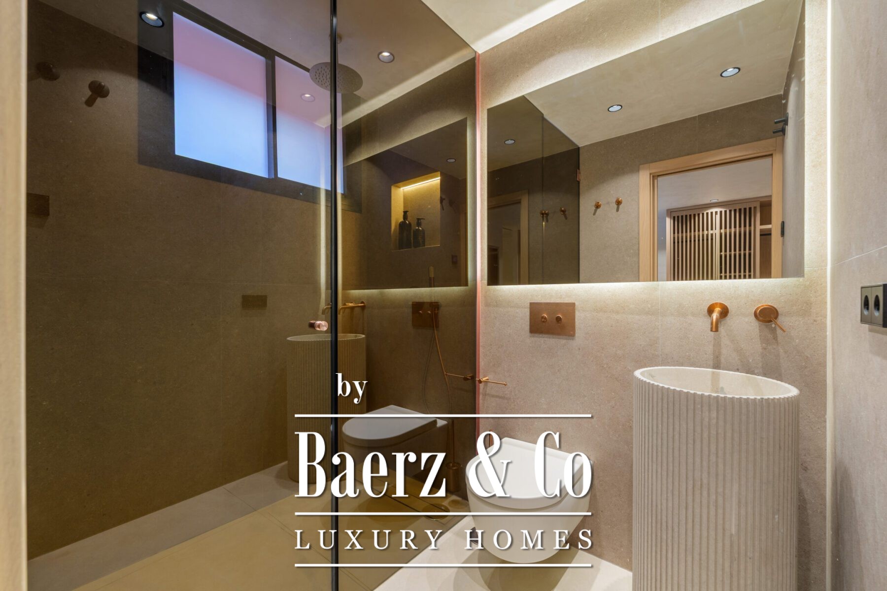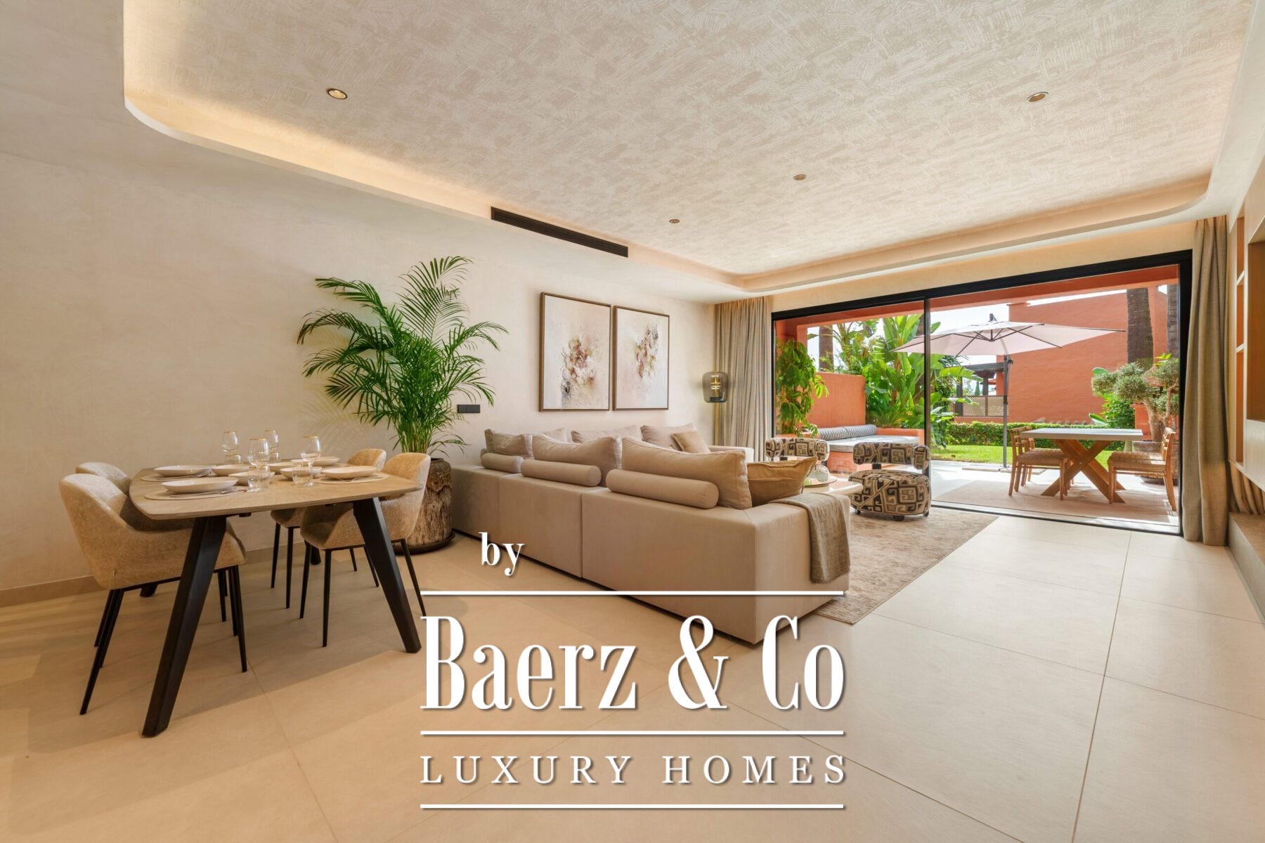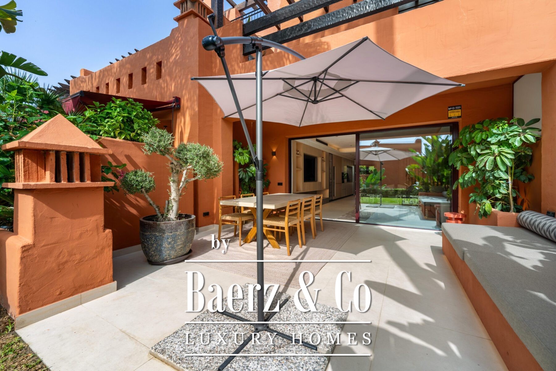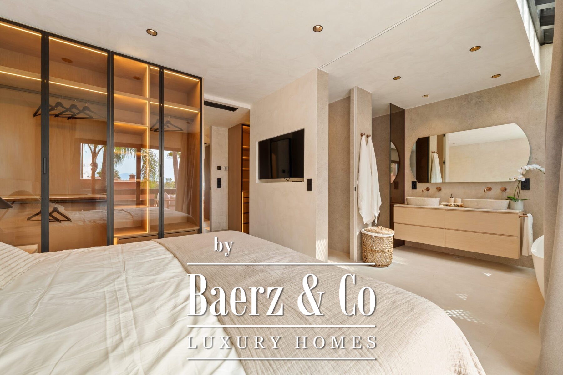 Villa Marbella Golden Mile presents a refined opportunity to secure a fully renovated four-bedroom residence in one of southern Spain’s most desirable addresses. Extending over 217m² of interior living, complemented by 134m² of terraces, this property articulates understated luxury through clean architectural lines, natural light, and contemporary finishes. The open-plan main level connects a modern kitchen equipped with high-end appliances to inviting dining and living areas, which flow seamlessly onto a covered terrace and private garden. This interplay between interior comfort and exterior space defines daily life here.