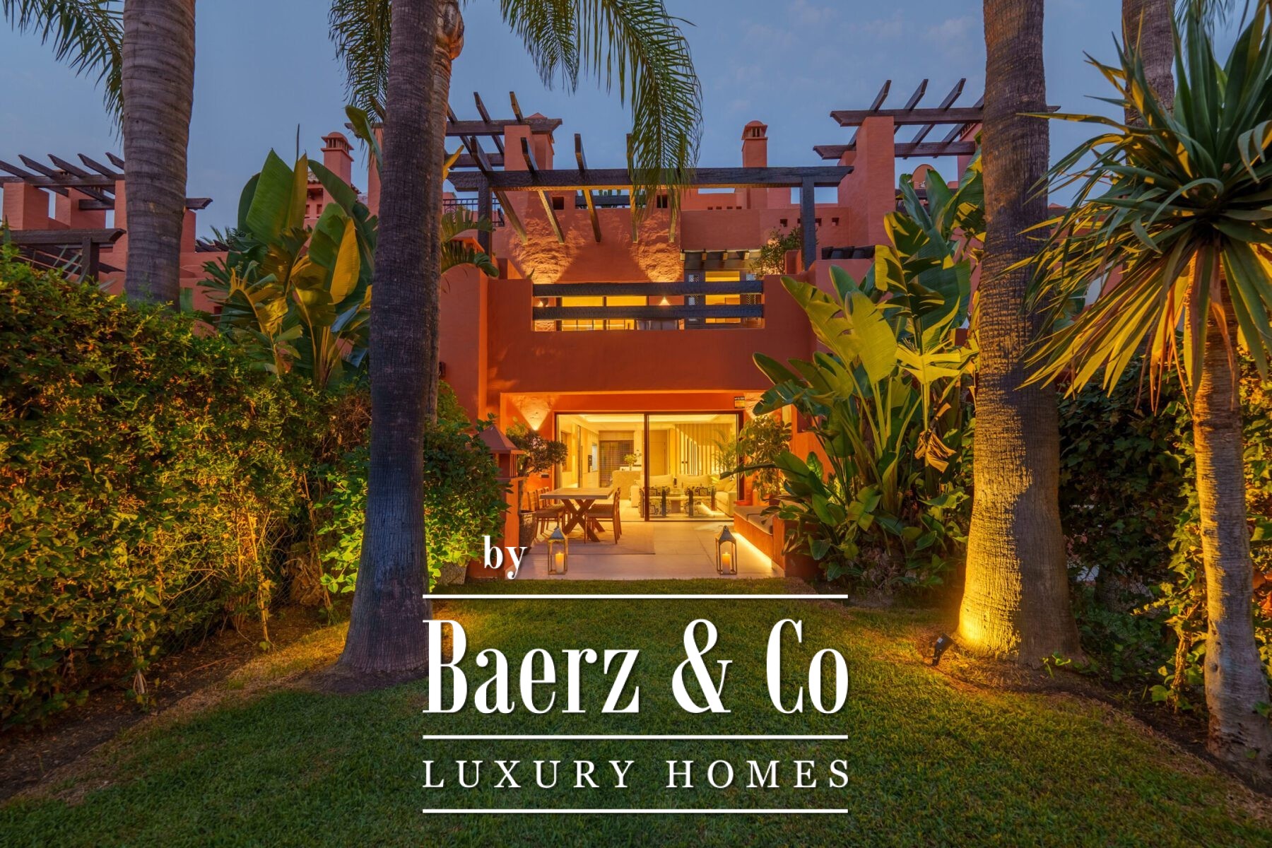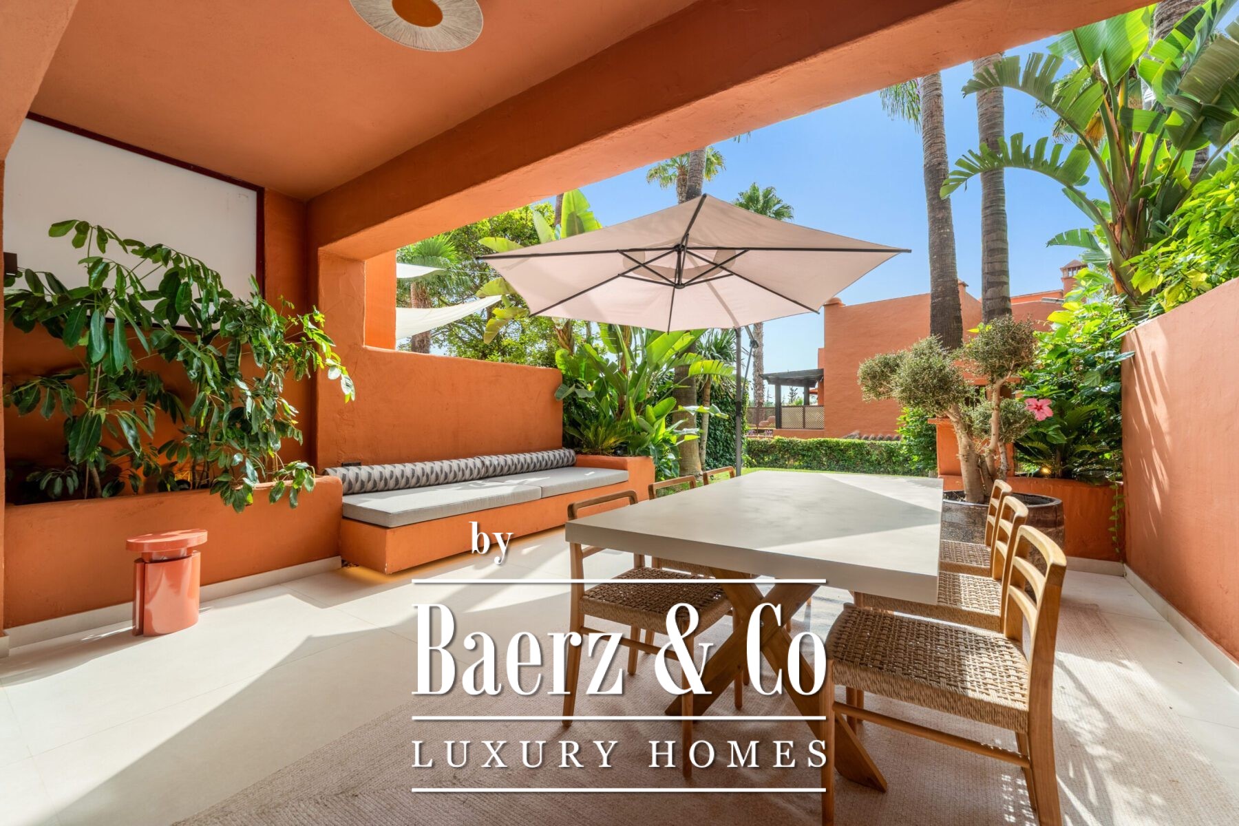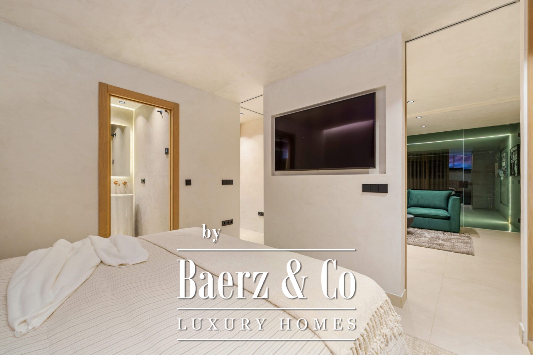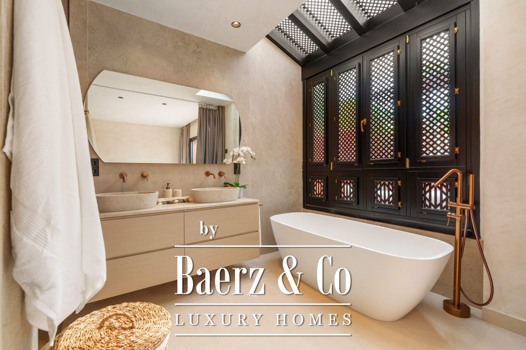 Villa Marbella Golden Mile presents a refined opportunity to secure a fully renovated four-bedroom residence in one of southern Spain’s most desirable addresses. Extending over 217m² of interior living, complemented by 134m² of terraces, this property articulates understated luxury through clean architectural lines, natural light, and contemporary finishes. The open-plan main level connects a modern kitchen equipped with high-end appliances to inviting dining and living areas, which flow seamlessly onto a covered terrace and private garden. This interplay between interior comfort and exterior space defines daily life here.