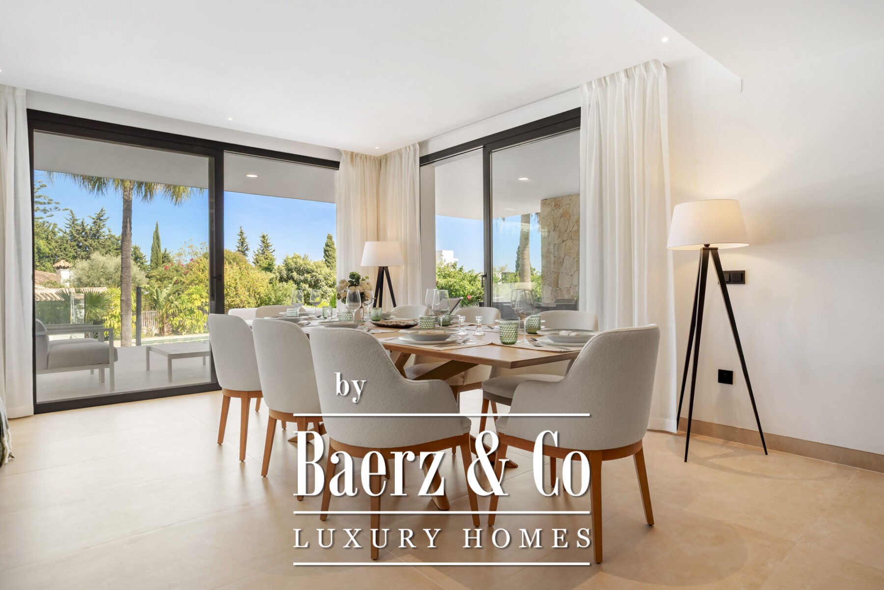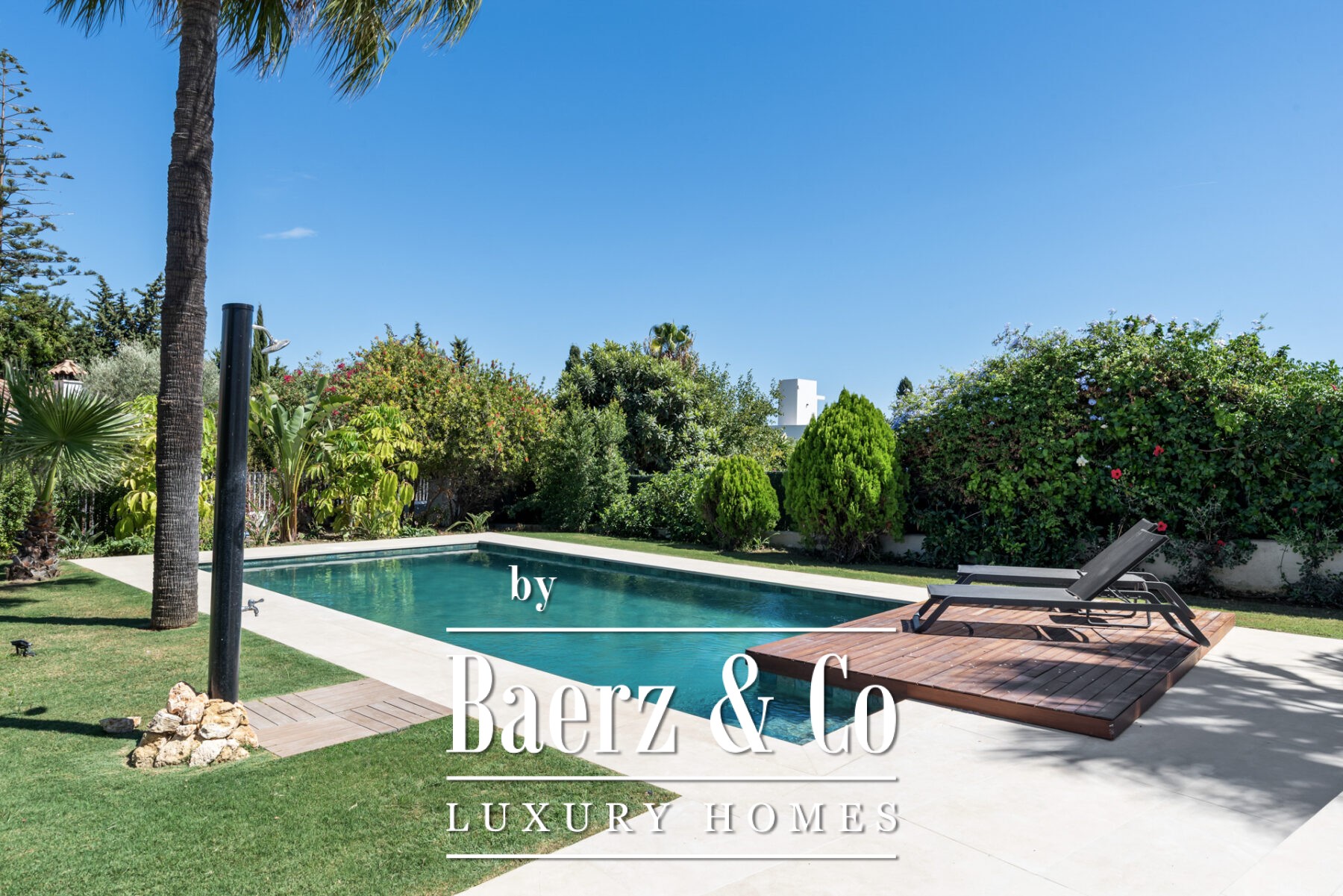 Villa Marbella with sea and mountain views welcomes you to an atmosphere of refined Mediterranean living. Ideally situated within walking distance of Guadalmina Golf Club and only minutes from the coastline, this 320 m² villa offers both seclusion and accessibility in Marbella’s coveted surroundings.