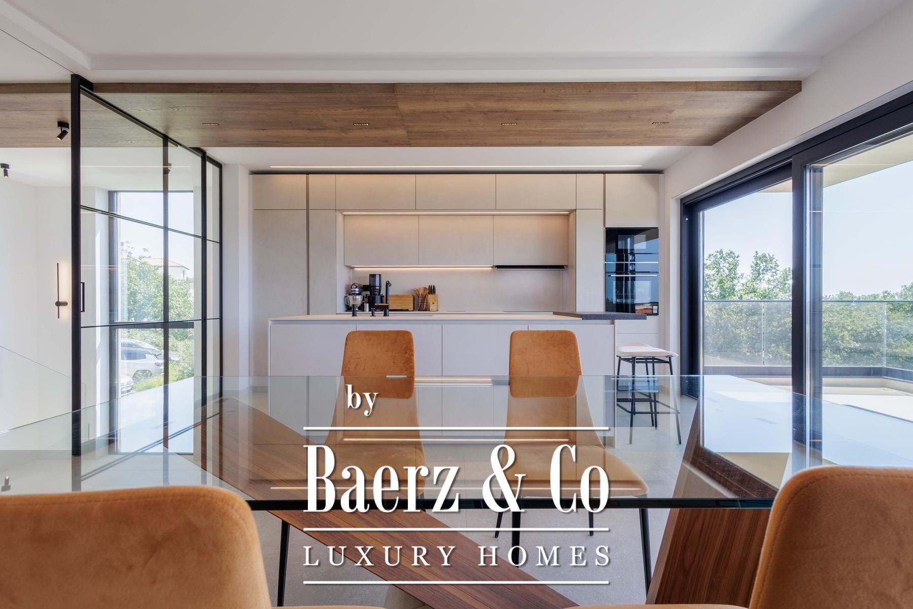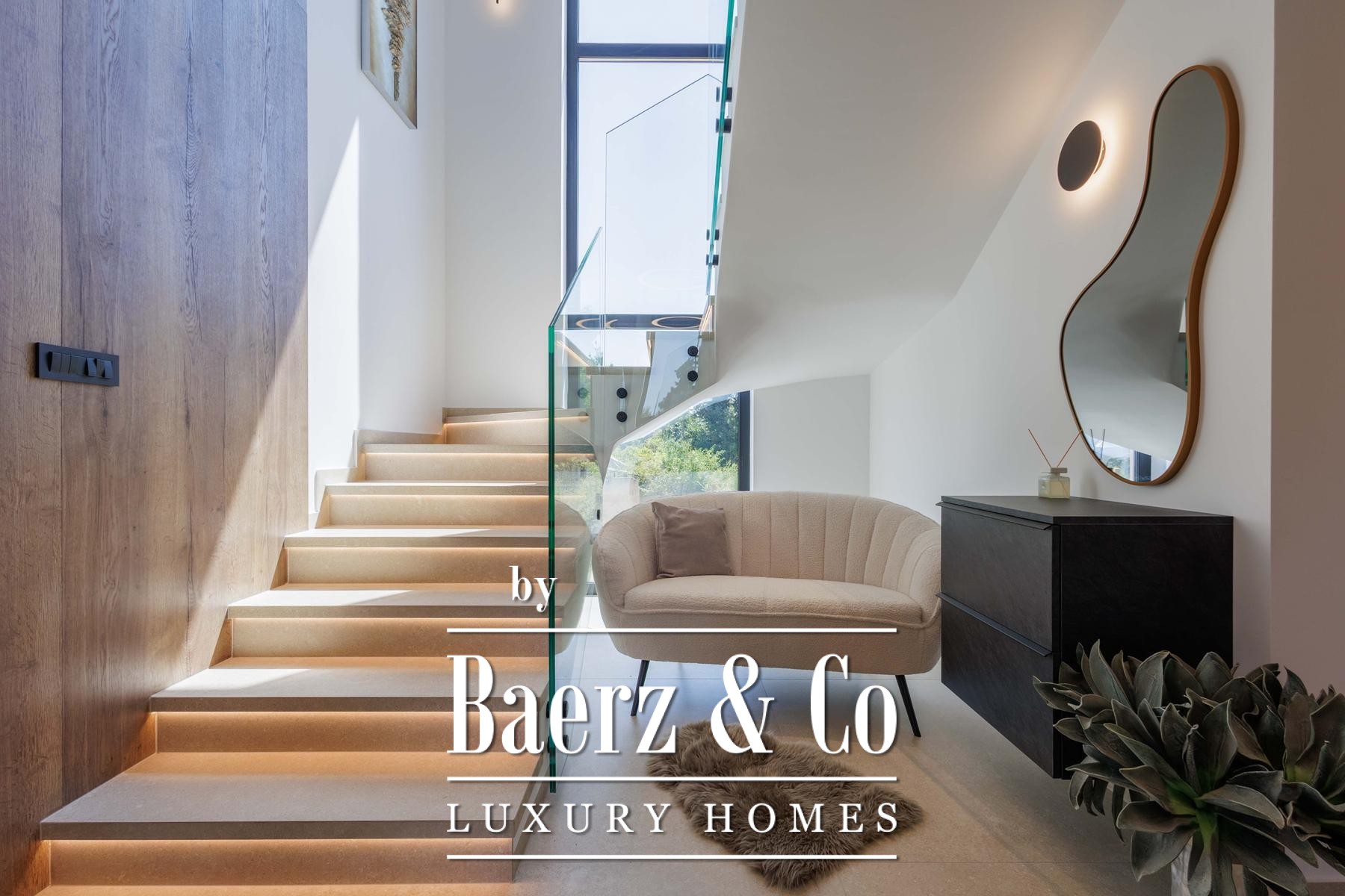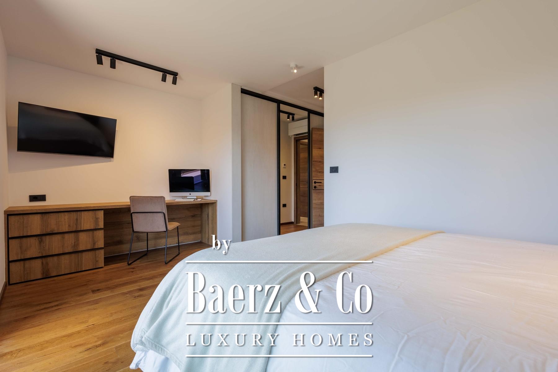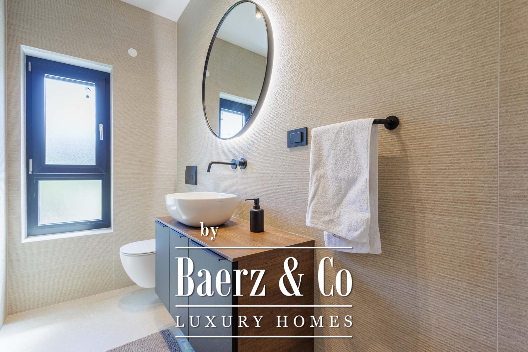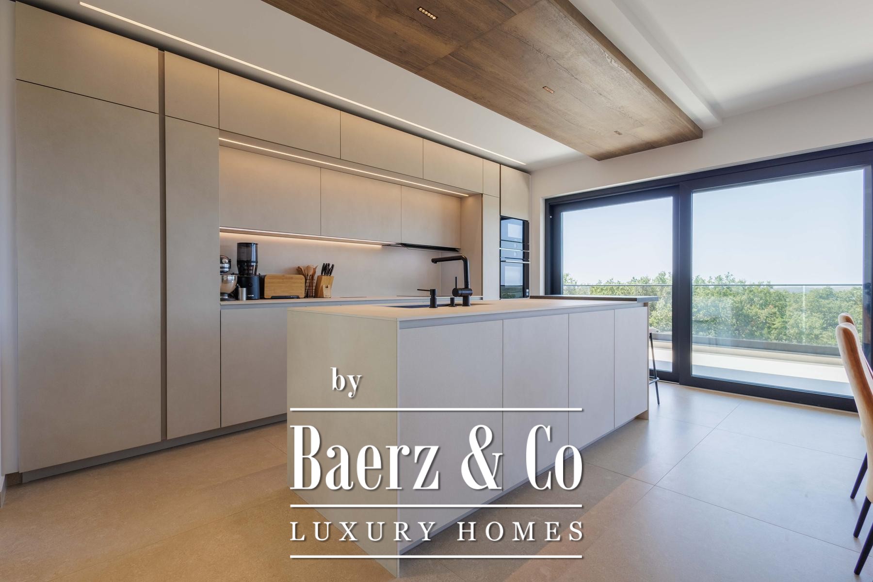 In a quiet part of Medulin, on a spacious plot of 780 m², a modern villa offers the perfect combination of luxury, comfort, and an extraordinary sea view. The house, with a total living area of 311 m², is arranged over several floors. Upon arrival, you will be greeted by a large private parking lot with direct access to the ground floor. On this level, there are two elegant bedrooms, each with its bathroom and terrace, and an additional toilet. An internal staircase leads to the first floor, where there is a spacious bedroom with its bathroom, a practical storage room, and an open living room connected to the kitchen and dining room in an open space concept. The living area leads to a large terrace with a spectacular view of the sea and the Medulin Bay, and a sliding glass wall subtly separates the living area from the relaxation area.Due to the cascading configuration of the terrain, an external staircase leads to the lower floor, where there is a separate apartment with a living room, kitchen, dining room, bathroom, and two unfinished rooms that can be adapted