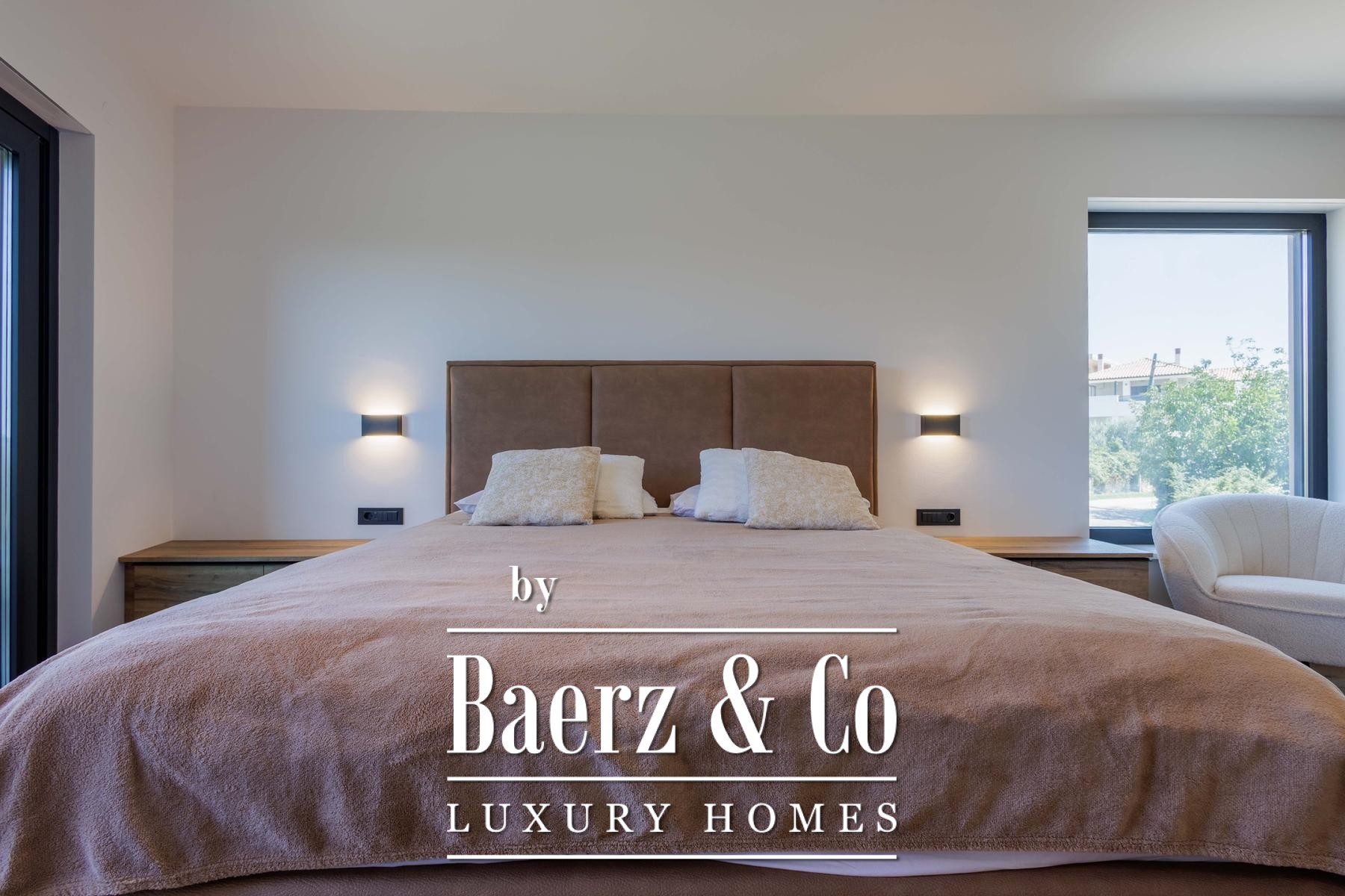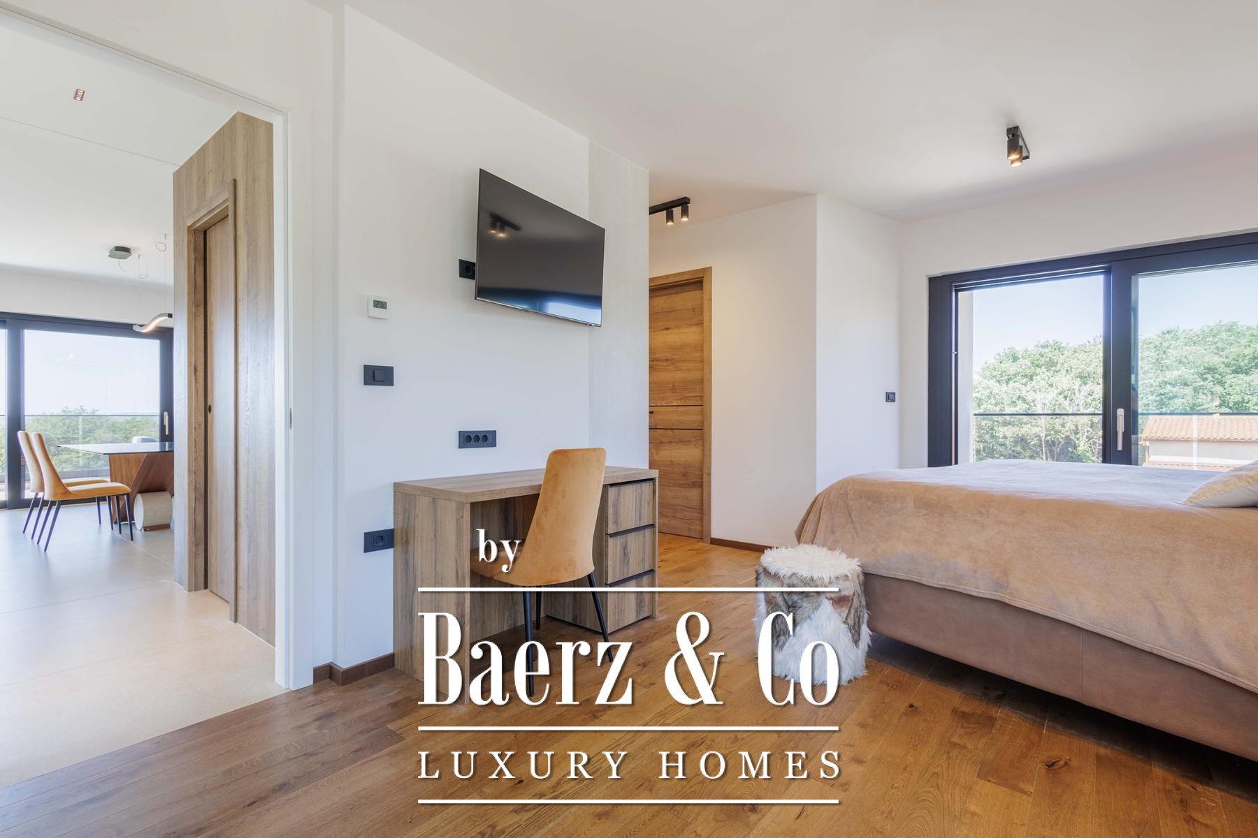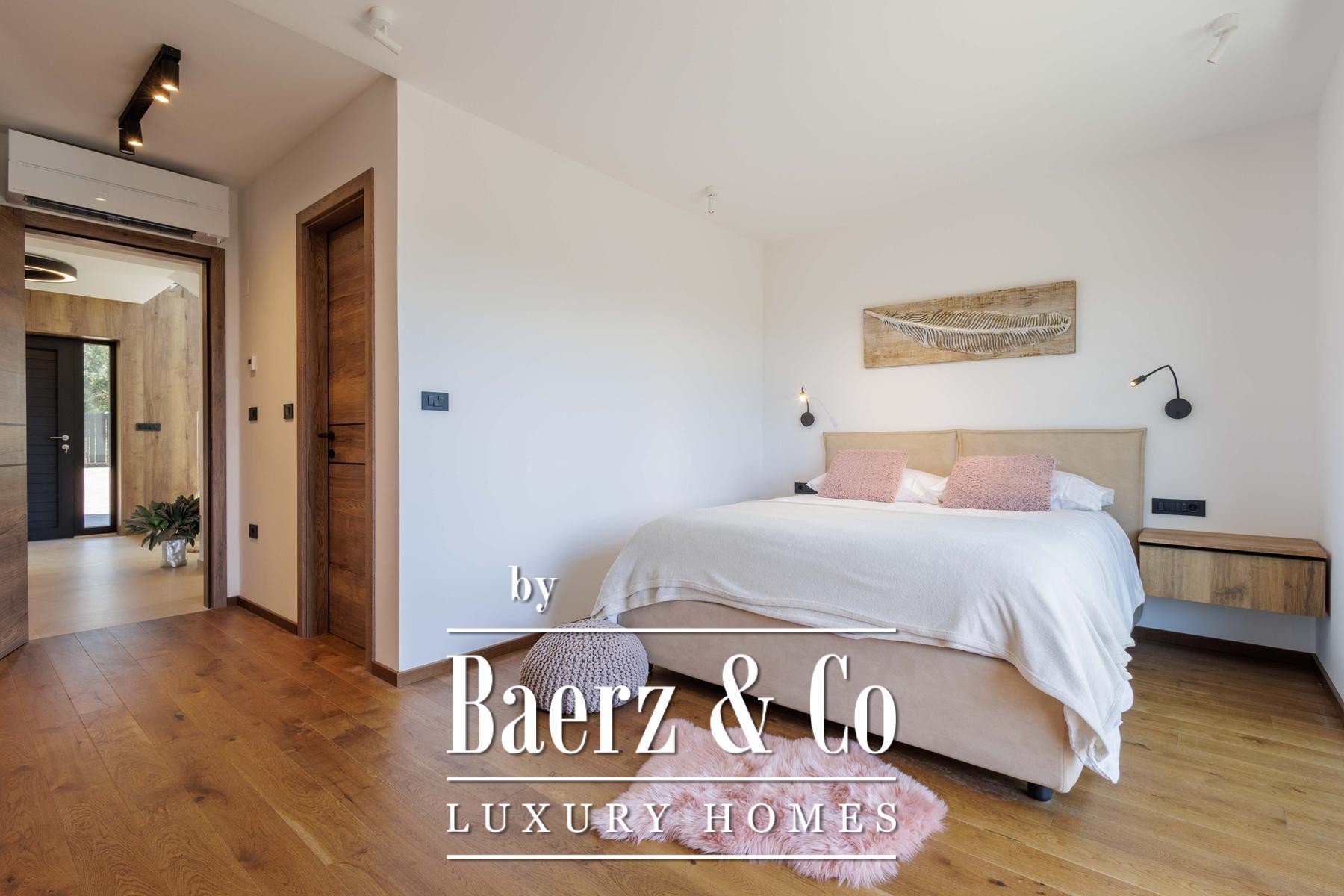 as bedrooms or as desired. On the same level, there is a sundeck and a 38 m2 swimming pool with electrolysis, hydromassage in the shallows, and a spacious area for enjoying the sun. The villa also has an additional room of 50 m2 with all the necessary installations, ideal for a tavern or wellness area.Kroz cijelu kuću provedeno je podno grijanje na dizalicu topline, ugrađena je visokokvalitetna PVC troslojna stolarija s komarnicima i električnim roletama, sedam Mitsubishi klima uređaja, video nadzor i alarmni sustav. Objekt ima vlastitu bušotinu vode čije se instalacije koriste za navodnjavanje i bazen, uz automatski sustav navodnjavanja, biološku septičku jamu i pripremu za priključak na kanalizaciju. Fasada je izvedena s 12 cm demit izolacije marke Sto granulacije 0,5, osiguravajući vrhunsku energetsku učinkovitost.Ova vila predstavlja jedinstvenu priliku za one koji traže spoj luksuznog smještaja, funkcionalnosti i izvanredne lokacije s pogledom koji oduzima dah.Za više informacija ili dogovor za razgledavanje, slobodno nas kontaktirajte.