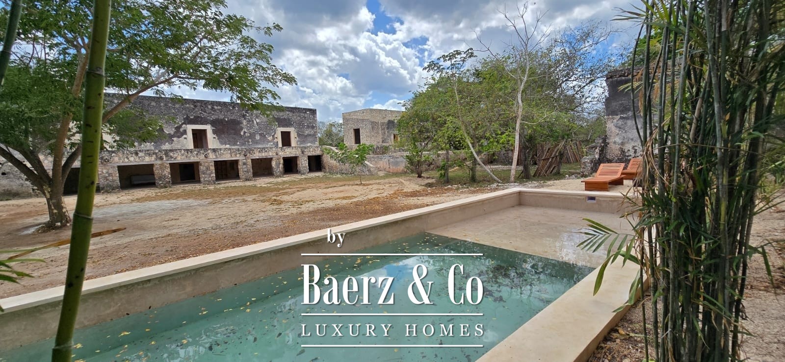 The estate is surrounded by jungle, with cenote views enhancing the experience of place. Colonial corridors, original stone walls, an orchard under restoration, and a swimming pool with lounge areas create layered moments throughout the grounds. The cenote itself reveals stone waterfalls and crystal-clear waters accessed by a hand-crafted zapote wood staircase, providing an intimate connection to the land’s legacy.