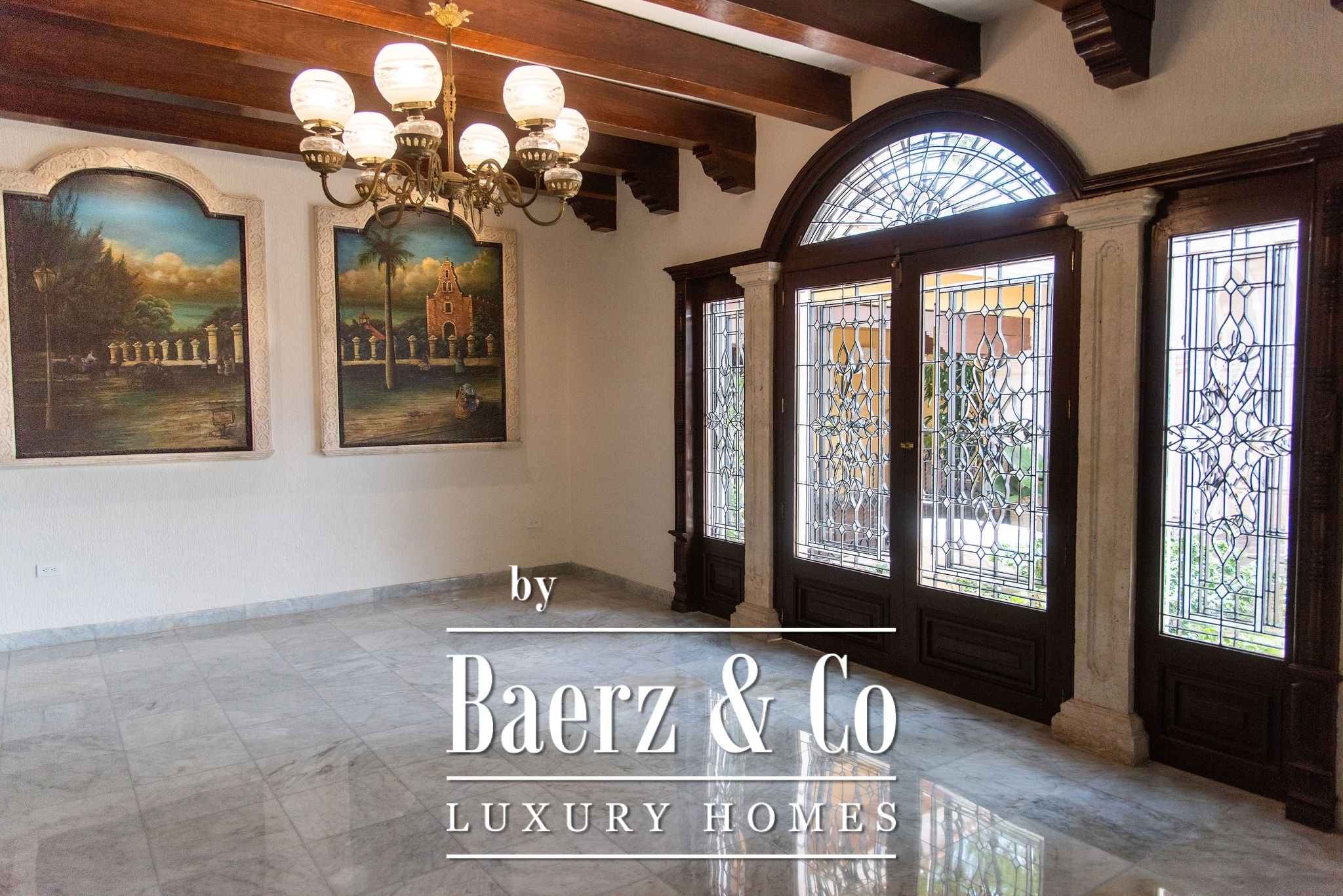 Somewhat discrete in one of the most traditional and sought-after areas known as Itzimna in the city of Merida, you will discover “Los Aluxes” Manor house. With its 4056 square meters of land and 1133 square meters of construction, this magical property has it all. Great spaces built with all the luxury for you to enjoy all year round. The house has in total 5 bedrooms with 5 bathrooms, all with unique design. At the entrance you will find a great façade that only invites to imagine the interior of the property. Spectacular spaces of living anteroom and dining room will greet you with the sensation of being in your very own palace. Floors made out of carrara marble, custom made wrought iron make a one of a kind piece with import stained glass that form part of all the main windows. All carpentry made out of fine hard wood in its beams. Hand cut stone columns with great design are laid out through all the residence, combined with exquisite rustic volcanic stone floors. It´s domes that were custom made and designed exclusively for the property make the interior even more beautiful. In the exterior you will find fascinating gardens and lush and exotic vegetation that surround this exclusive mansion, with an enormous pool at the end of the property that has it´s own terrace and bathrooms. To the side your own rustic chapel. “Los Aluxes” Manor makes for those who come near forget where they were headed to and feel a pleasant sensation of harmony and peace.